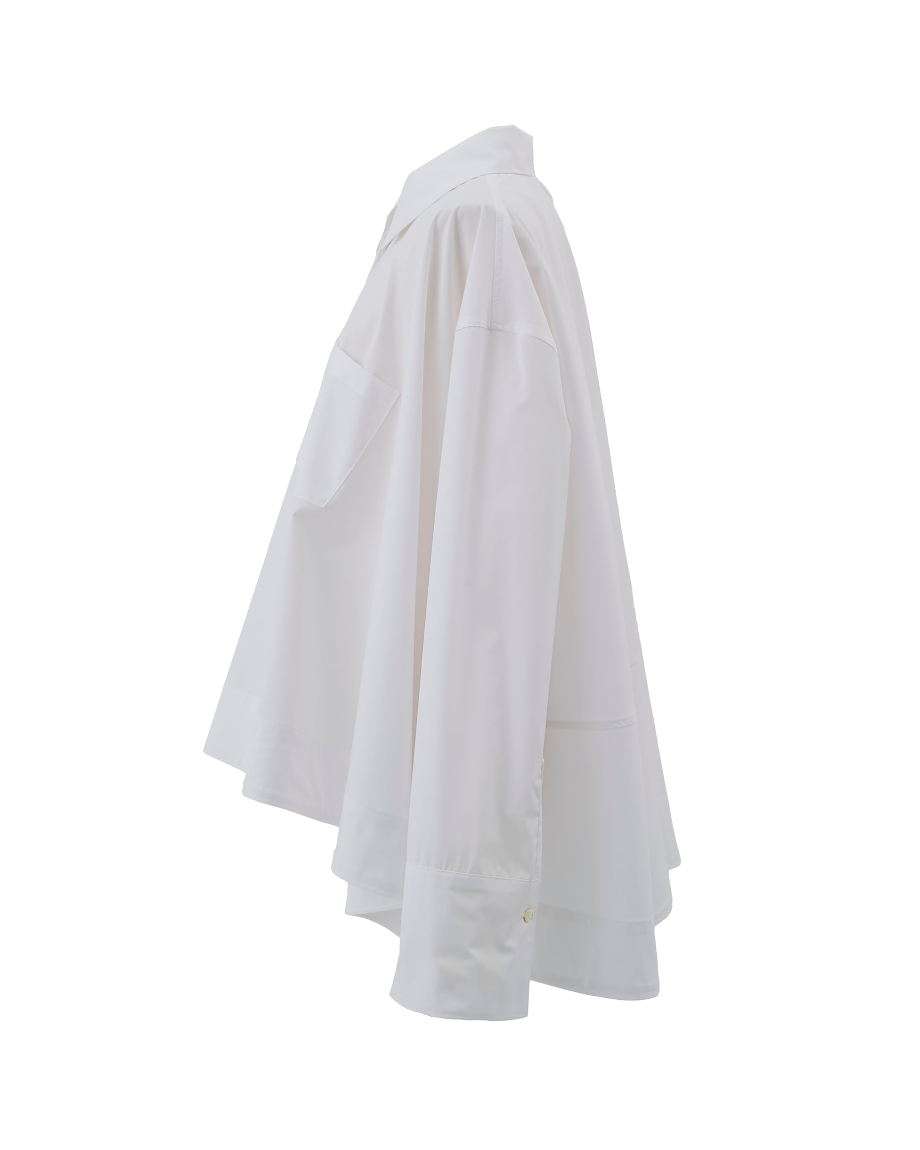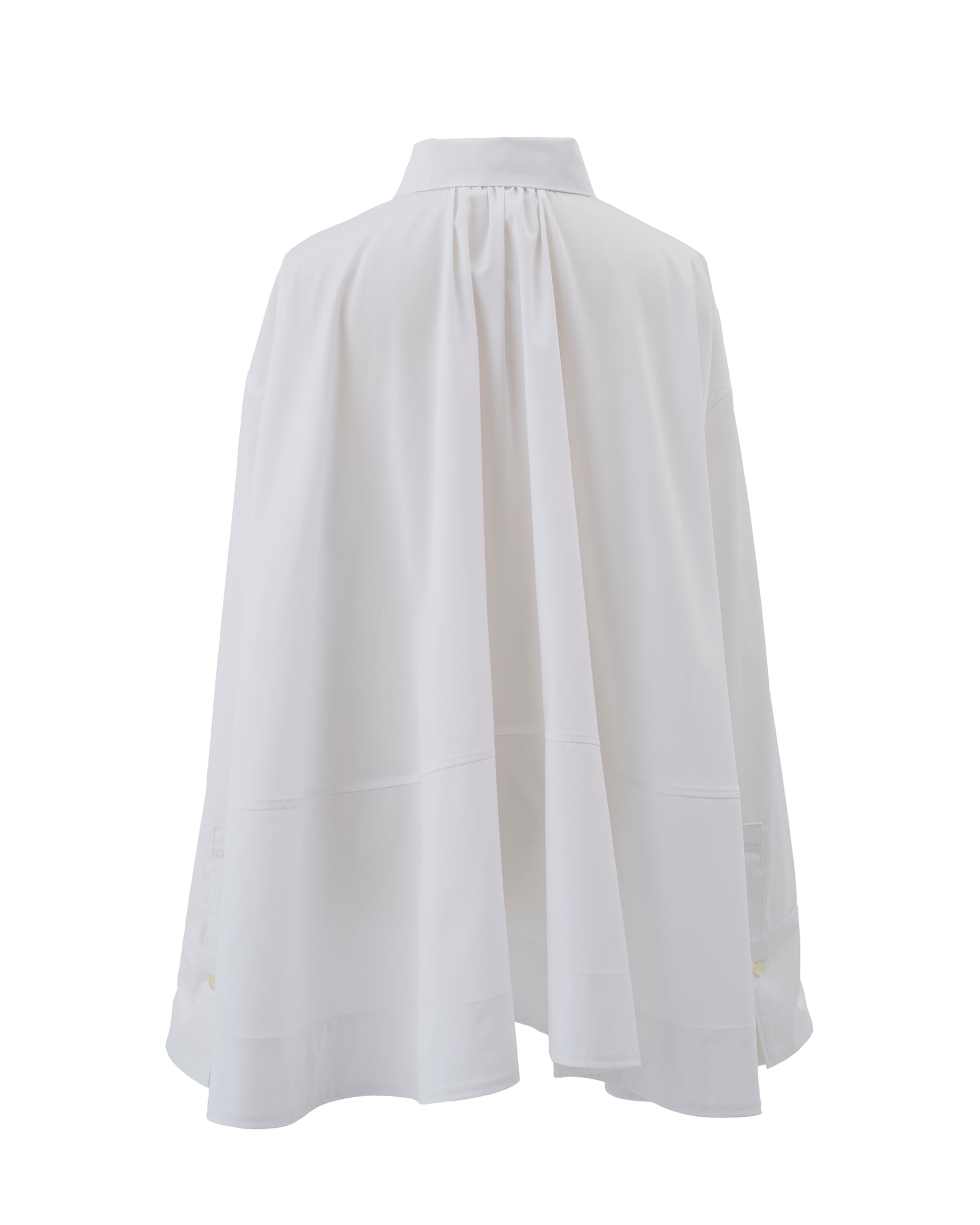 裾のフレアシルエット&袖口の広がりが絶妙なアクセントになり、女性らしさを引き立てます。
