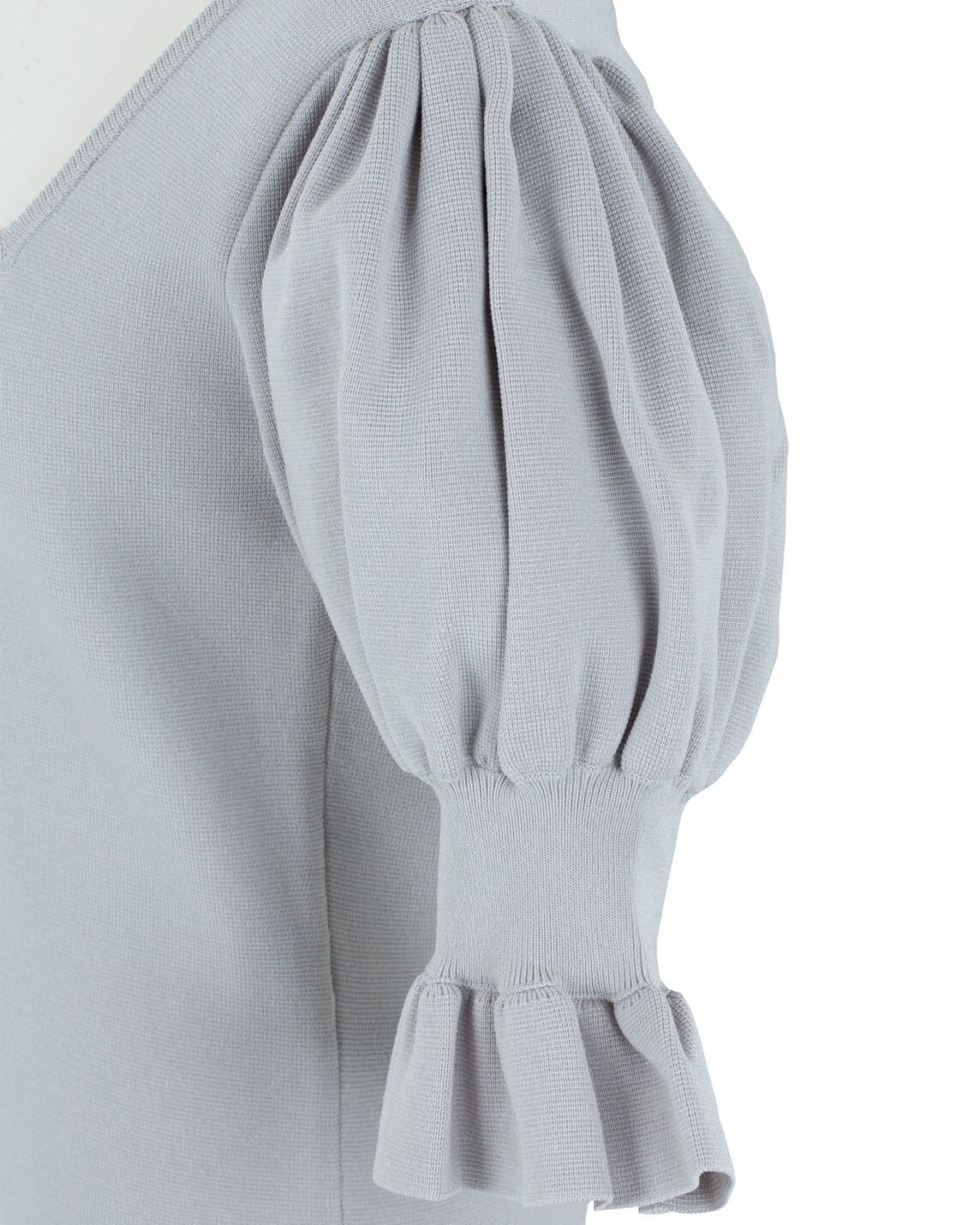 ふんわりとしたパフスリーブがさりげない可愛さを添えつつ、大人っぽい雰囲気を引き立てる絶妙なバランス。