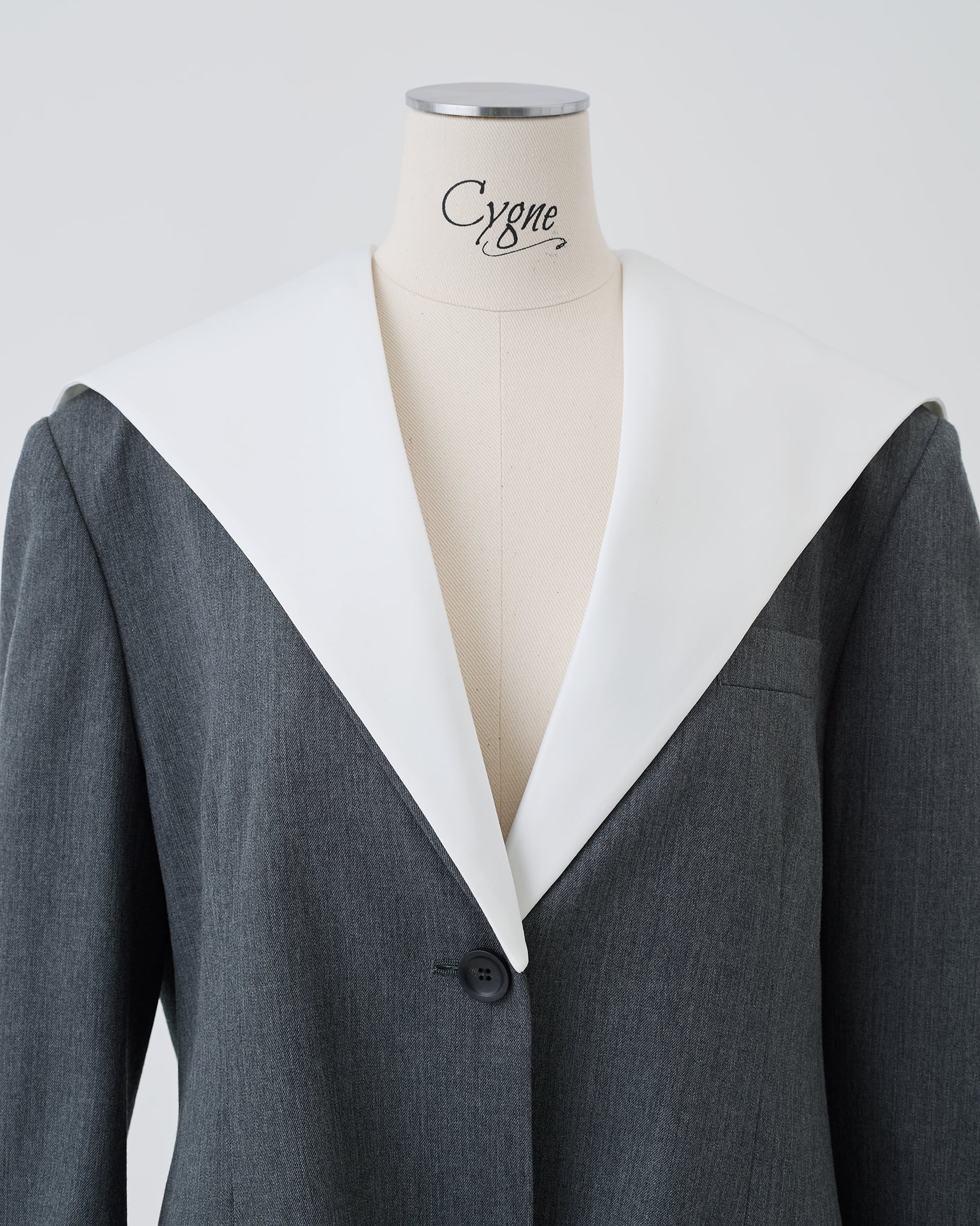 存在感のあるオーバーサイズシルエットに、セーラー襟をあしらったモダンな一着。