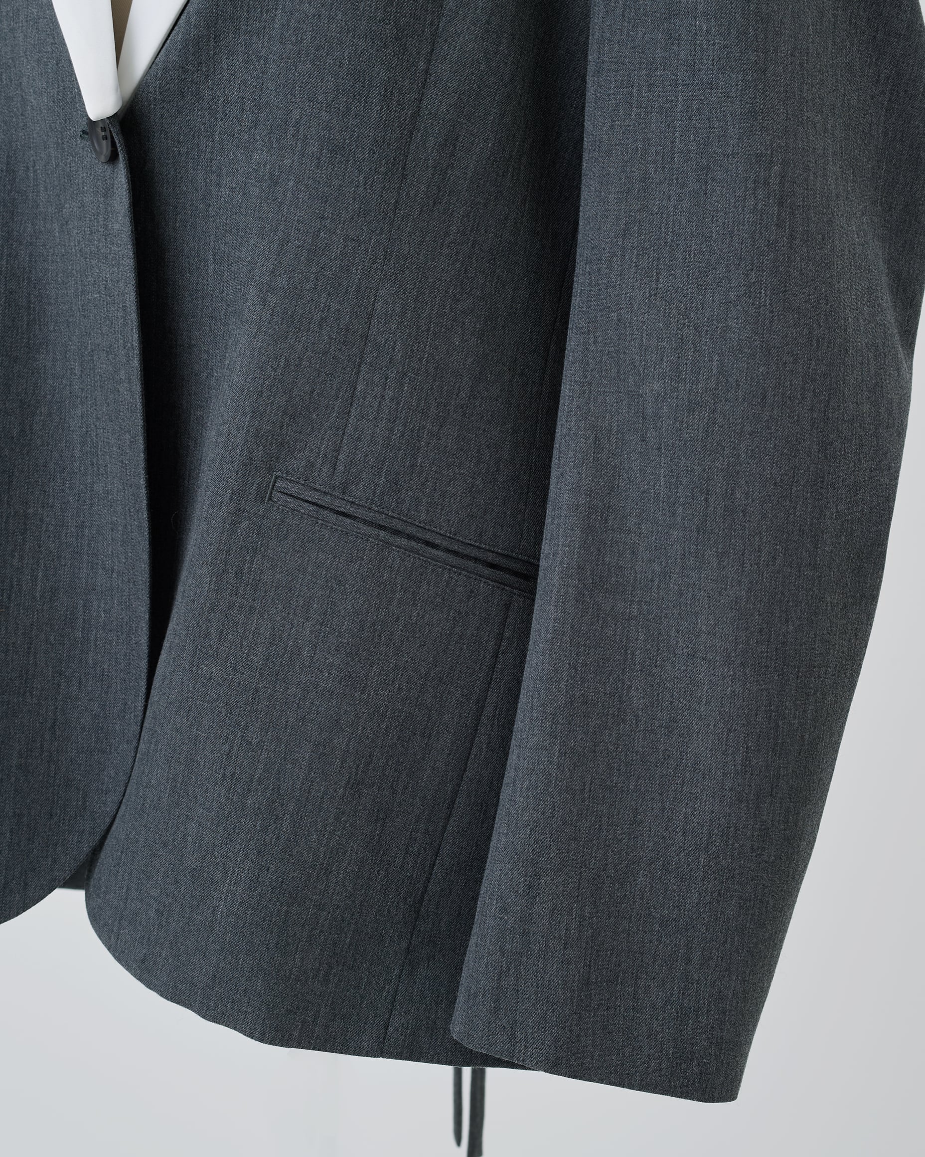 襟を付ければモードな印象に、外せばシンプルで洗練されたジャケットとしてもお召しいただける2WAY仕様です。
