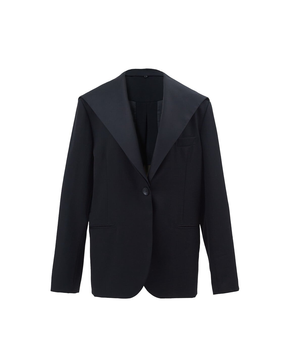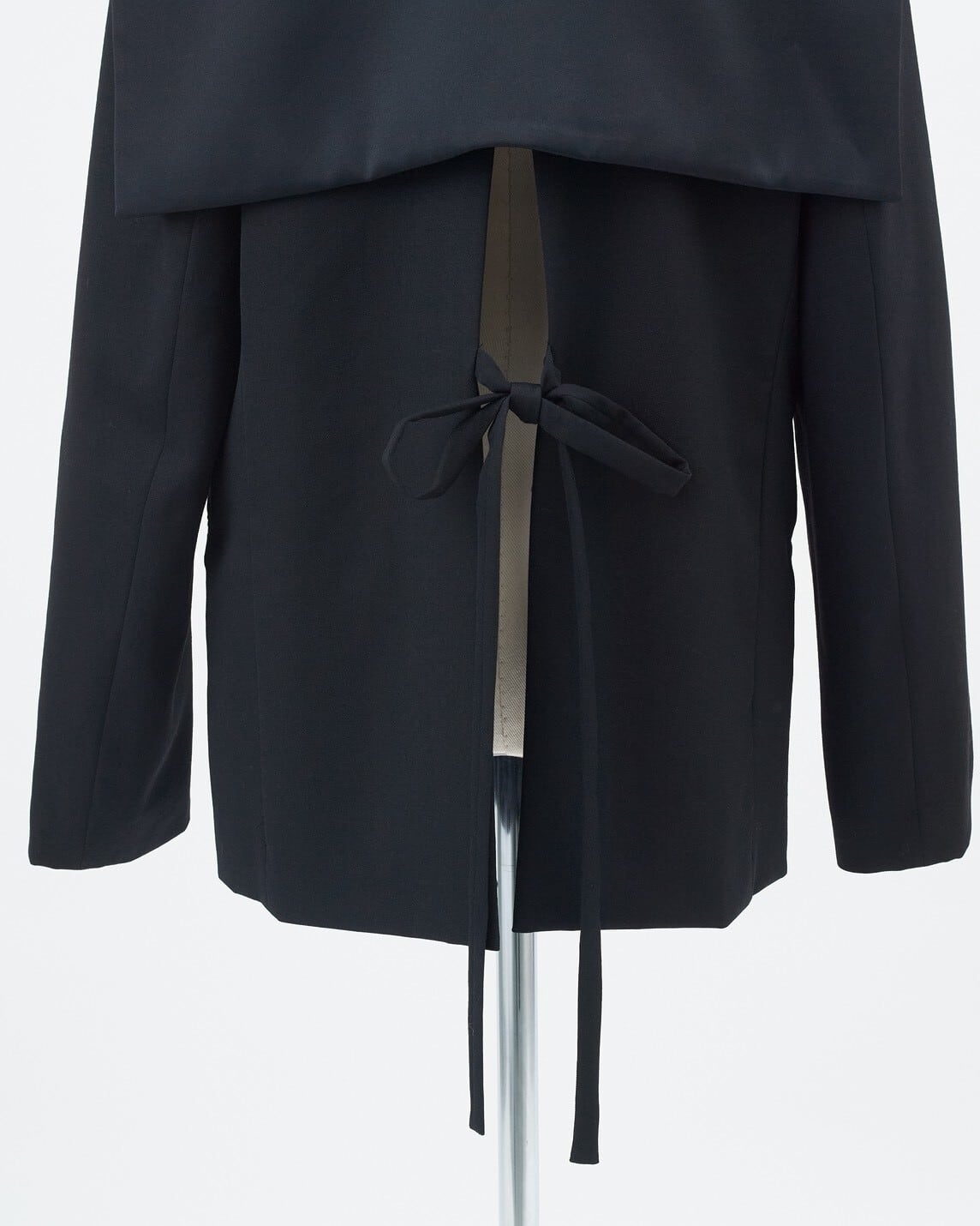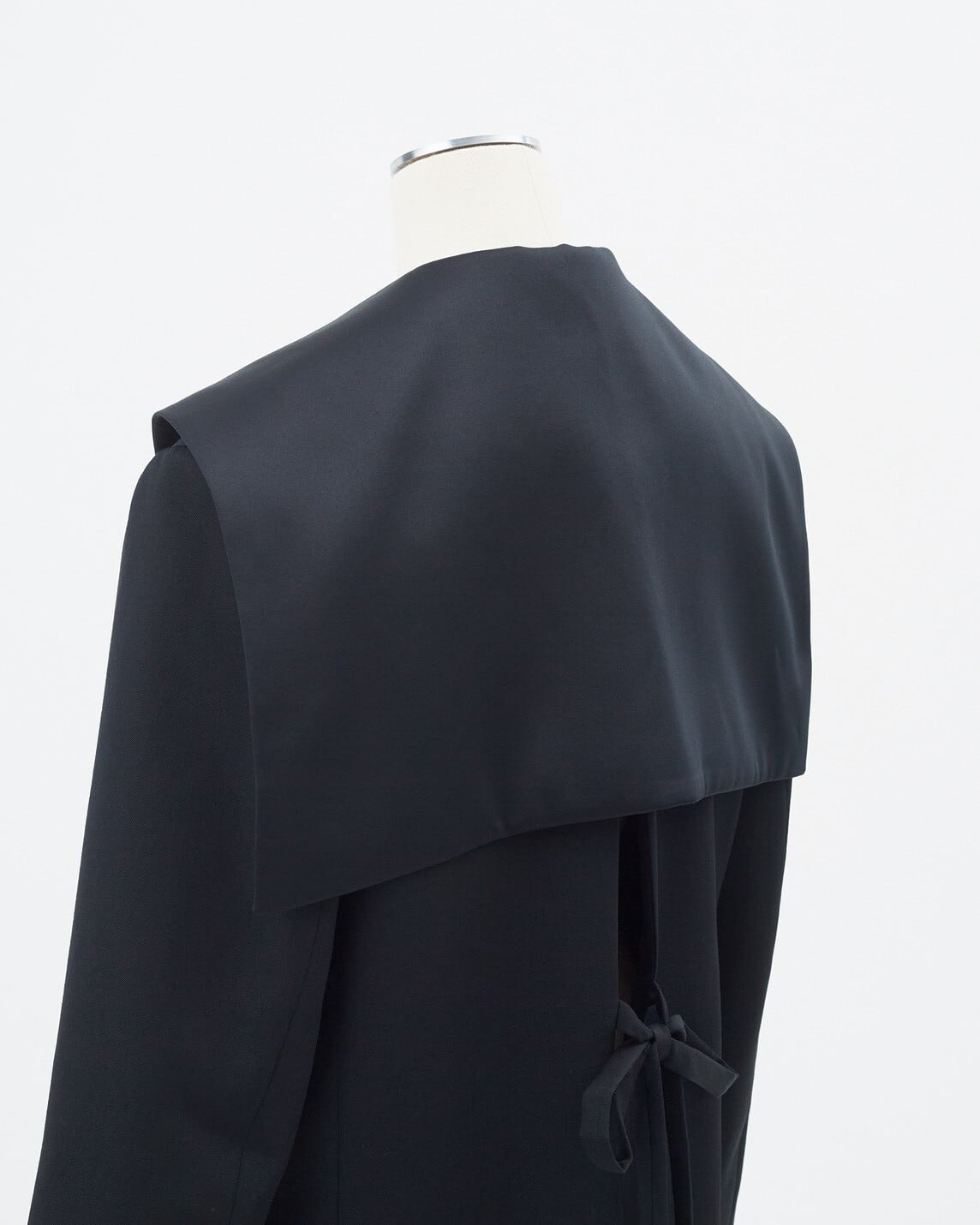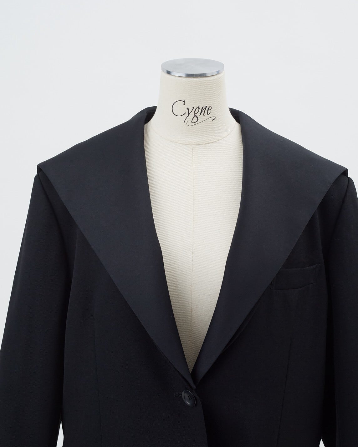 襟を付ければモードな印象に、外せばシンプルで洗練されたジャケットとしてもお召しいただける2WAY仕様です。