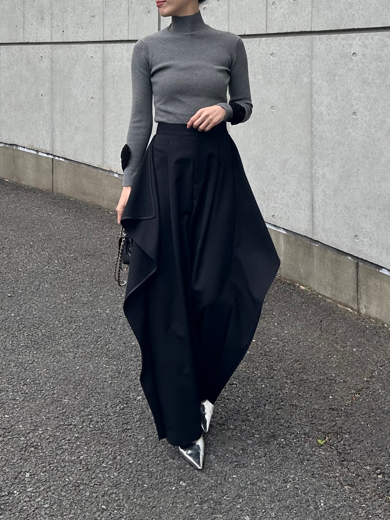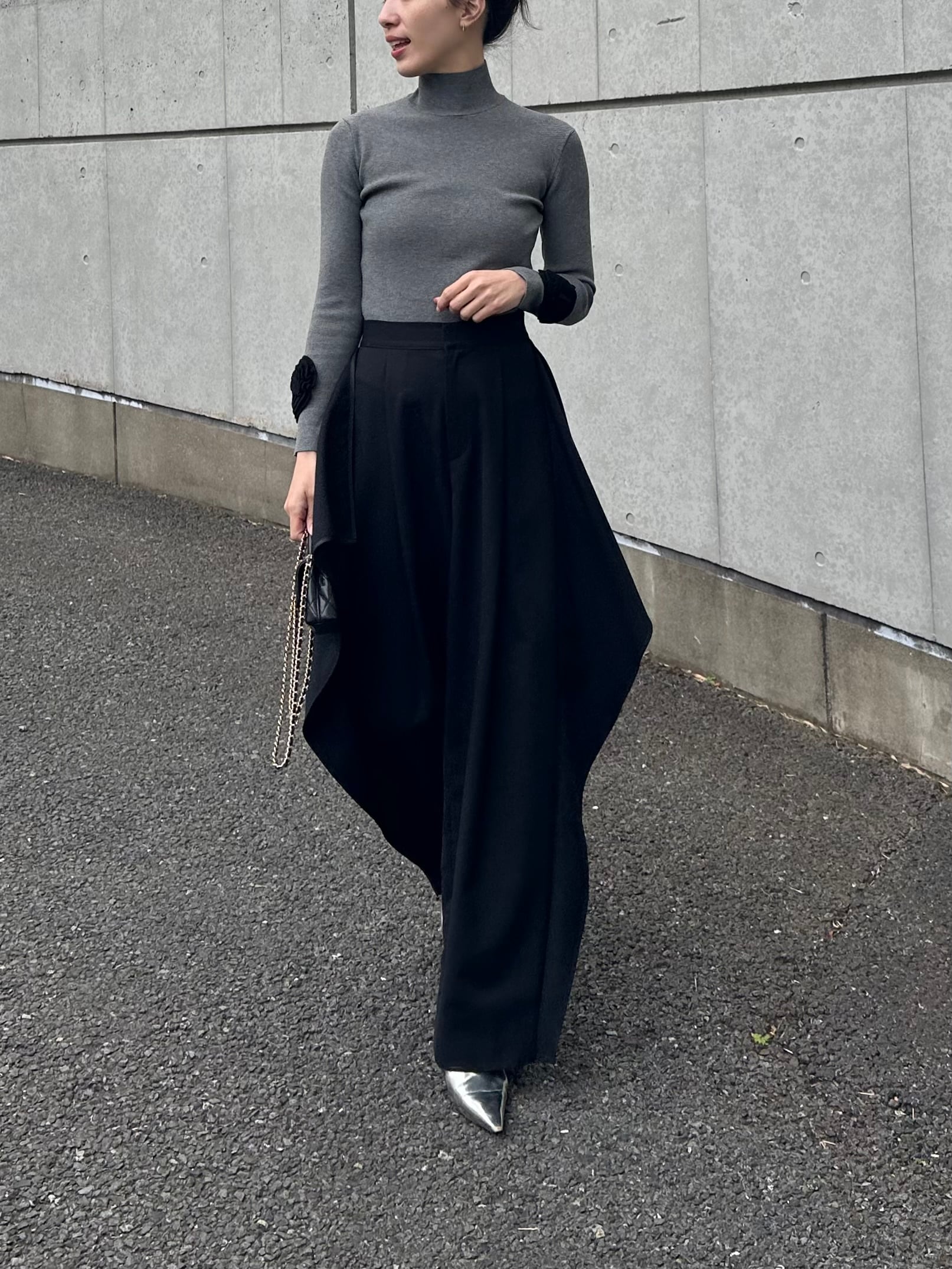 エレガントさの中にモードなムードも感じさせる、まさに大人のためのパンツです。