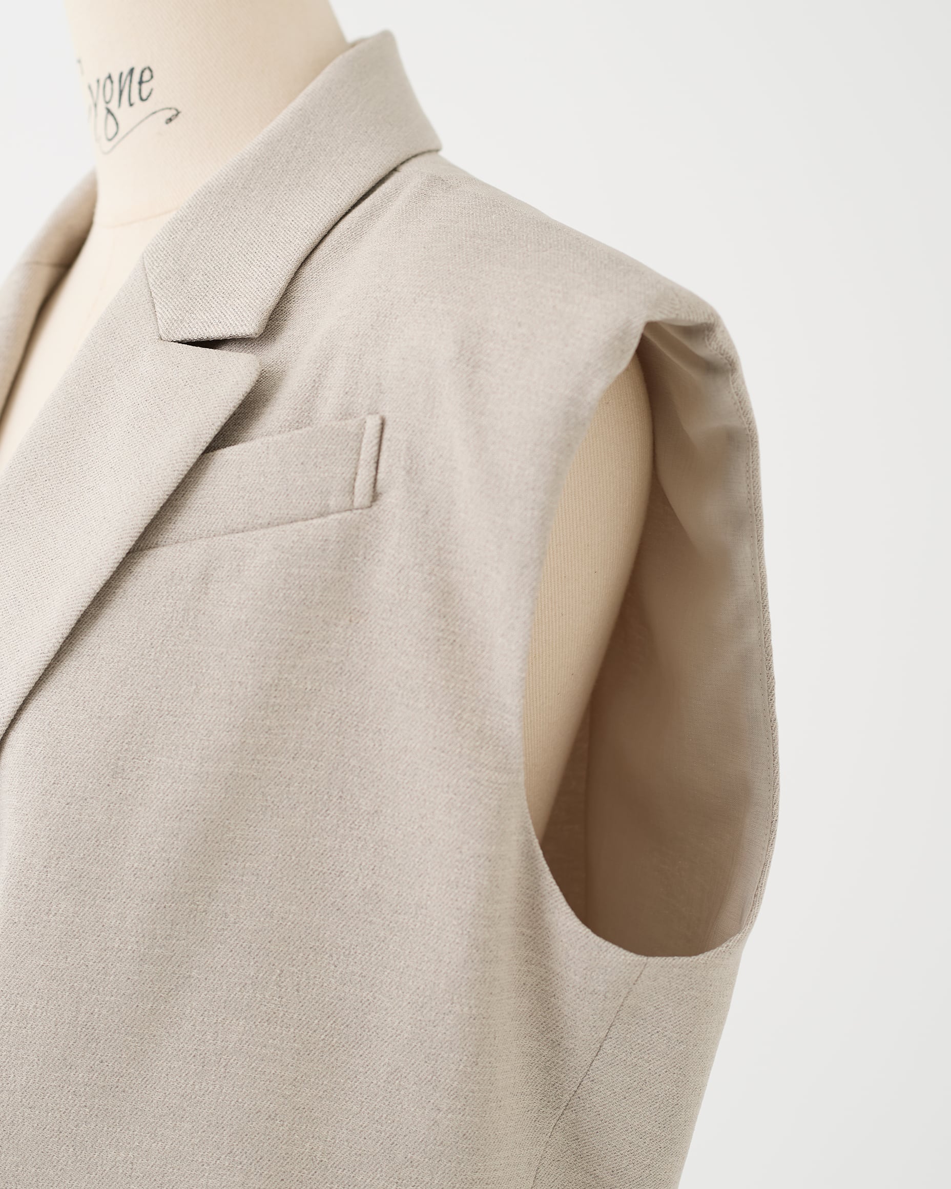 染め分けで麻の色目を表現した麻調合繊。ツイル組織にすることで、カジュアル感も持たせつつ、女性らしい落ち感もプラスしました。