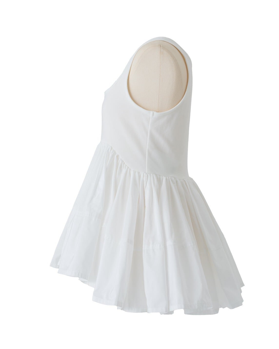 身頃部分は伸縮性のあるカットソー素材を使用しており、ストレスフリーな着心地も魅力。甘さのあるディテールながらも、モダンなデザインに仕上げているため、スタイリング次第でデイリーからオケージョンまで幅広く活躍します。