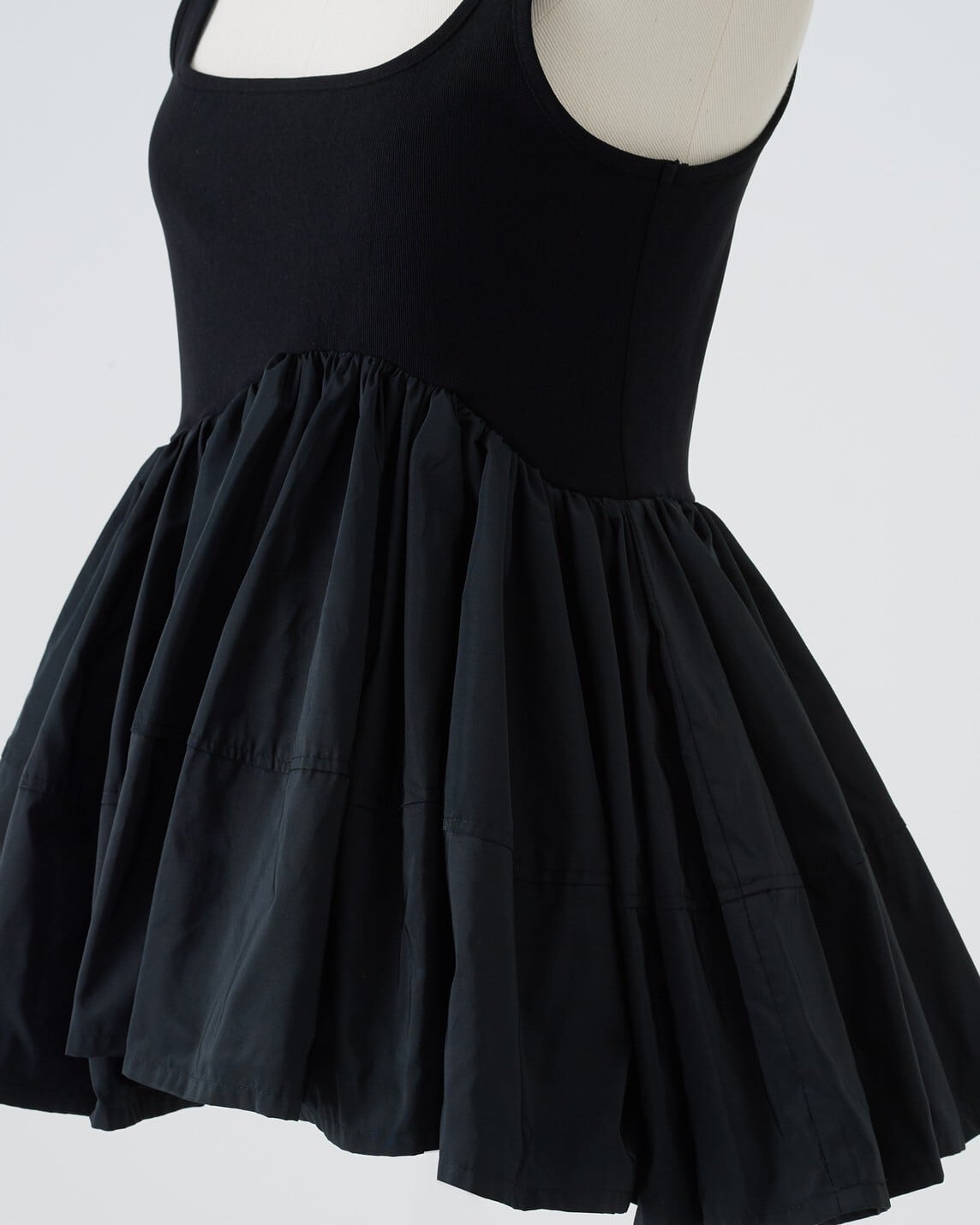 クラシカルなスクエアネックに、ふんわりと広がるペプラムシルエットが印象的な一枚。ウエストラインを自然に引き締めつつ、女性らしい柔らかな立体感を演出します。