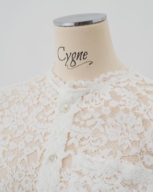 繊細なレースの透け感が美しく映える上品な佇まいのレースブラウス。