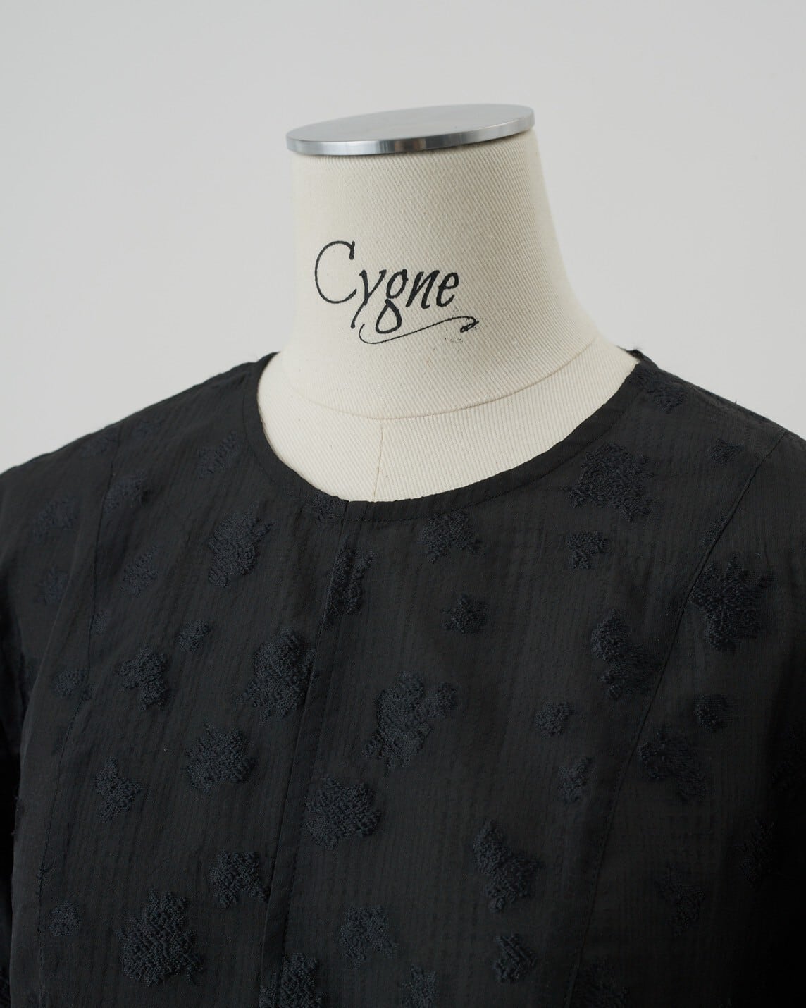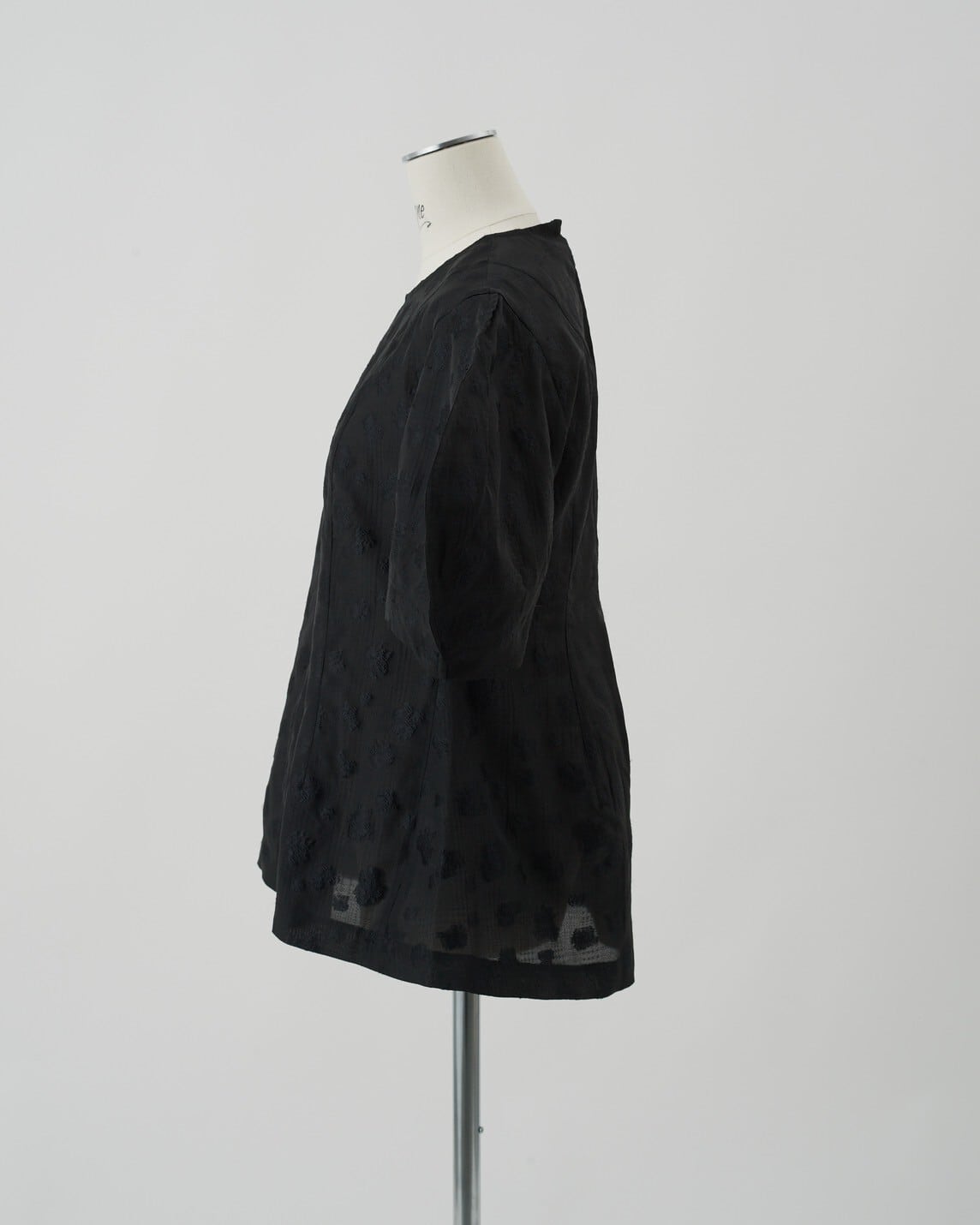 小花モチーフのジャガードがシンプルながらも奥行きのある表情を生み、着るだけでスタイリングを洗練された印象へと導きます。