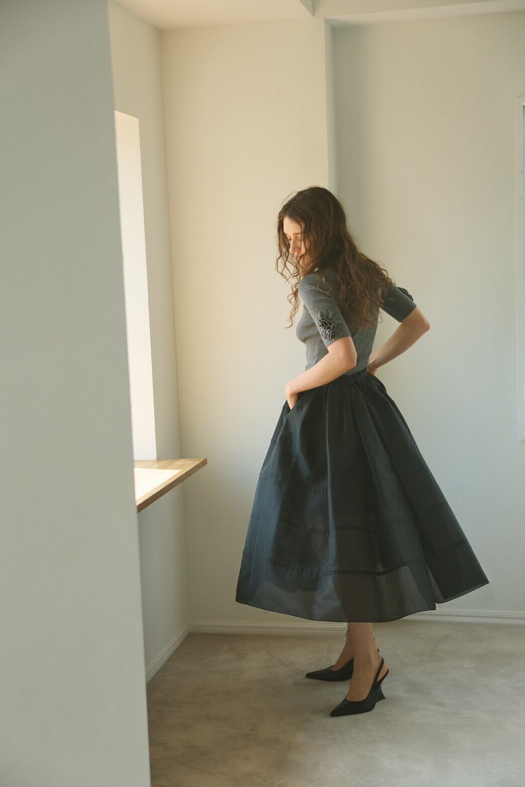 日常から特別なシーンまで幅広く寄り添う、エレガントな一枚です。