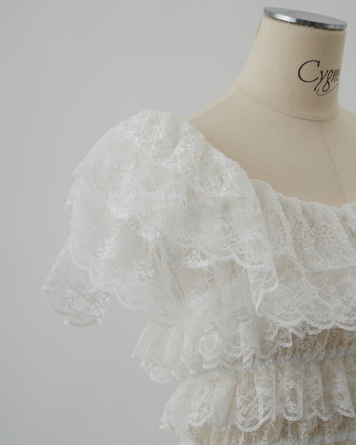 贅沢にあしらったレースが華やかな存在感を放ち、ふんわりとしたボリューム感がフェミニンな印象を添えます。