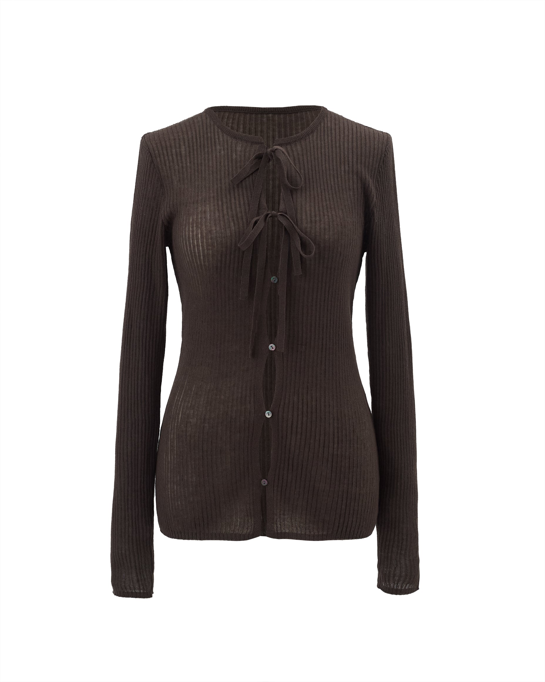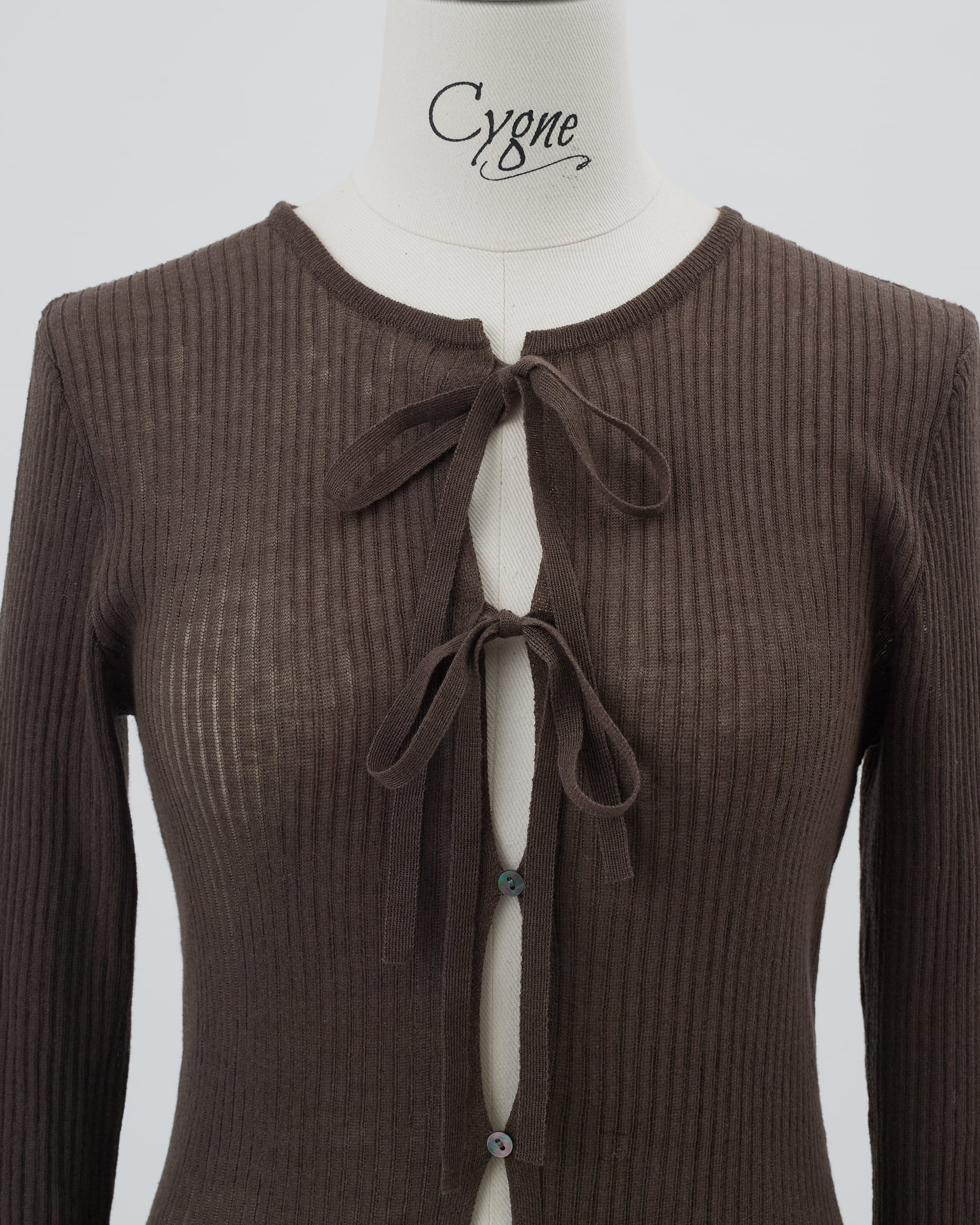 前開きリボンニット Moran ブラウン
