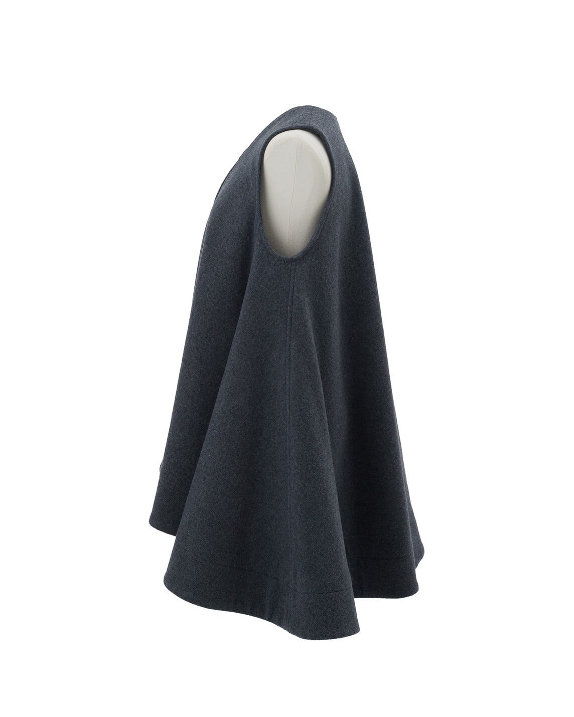 Aラインの広がりが上品で、ボリューム感のあるメルトンのフレアベスト。