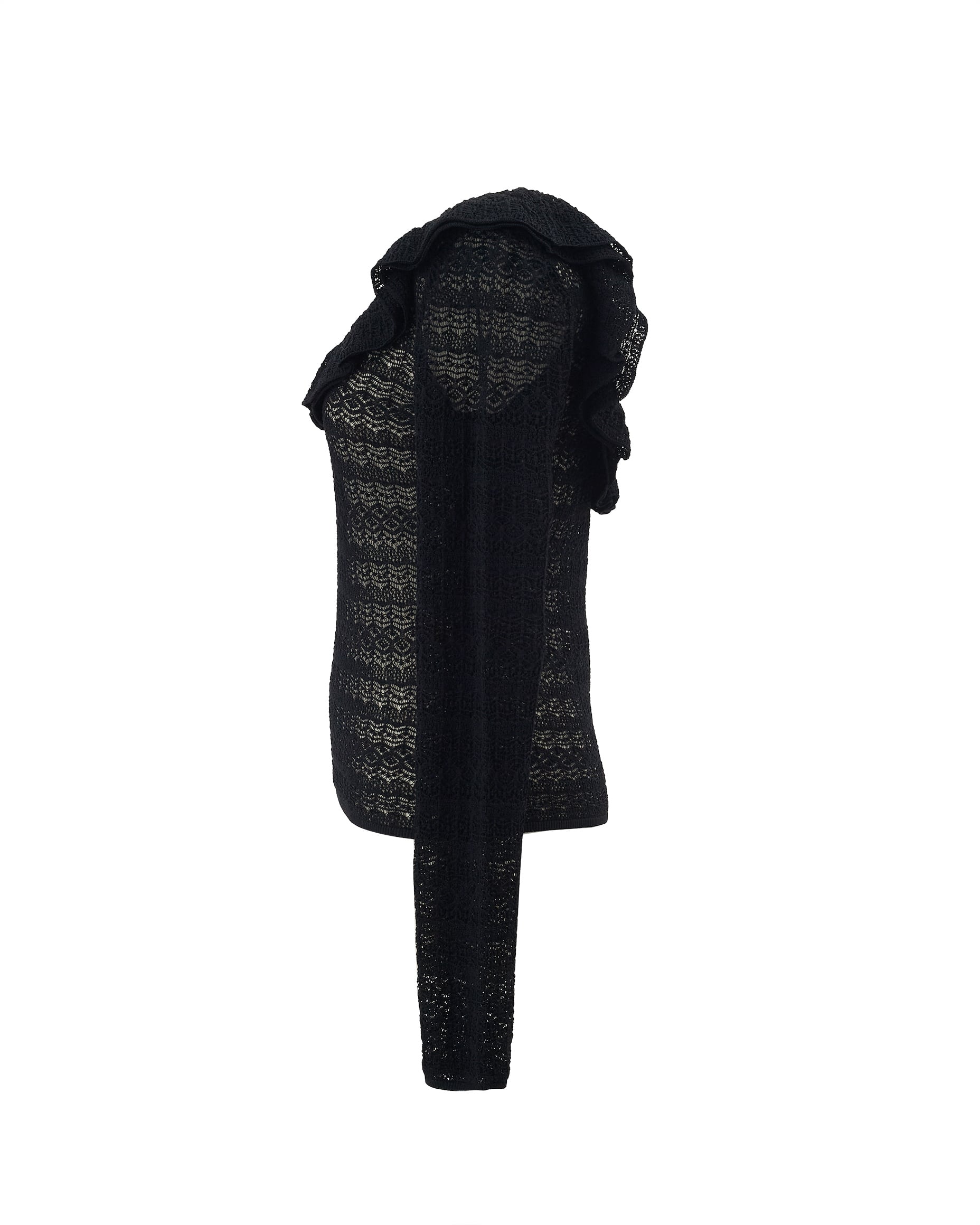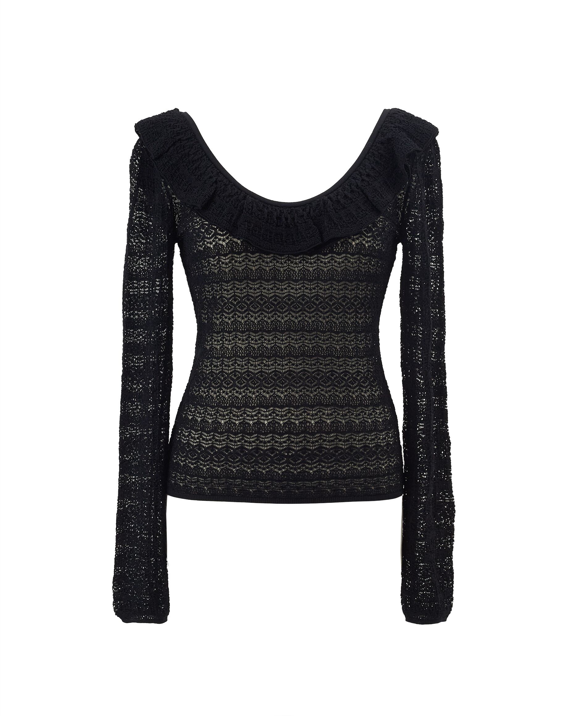 透かし柄フリルニット Tommy ブラック