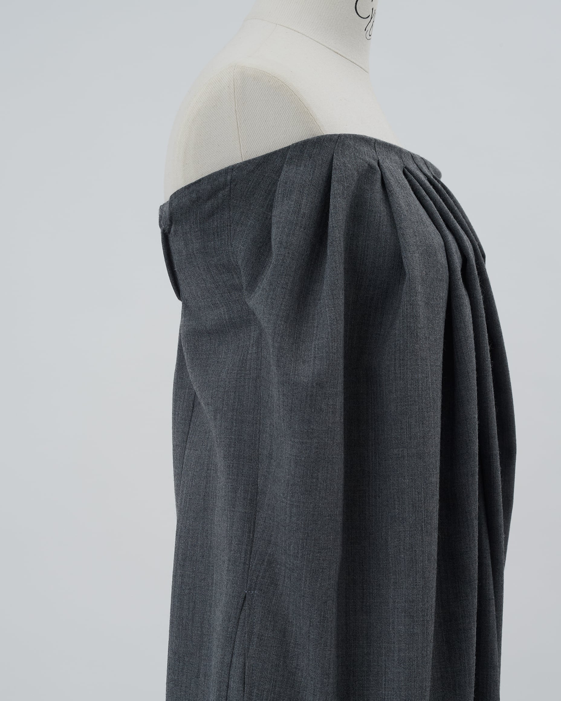 立体感のあるディテールが上半身を美しく見せ、モードで華やかな印象を与えます。