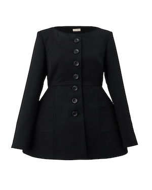 印象的なネックラインと、左右にふんわりと膨らむ立体的なシルエットが特徴の1枚です。