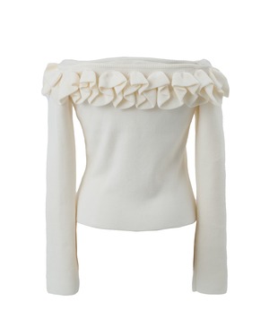 立体的なフリルディテールが印象的なオフショルダーニット。