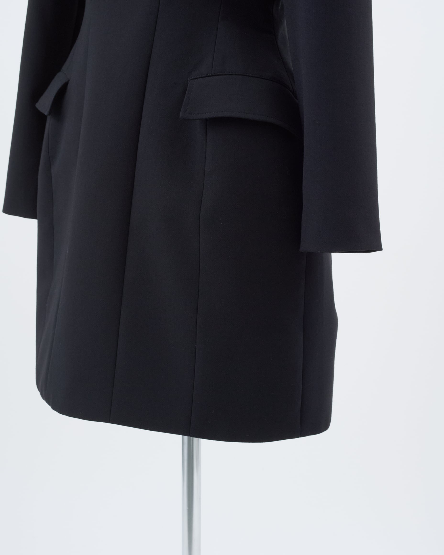 ジャケットのようなフラップポケットがデザインポイントとなり、モードな雰囲気を漂わせつつも、上品でクラシカルな印象に。