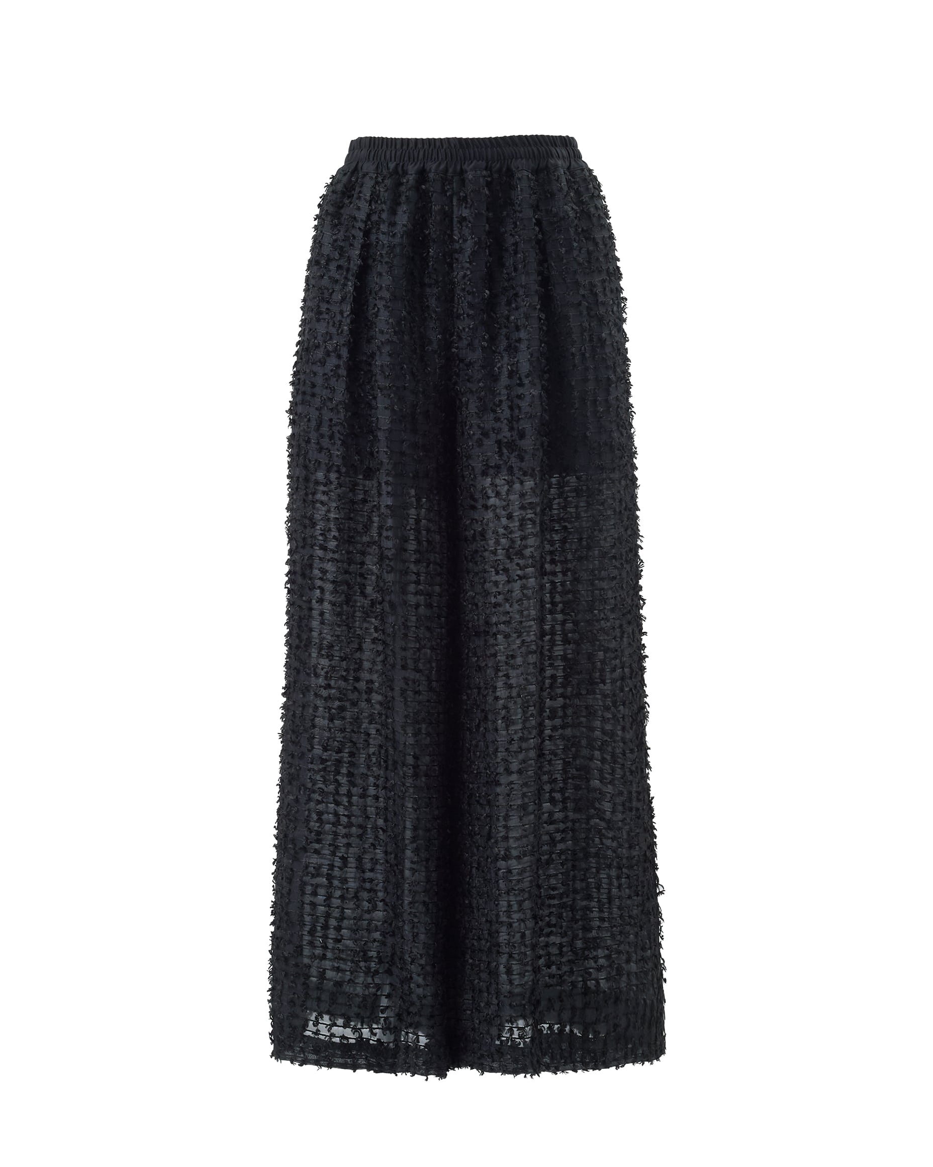 表面にさりげない凹凸を感じる、ドット風ジャガード素材を使用したワイドパンツ。