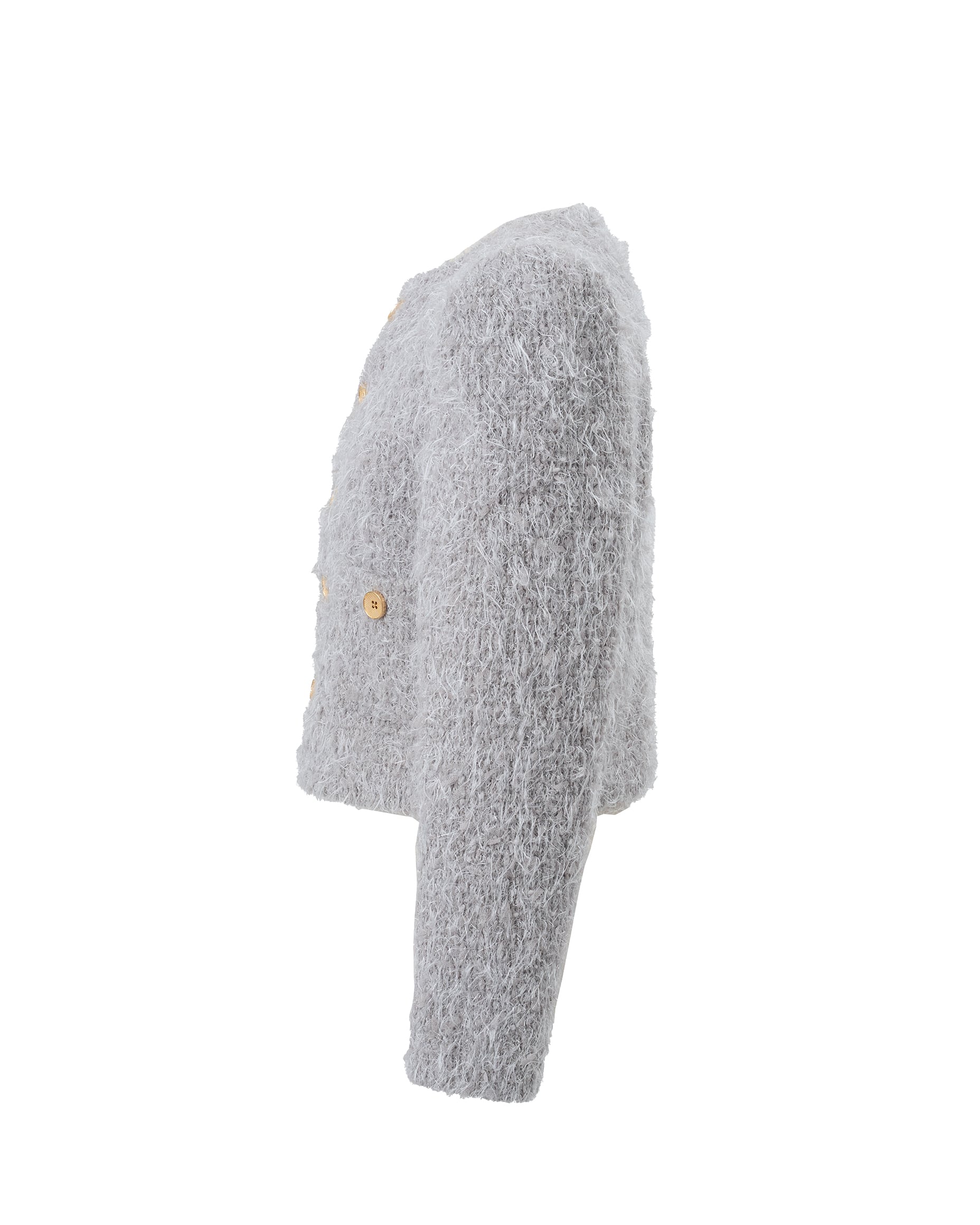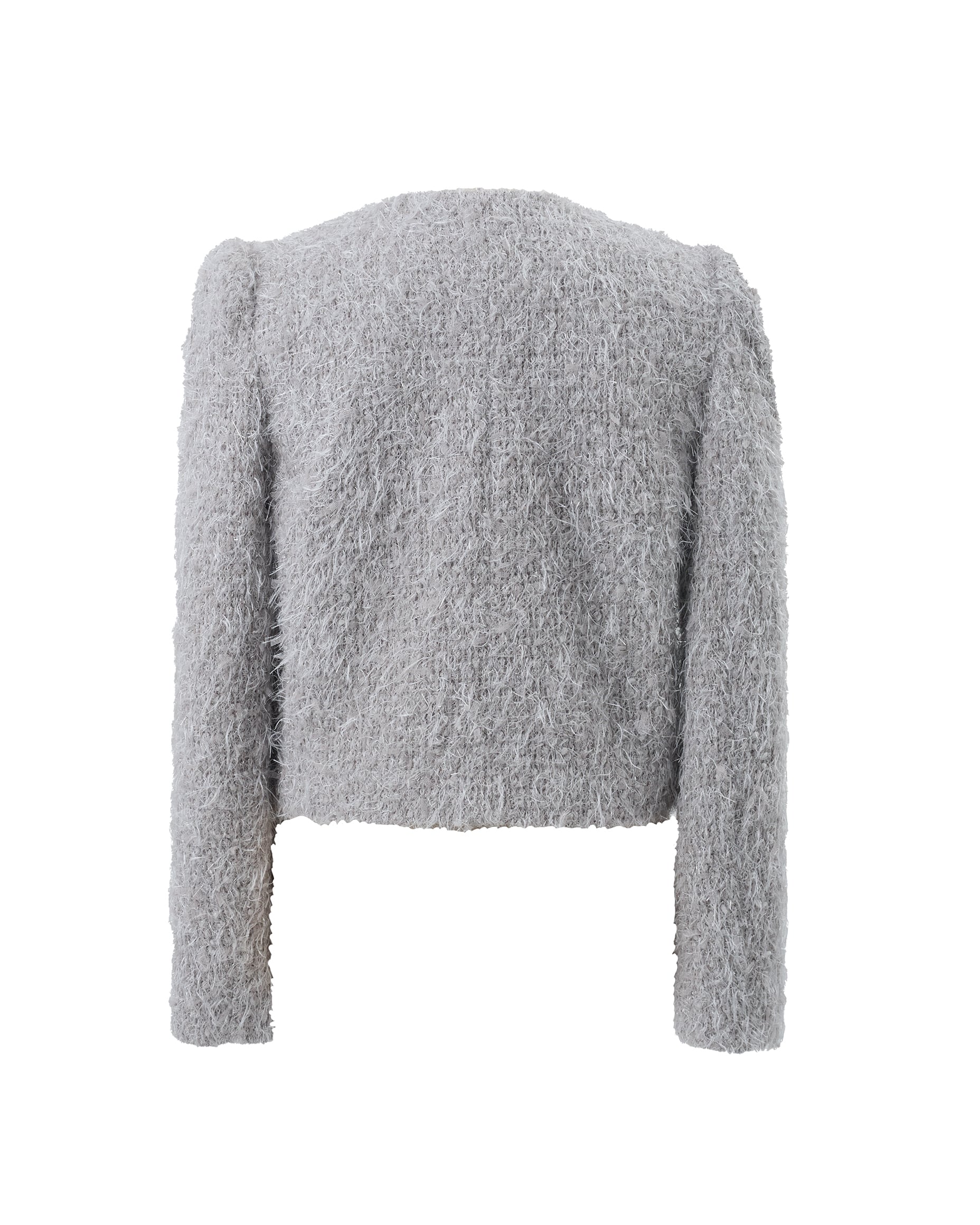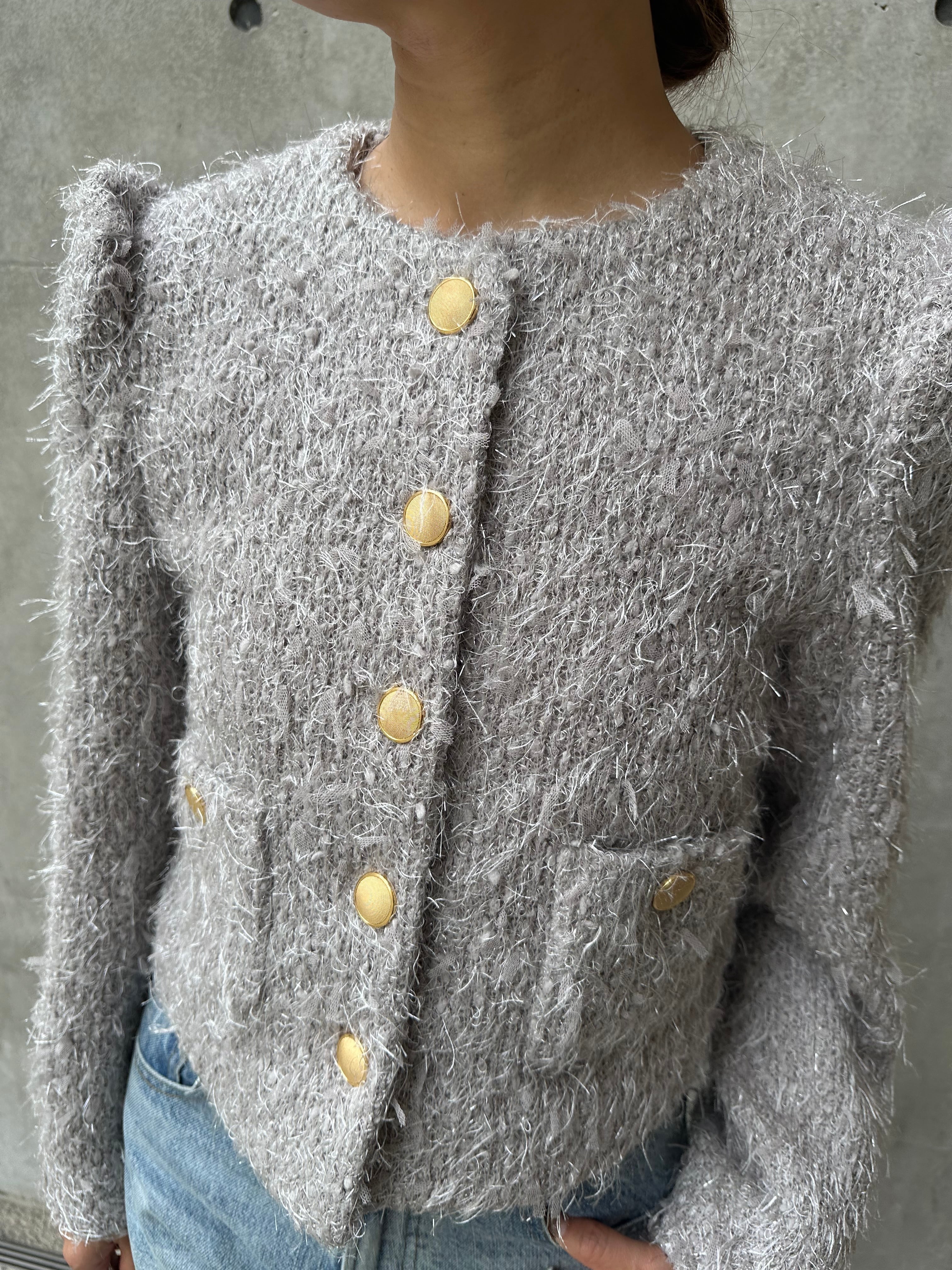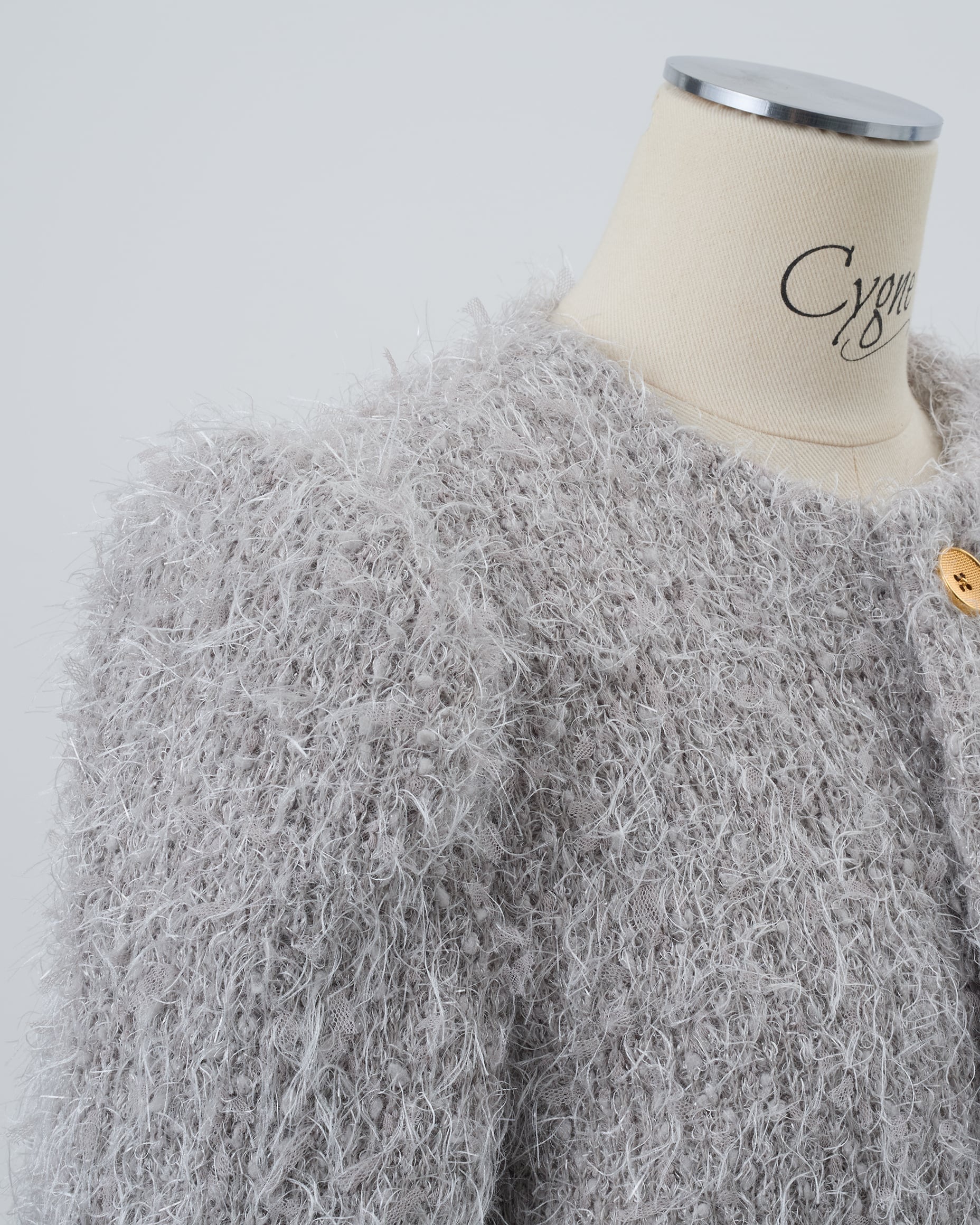 ふんわりとした毛足でシャギー感があり、上品な光沢を帯びた柔らかくも存在感のあるツイード素材を使用しております。