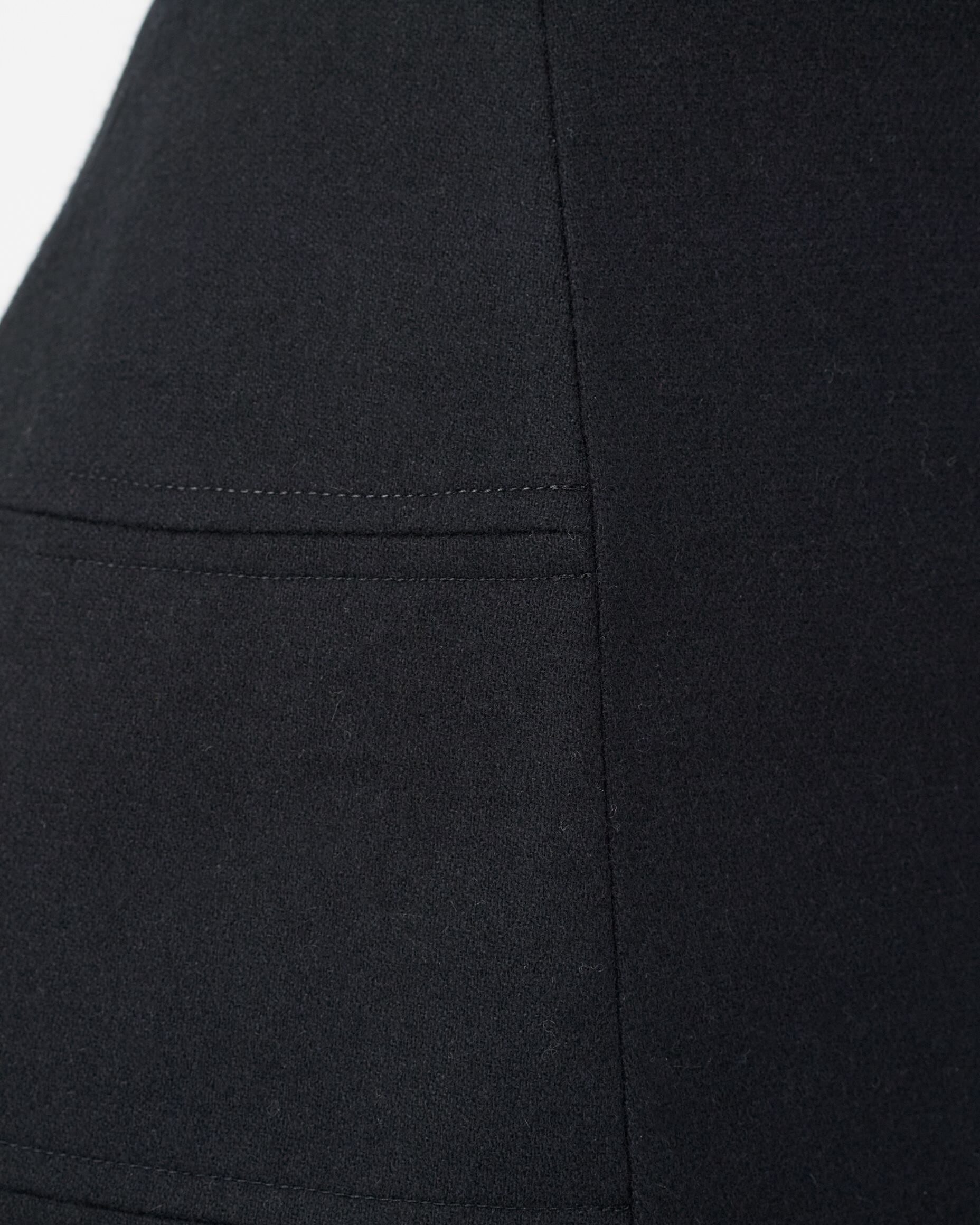 素材には、ドライタッチでハリのある梳毛の2WAYストレッチウール混を使用。