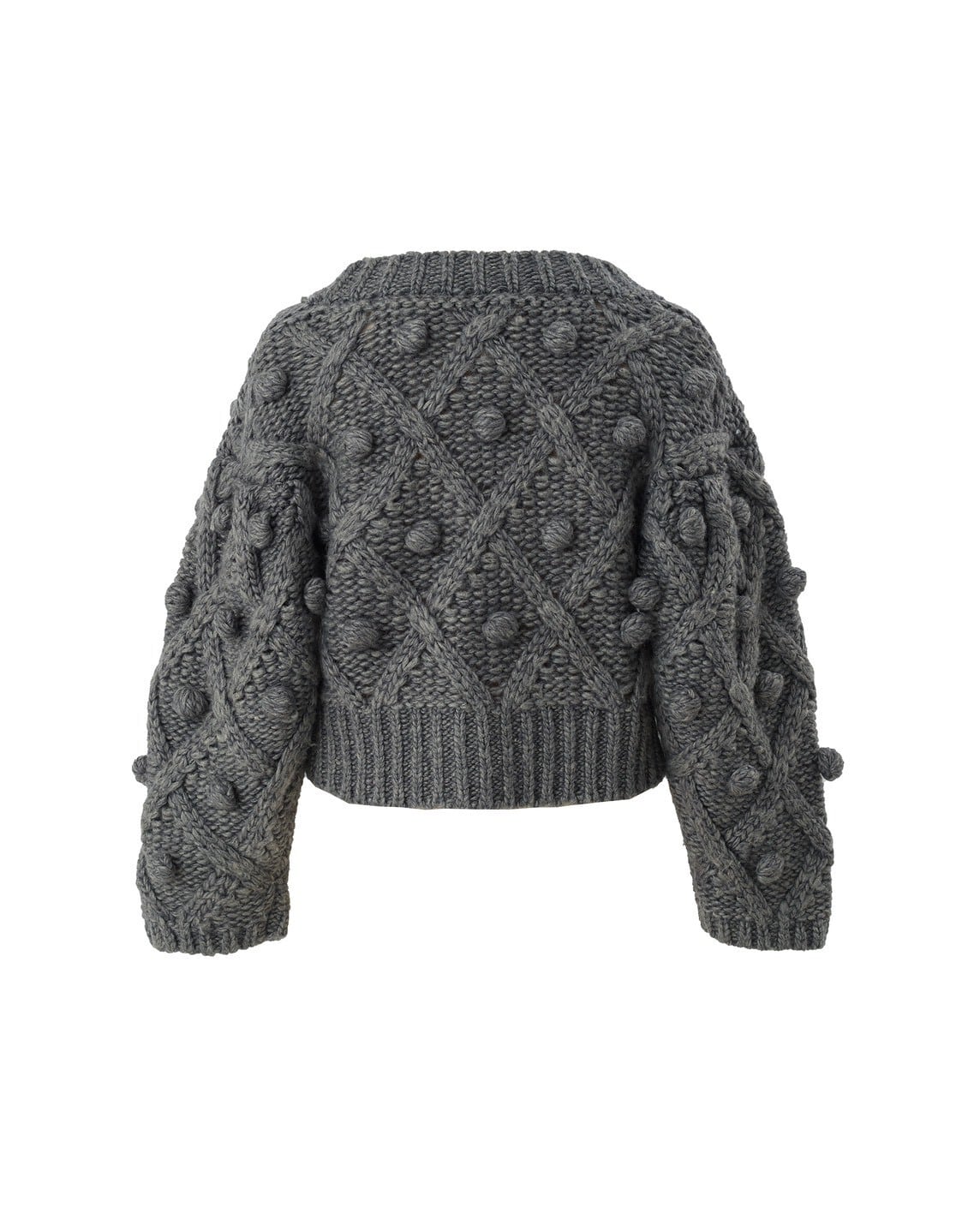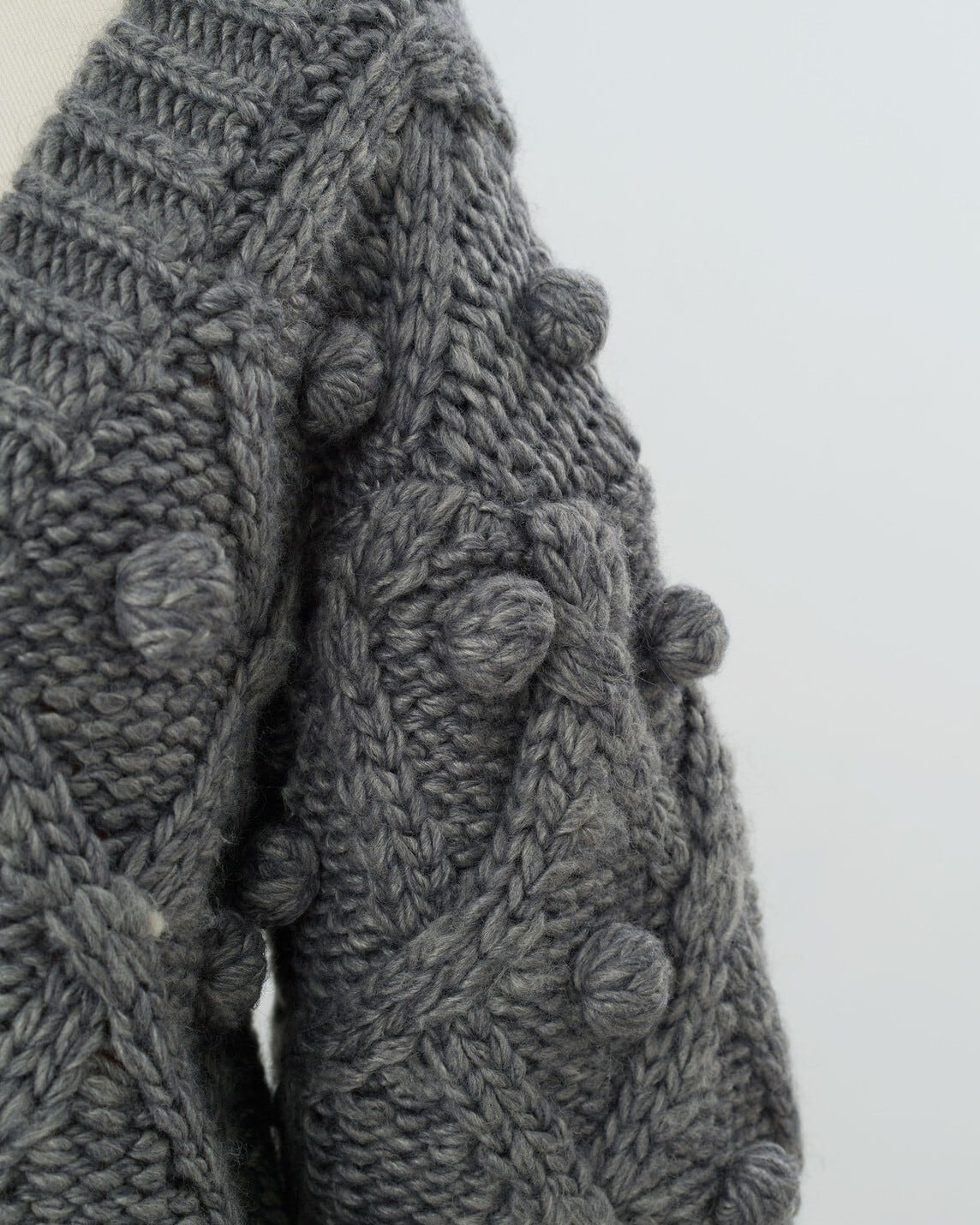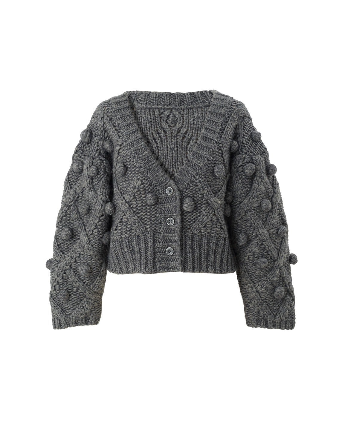 丸いポンポンが特徴の温もり溢れるモヘアカーディガン。