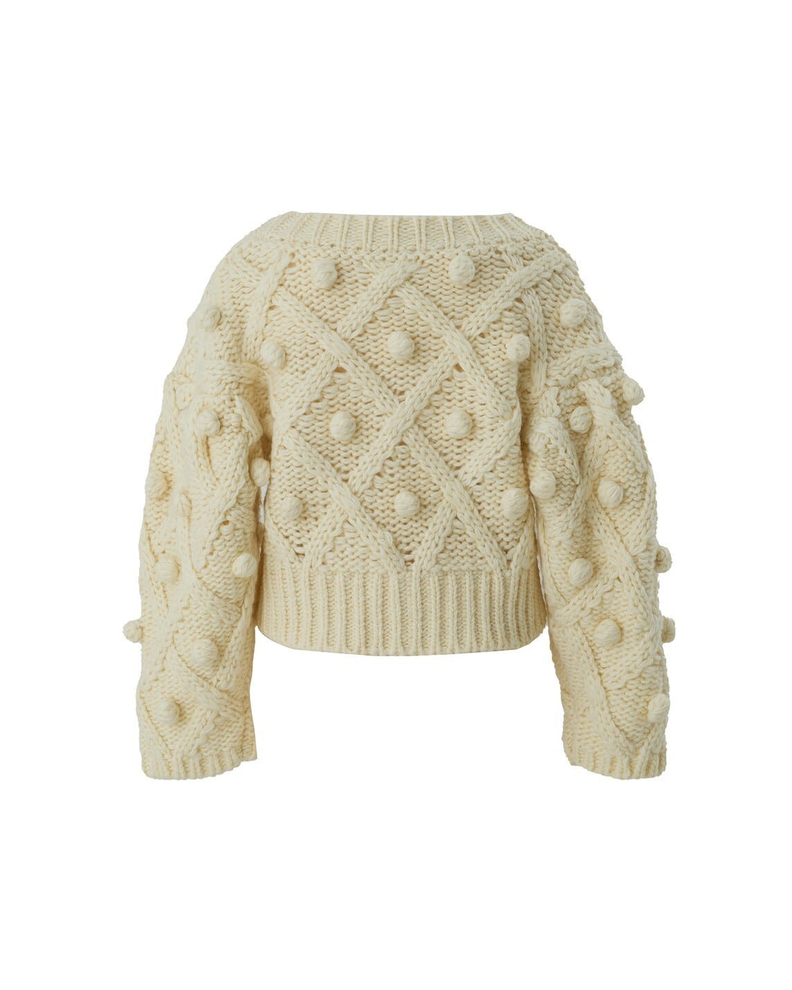 一つひとつ丁寧に編み上げられた丸いポンポンディテールは手作業によるもの。