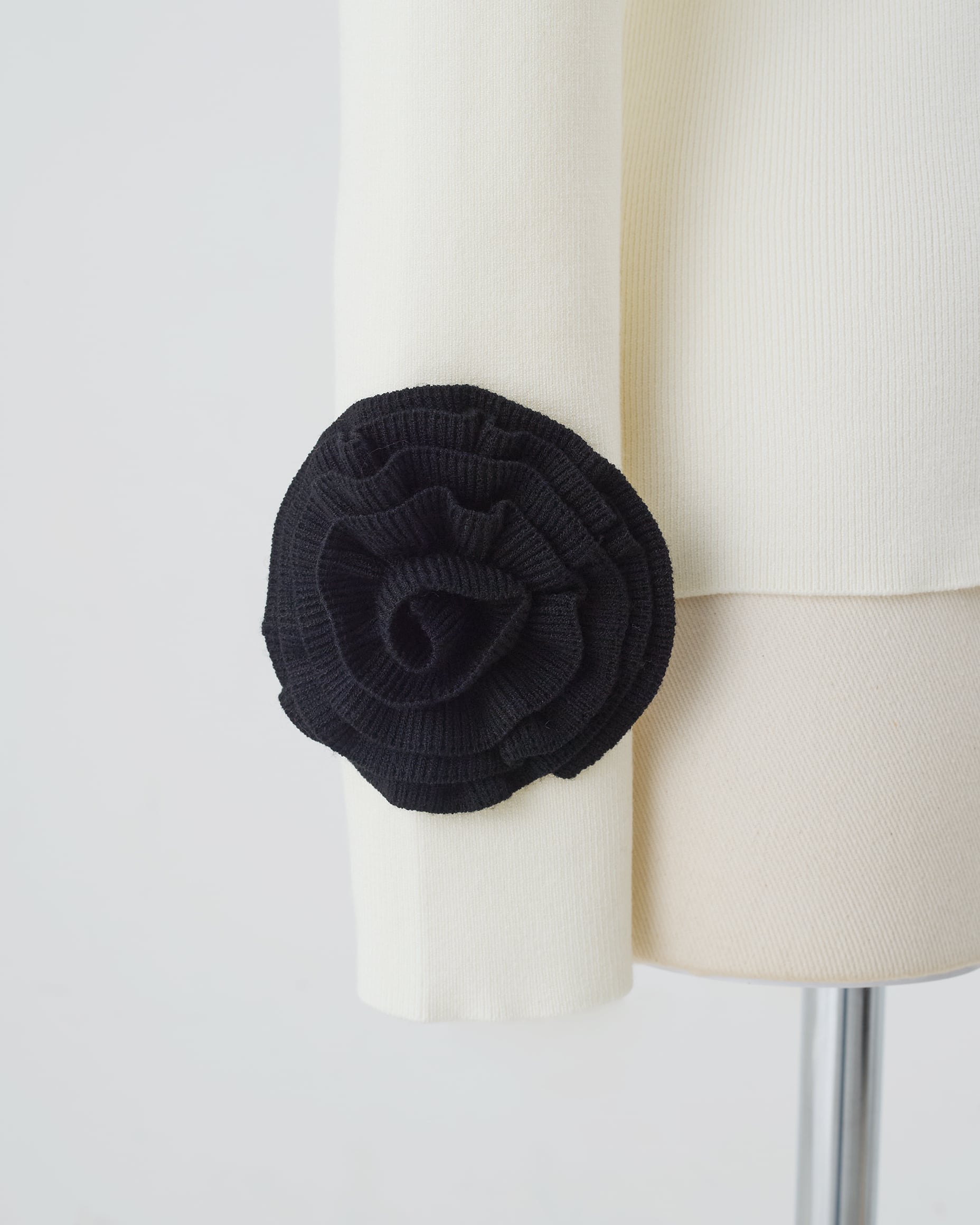 お袖にバラのモチーフを取り付けたニット