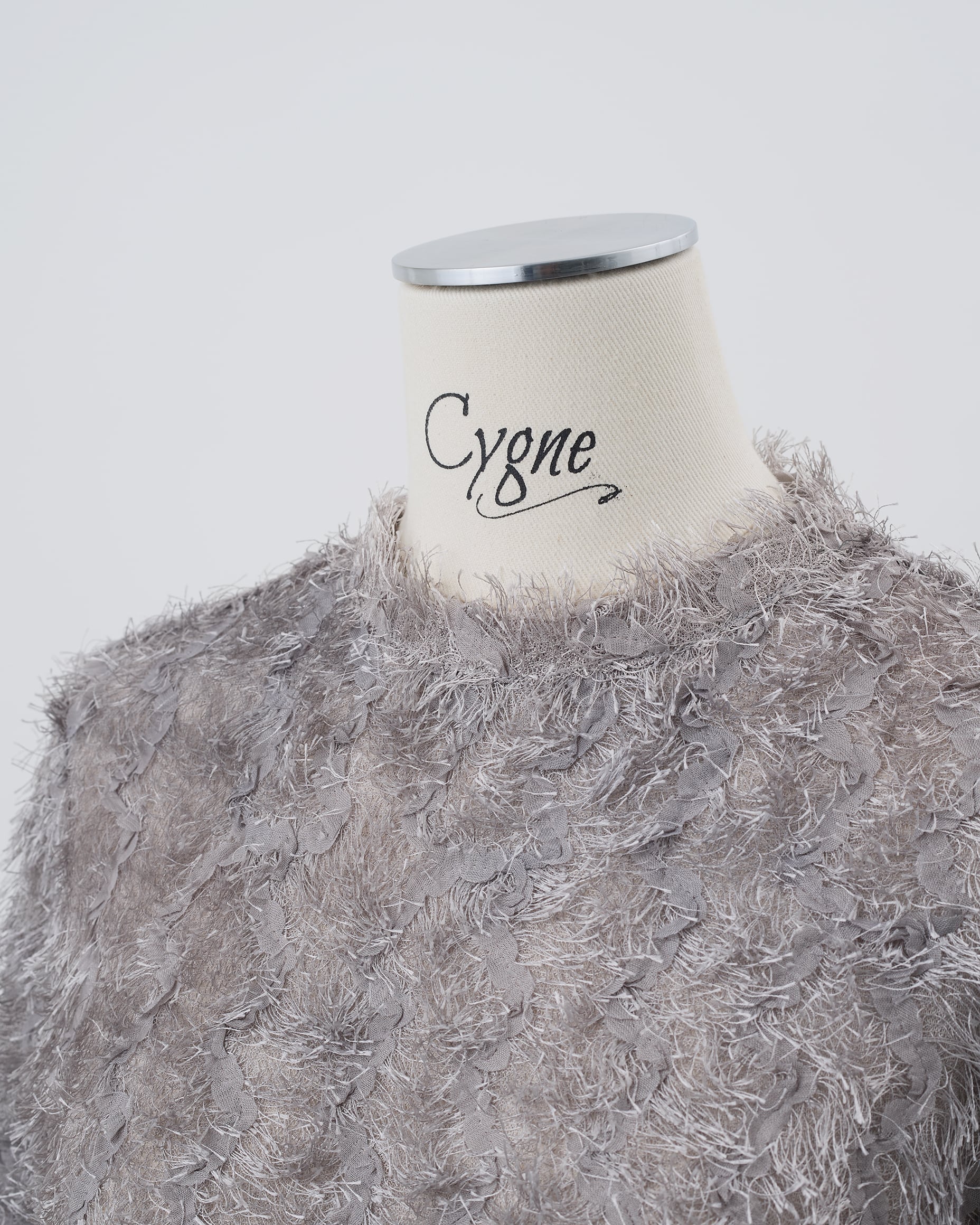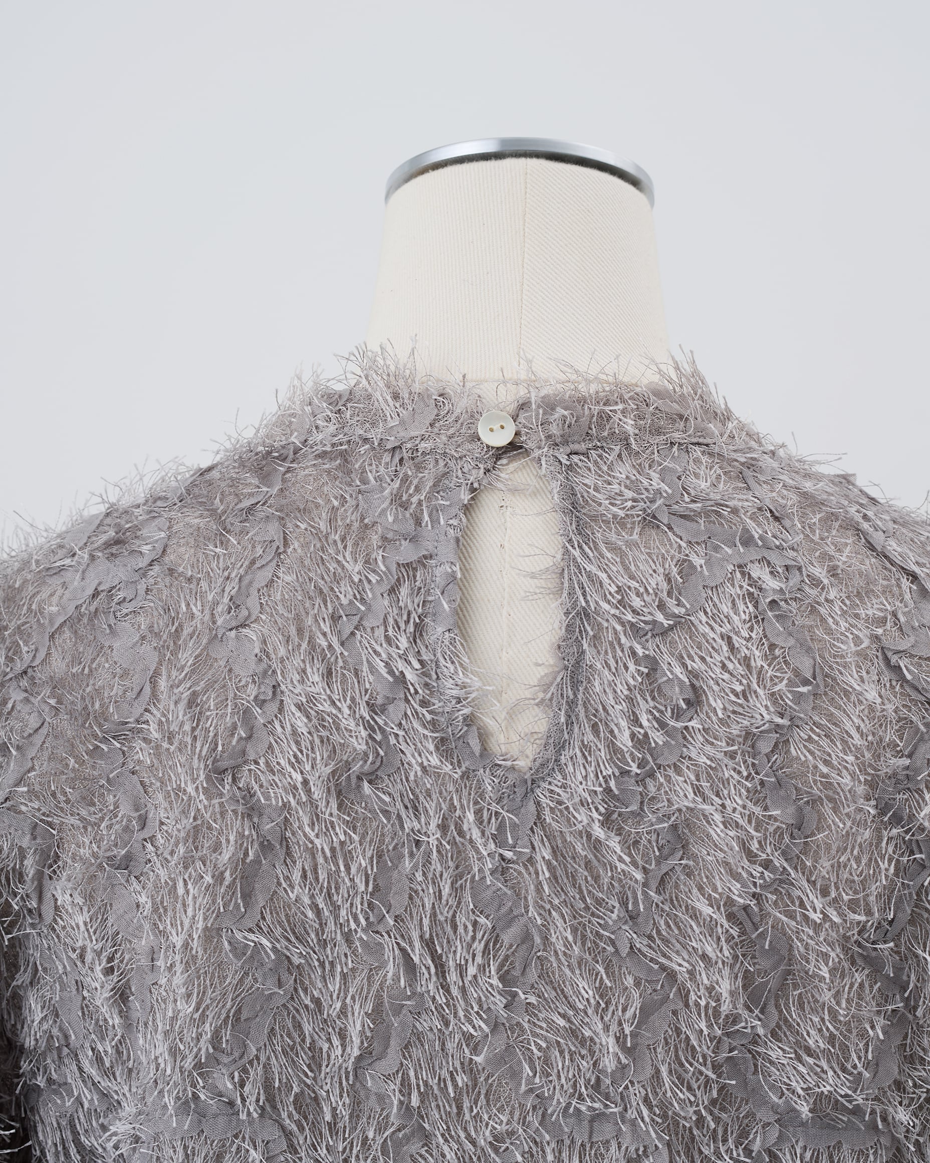 素材そのものの表情感がスタイリングを一瞬で華やかにしてくれる、ファンシートップス。