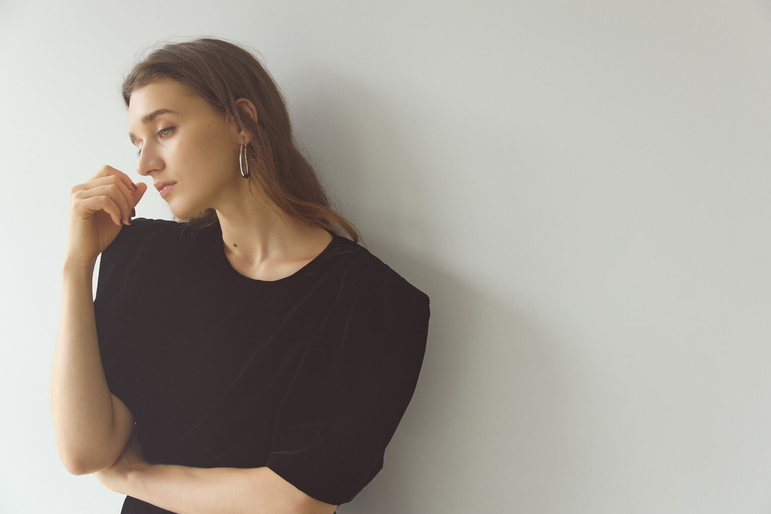 上質なベルベット素材で仕立てた、存在感のあるパワーショルトップス。