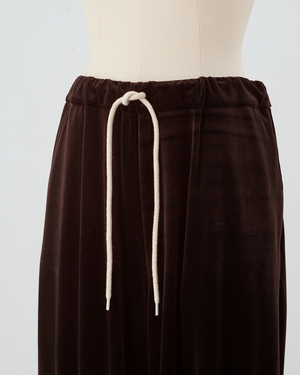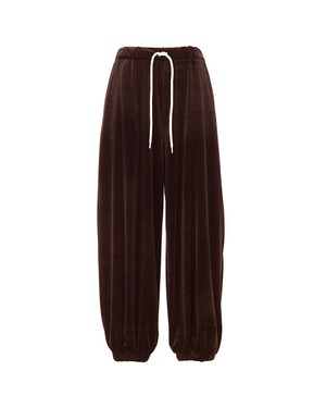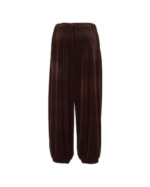 ゆるりとしたシルエットで抜け感のある印象に仕上げた、ベロア素材のドロストジョガーパンツ。