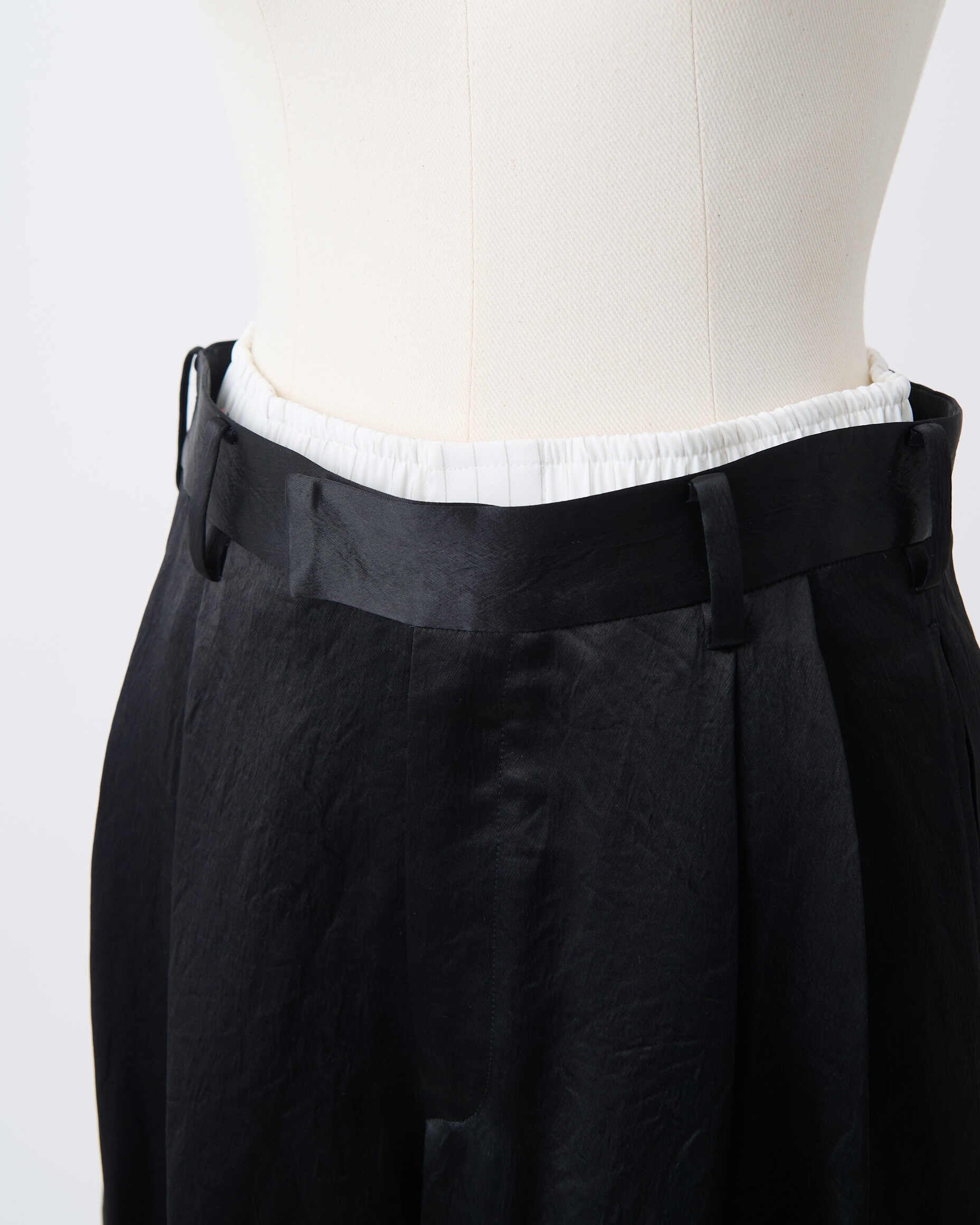 今季イチオシの new ボトム《サテンボクサーレイヤードパンツ》。