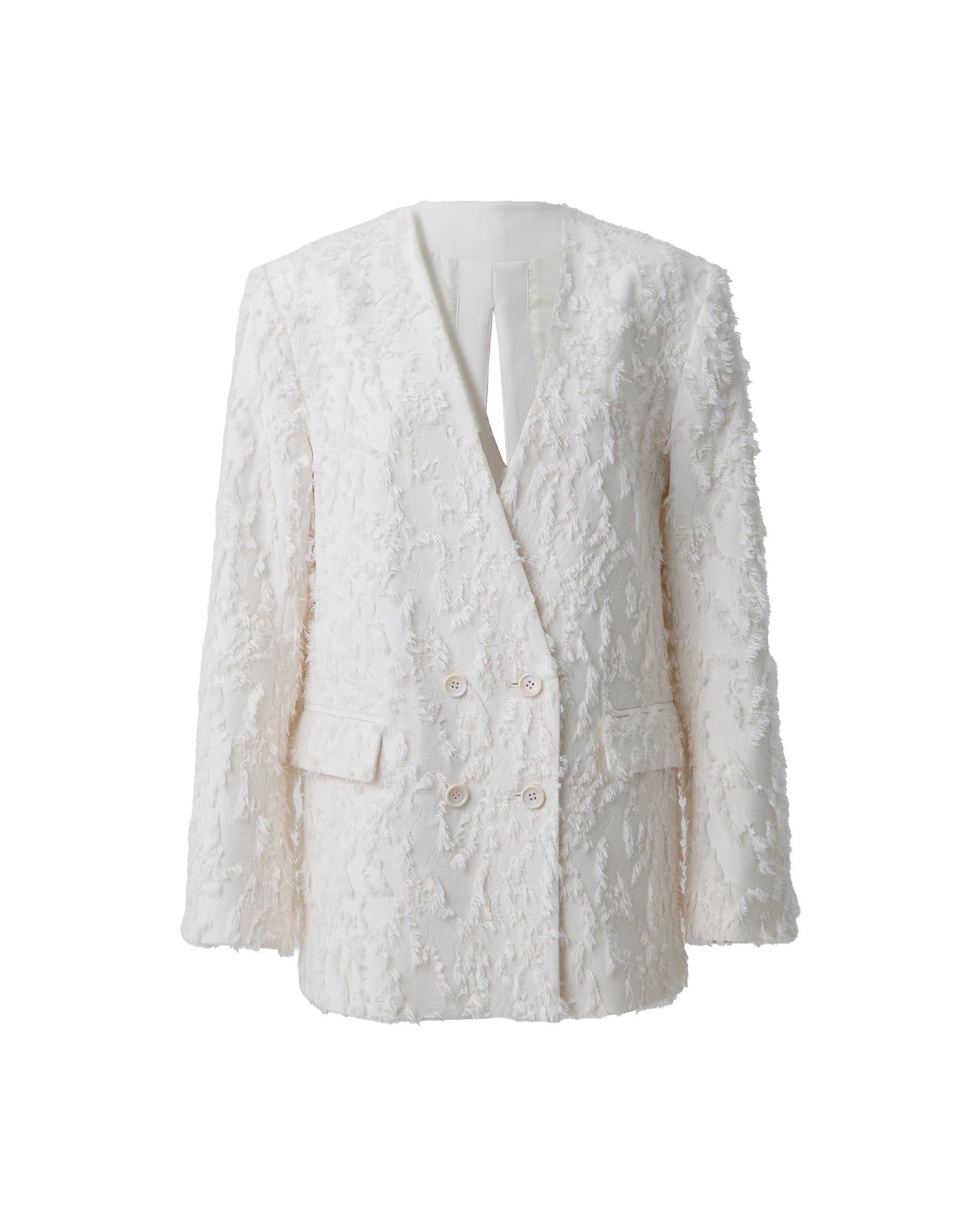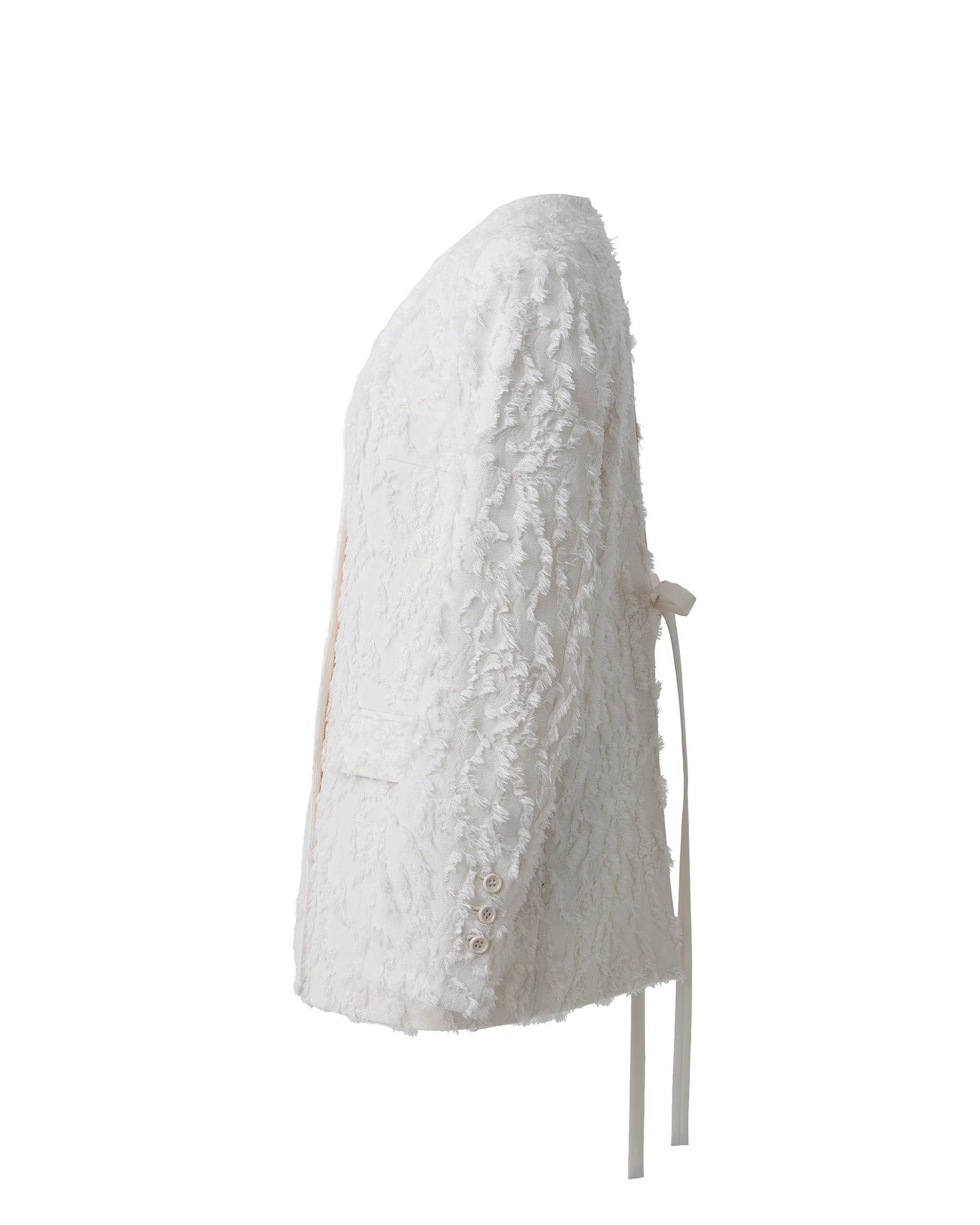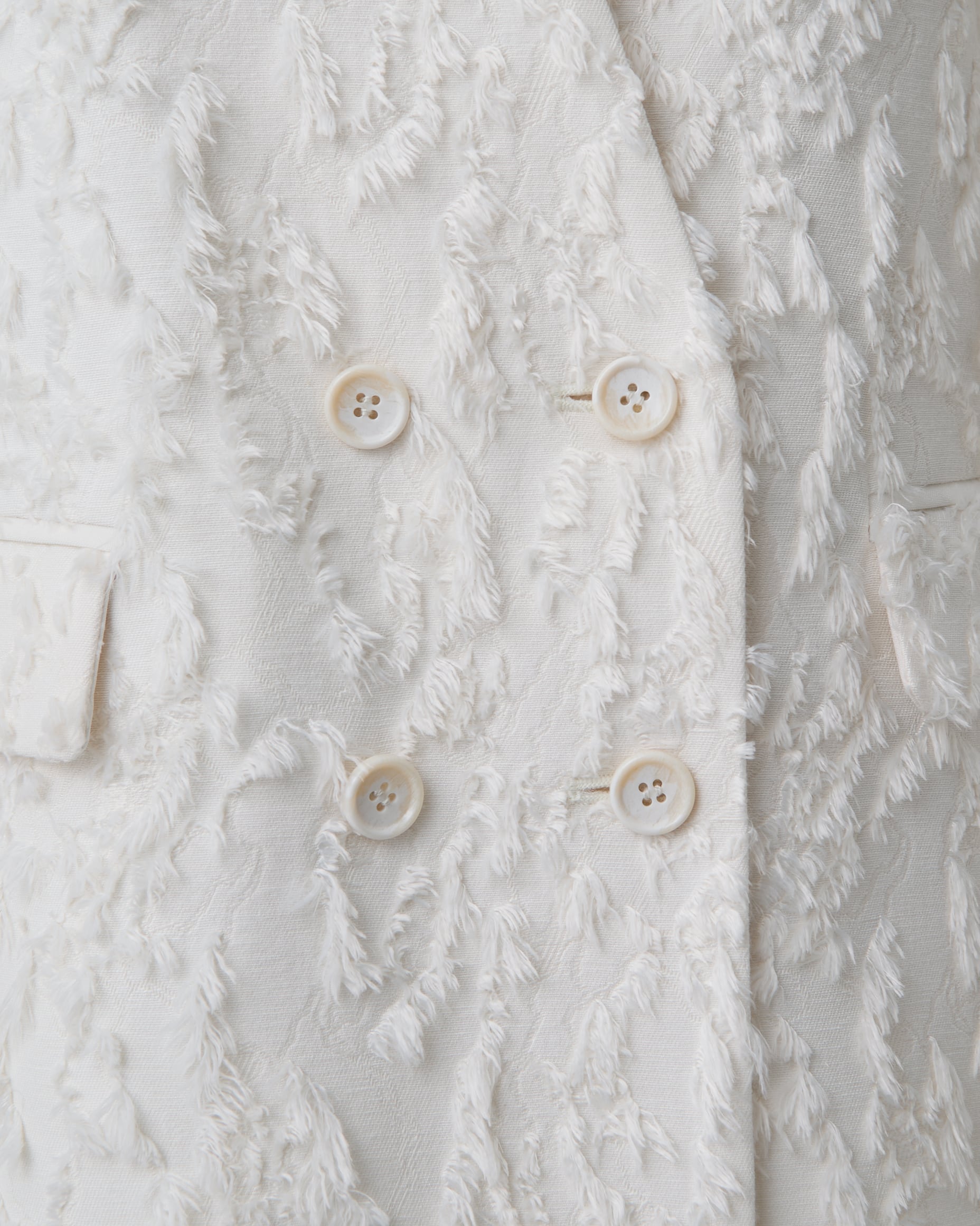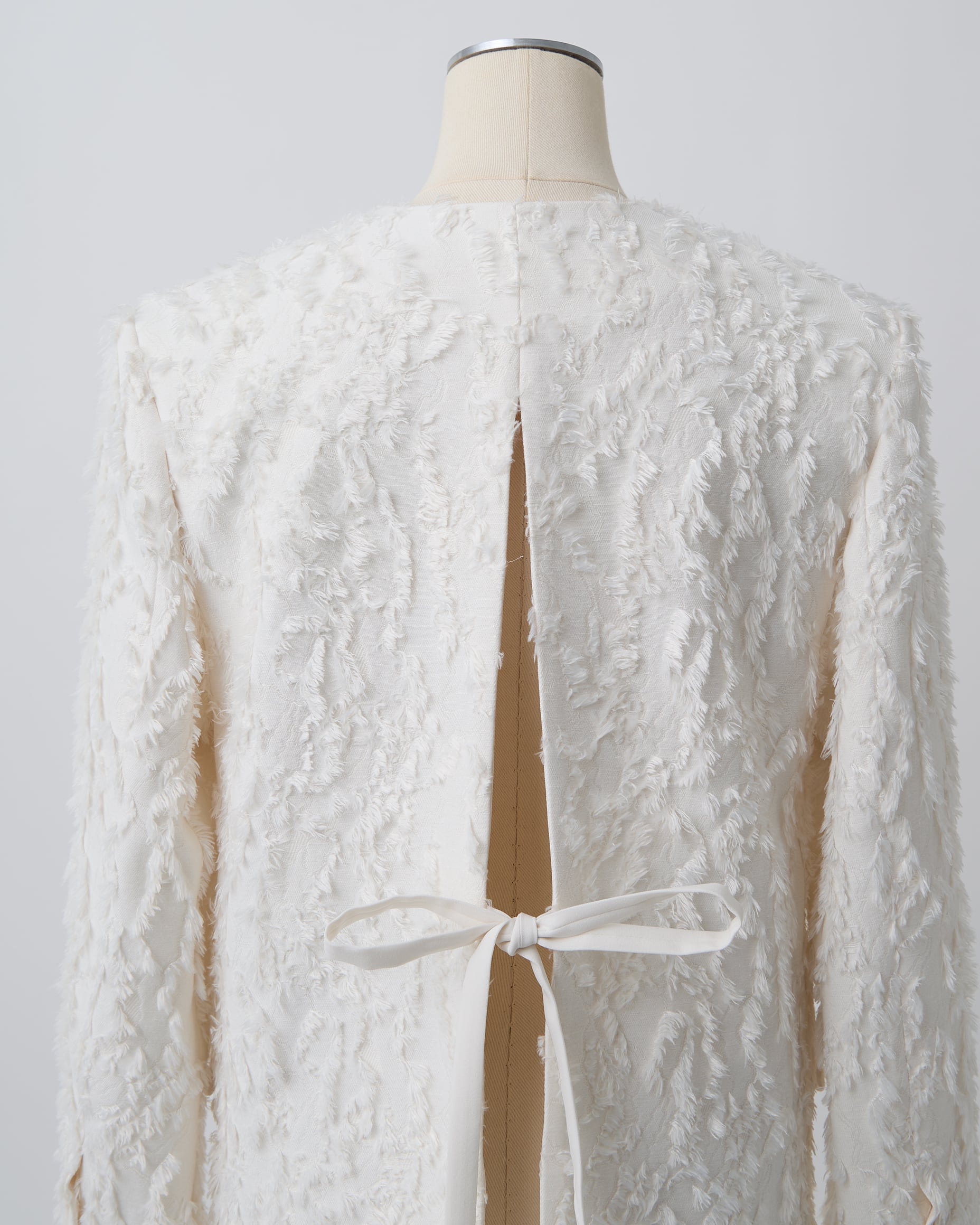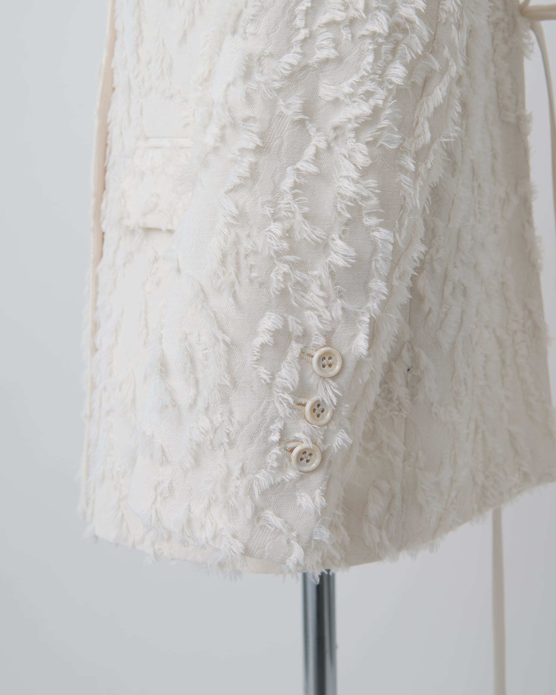 フェザー感のあるジャガードを使用したバックコンシャスジャケット。