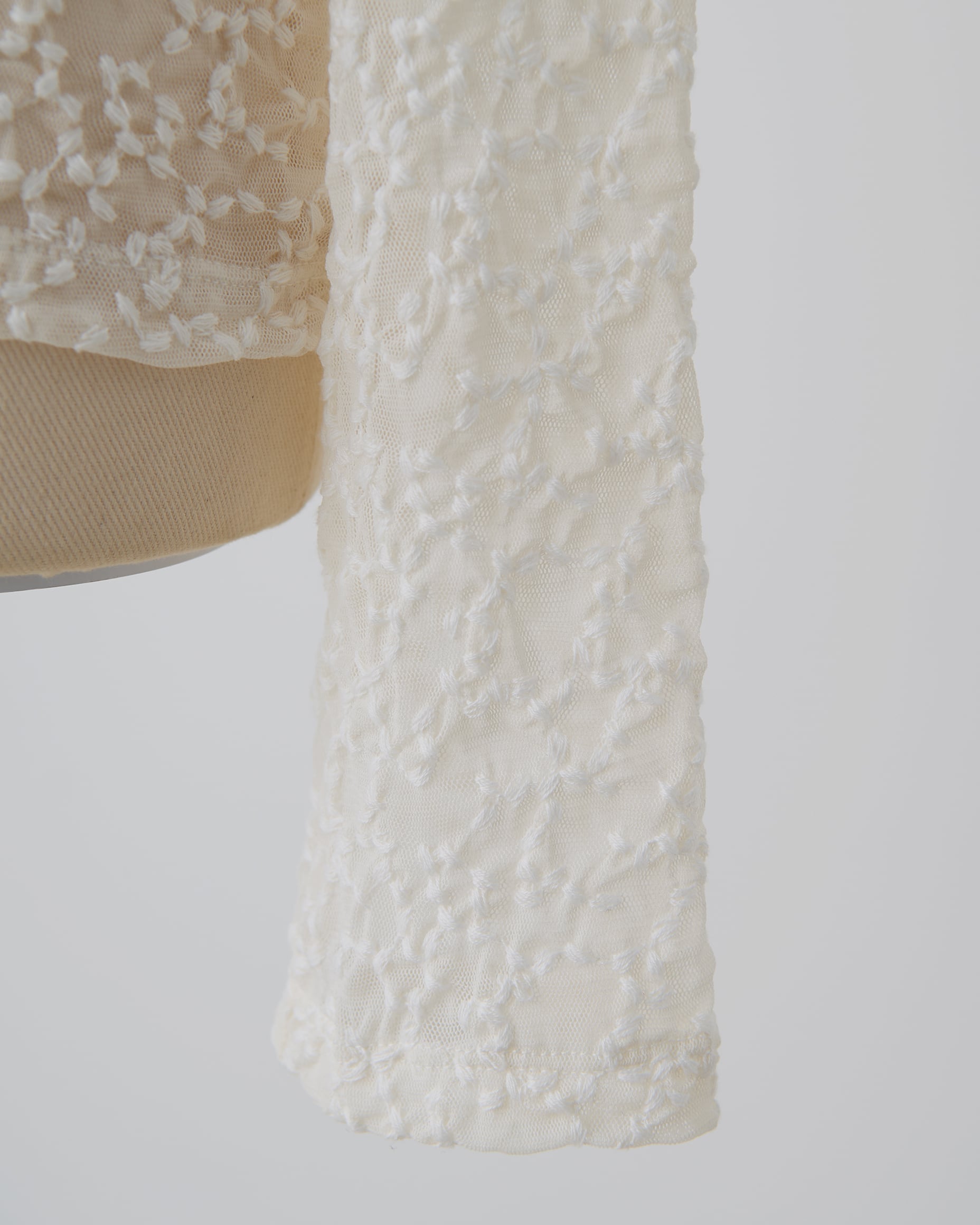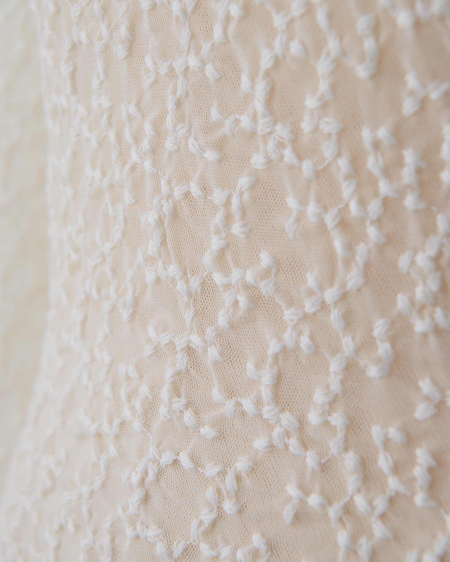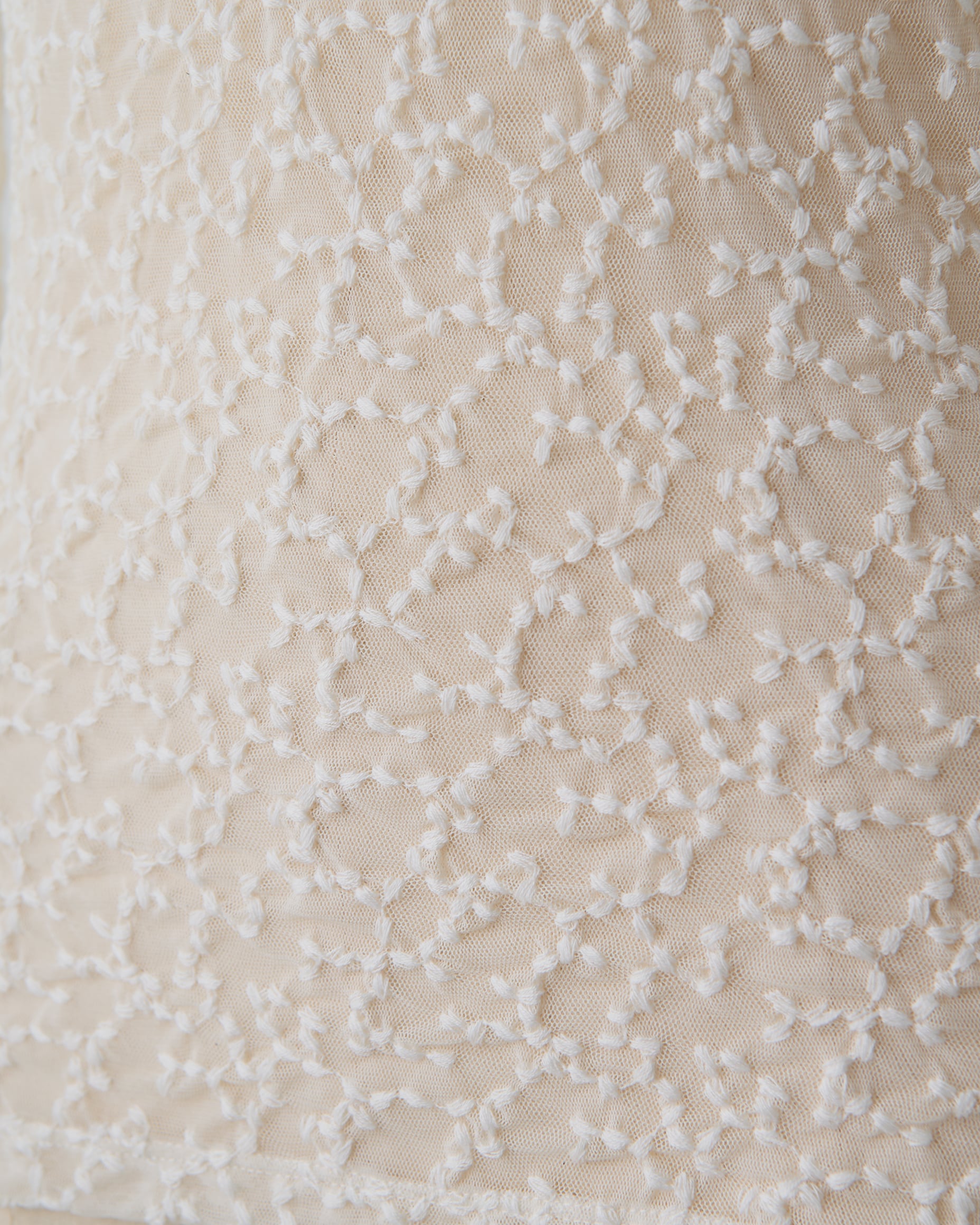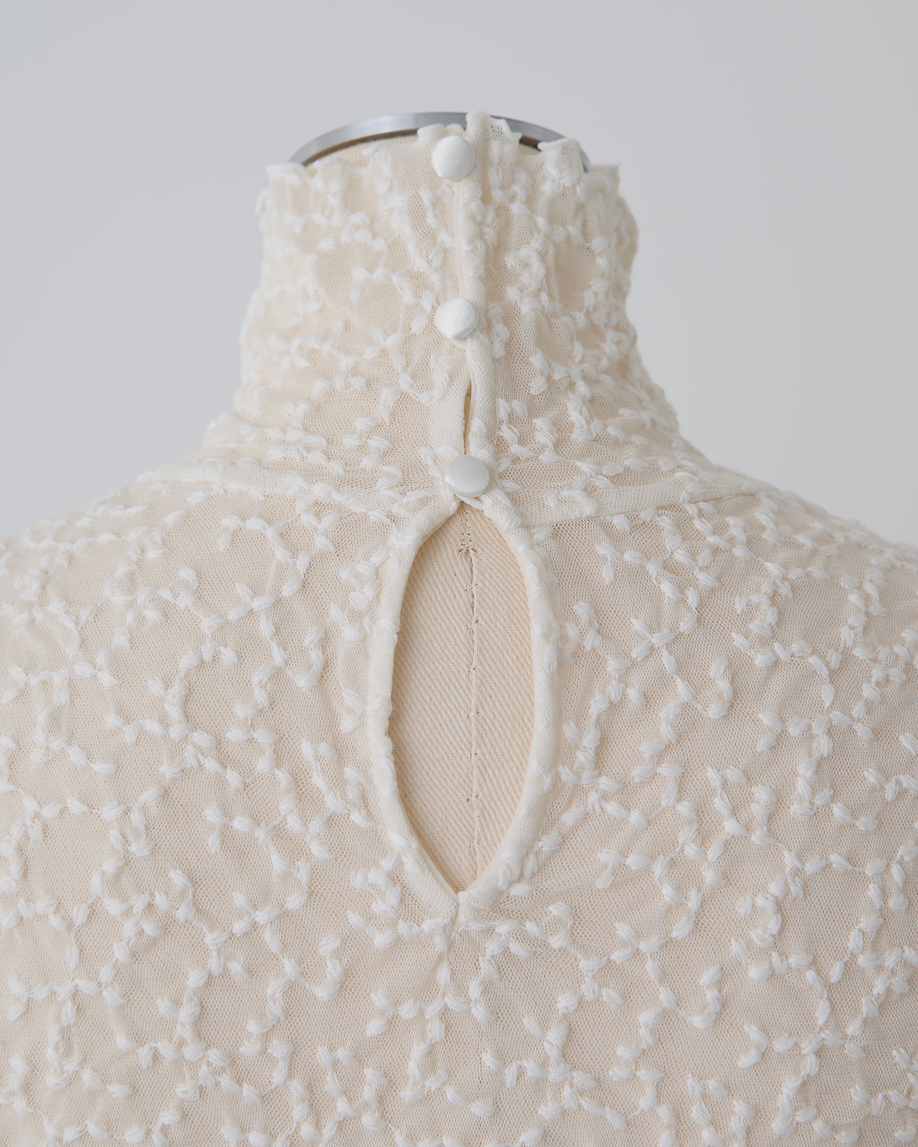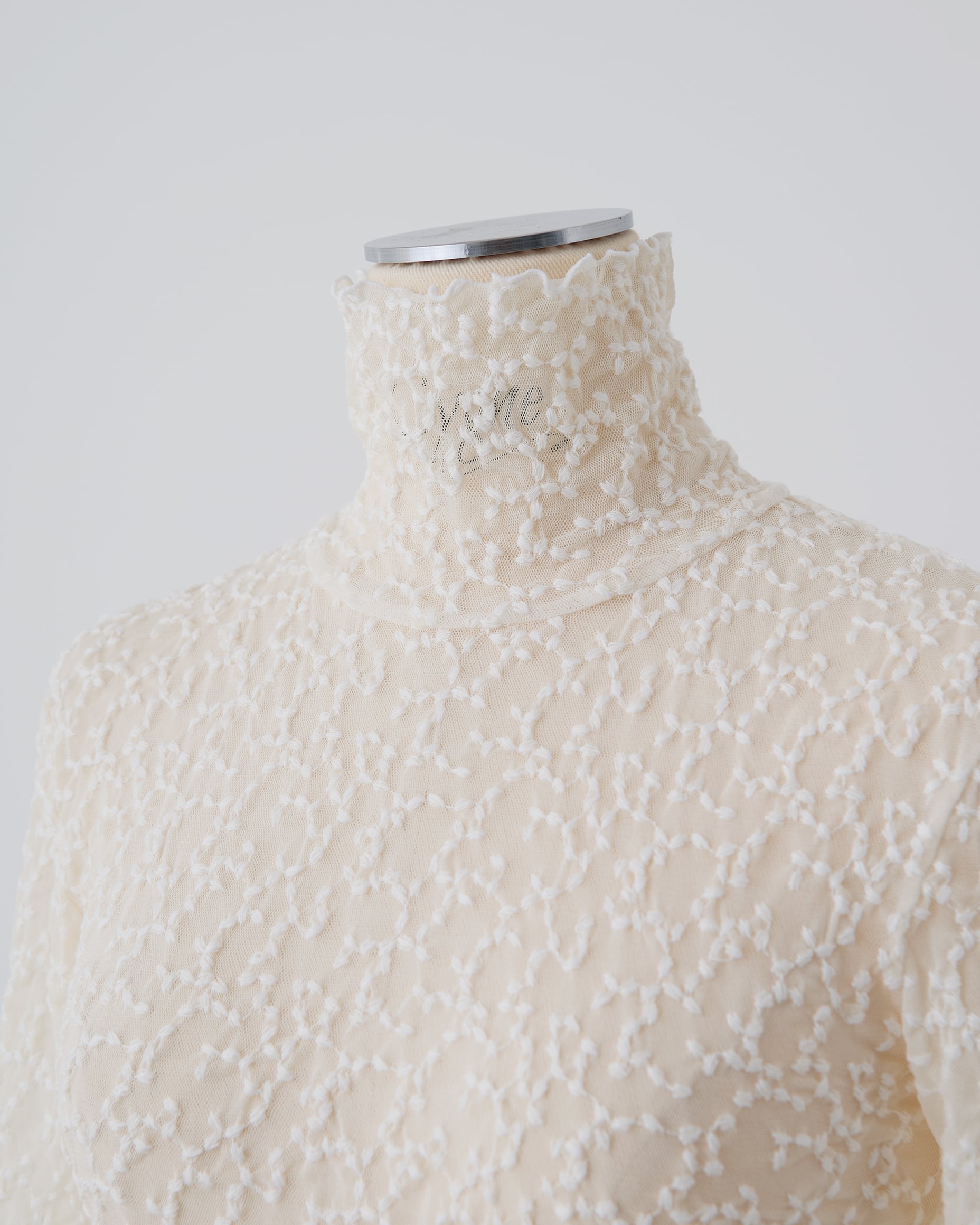 トップスとしてもインナーとしても使える、刺繍を施したチュールレーストップス。
