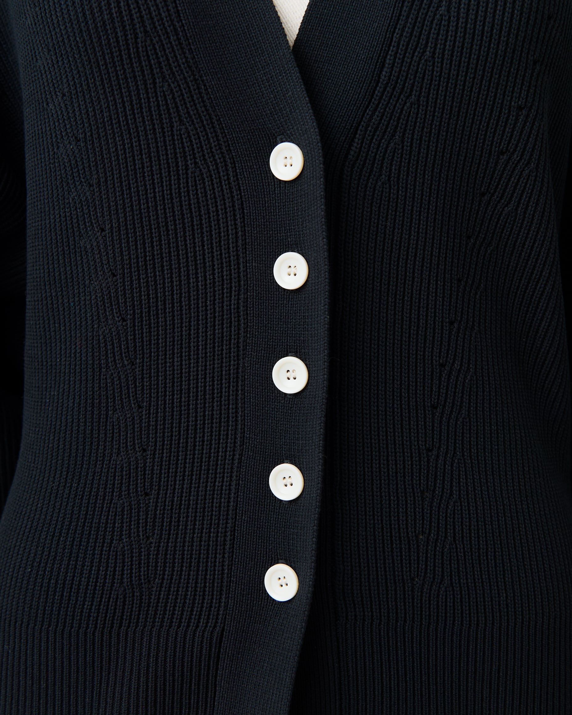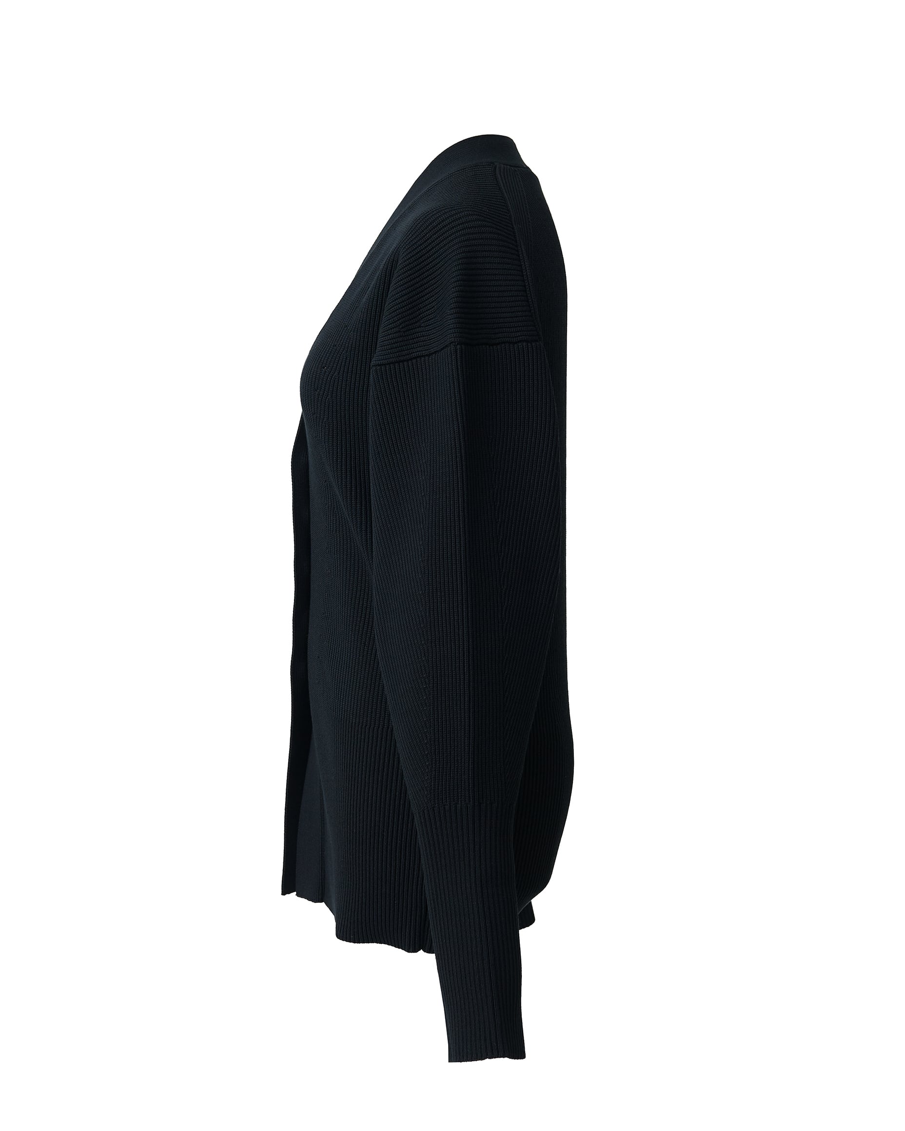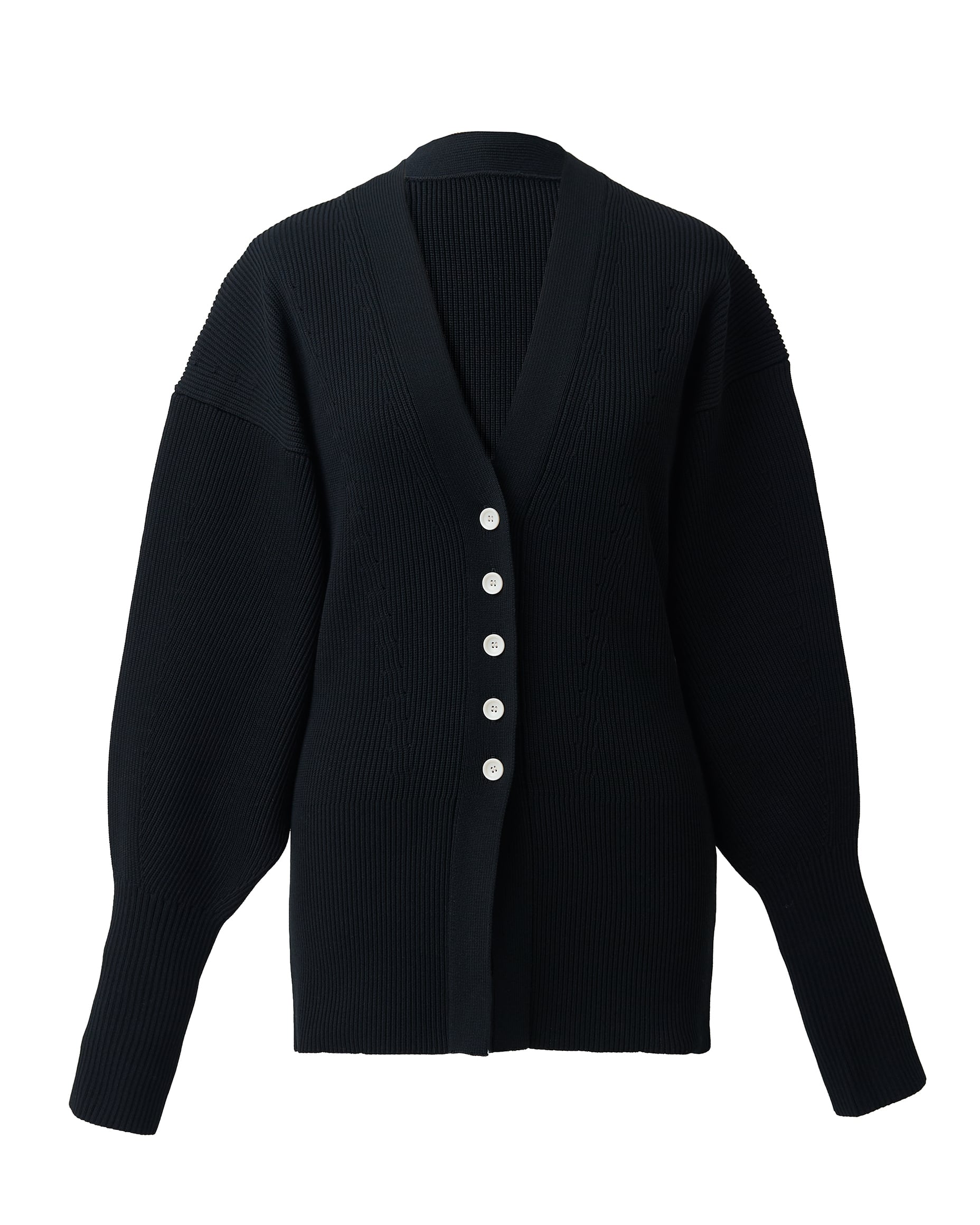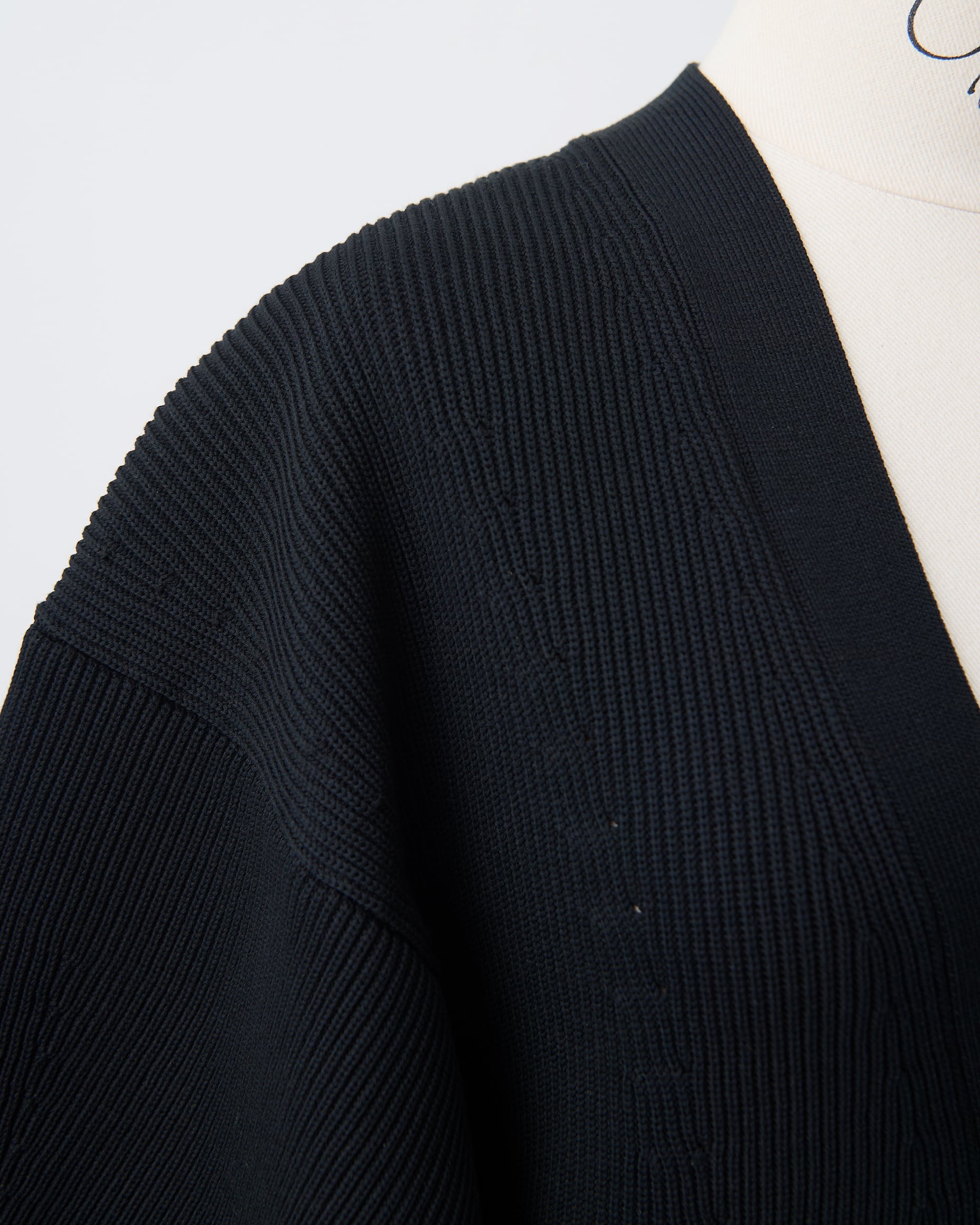 程よい肉感のリブニットが美しいシルエットを生み出し、羽織るだけで洗練されたスタイルに。
