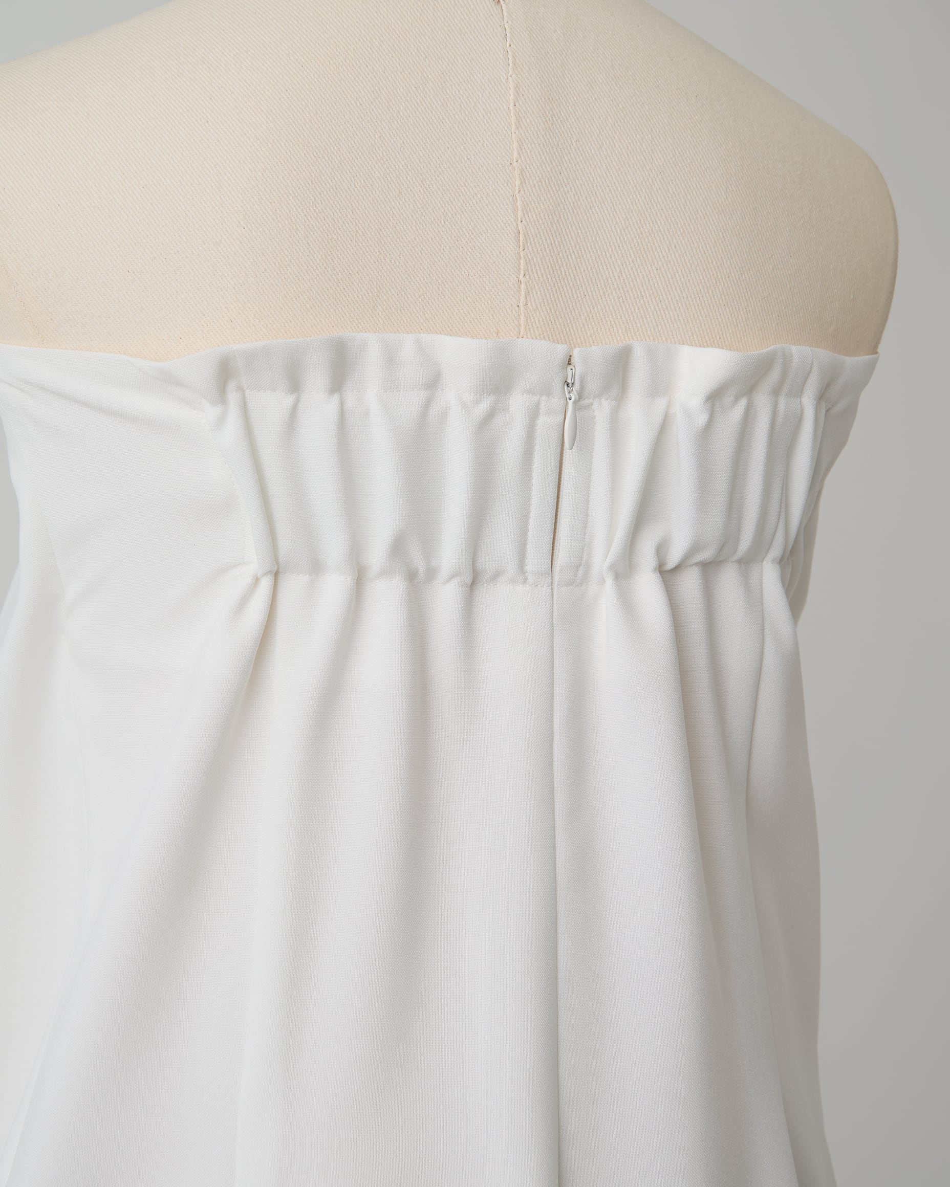 立体感のあるディテールが上半身を美しく見せ、モードで華やかな印象を与えます。