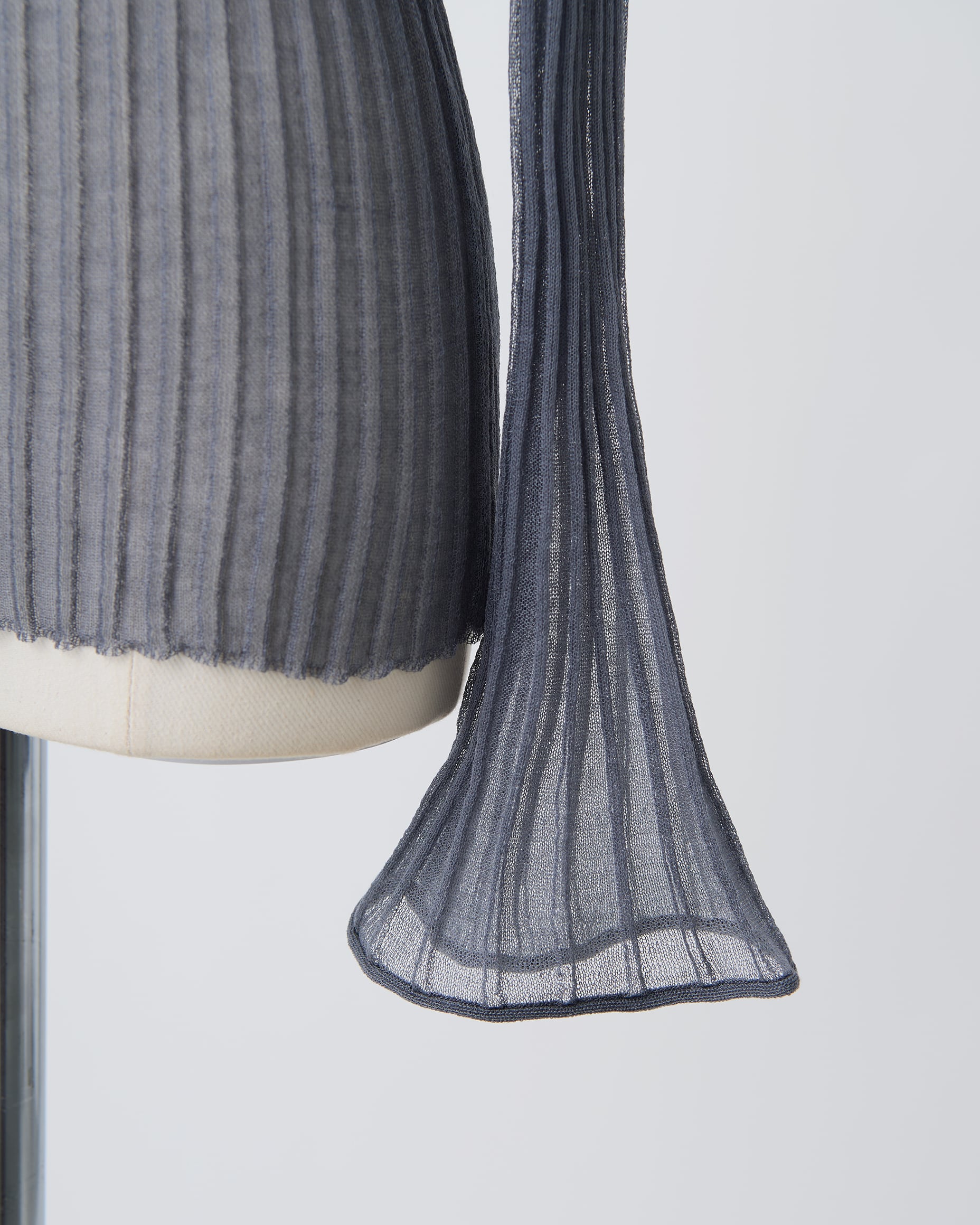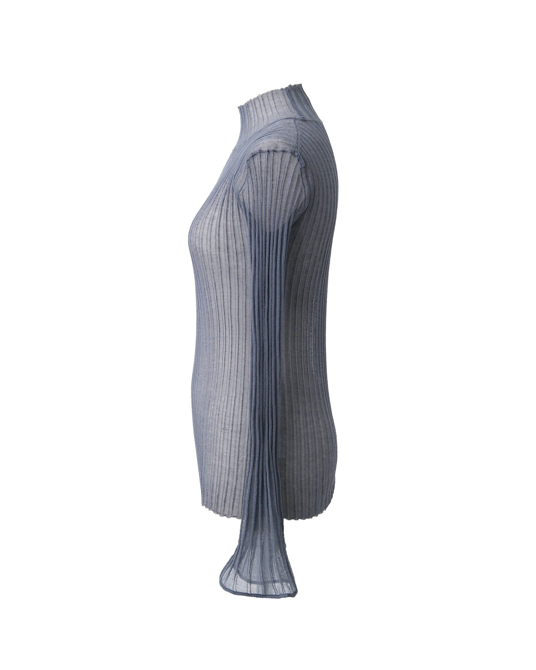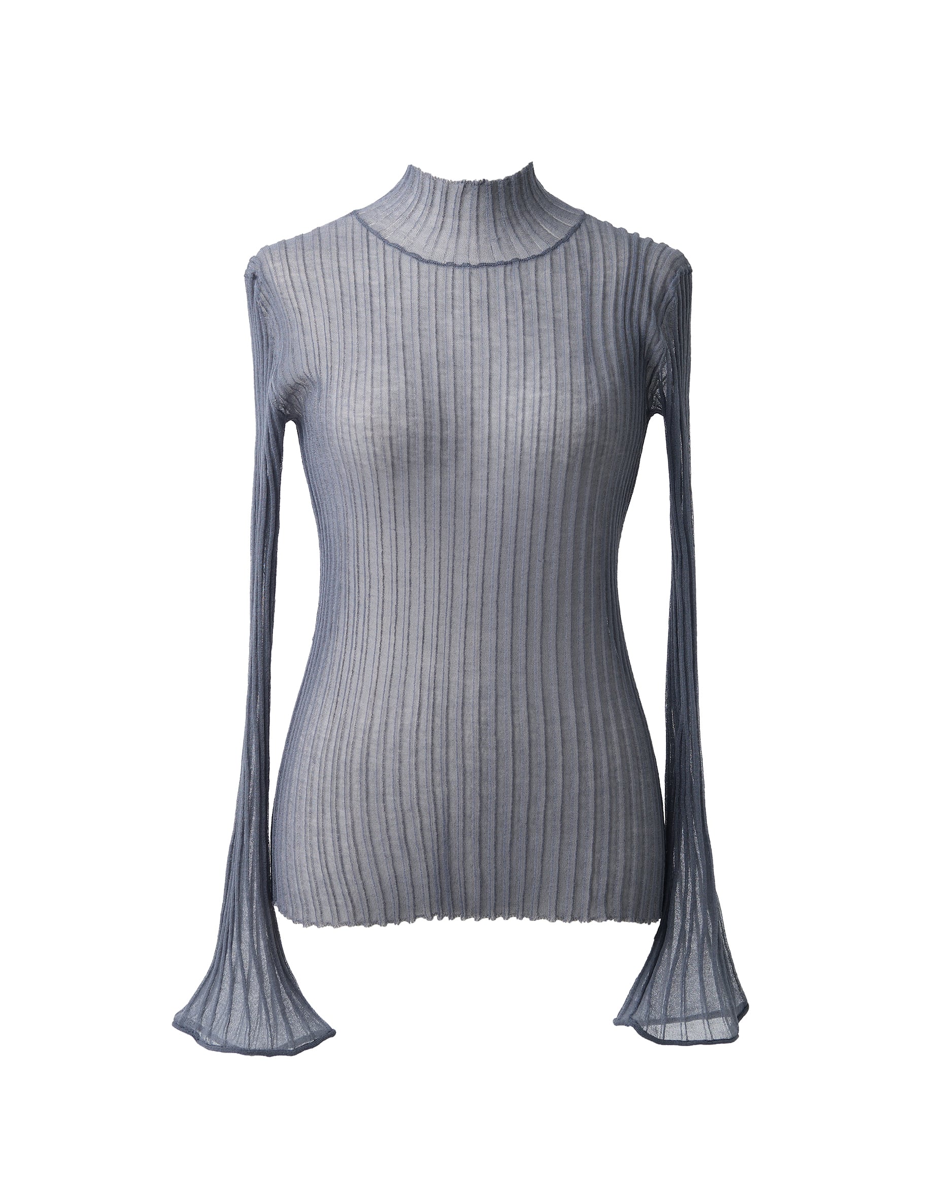 袖口に広がるフレアデザインが印象的な、シアーリブタートル。