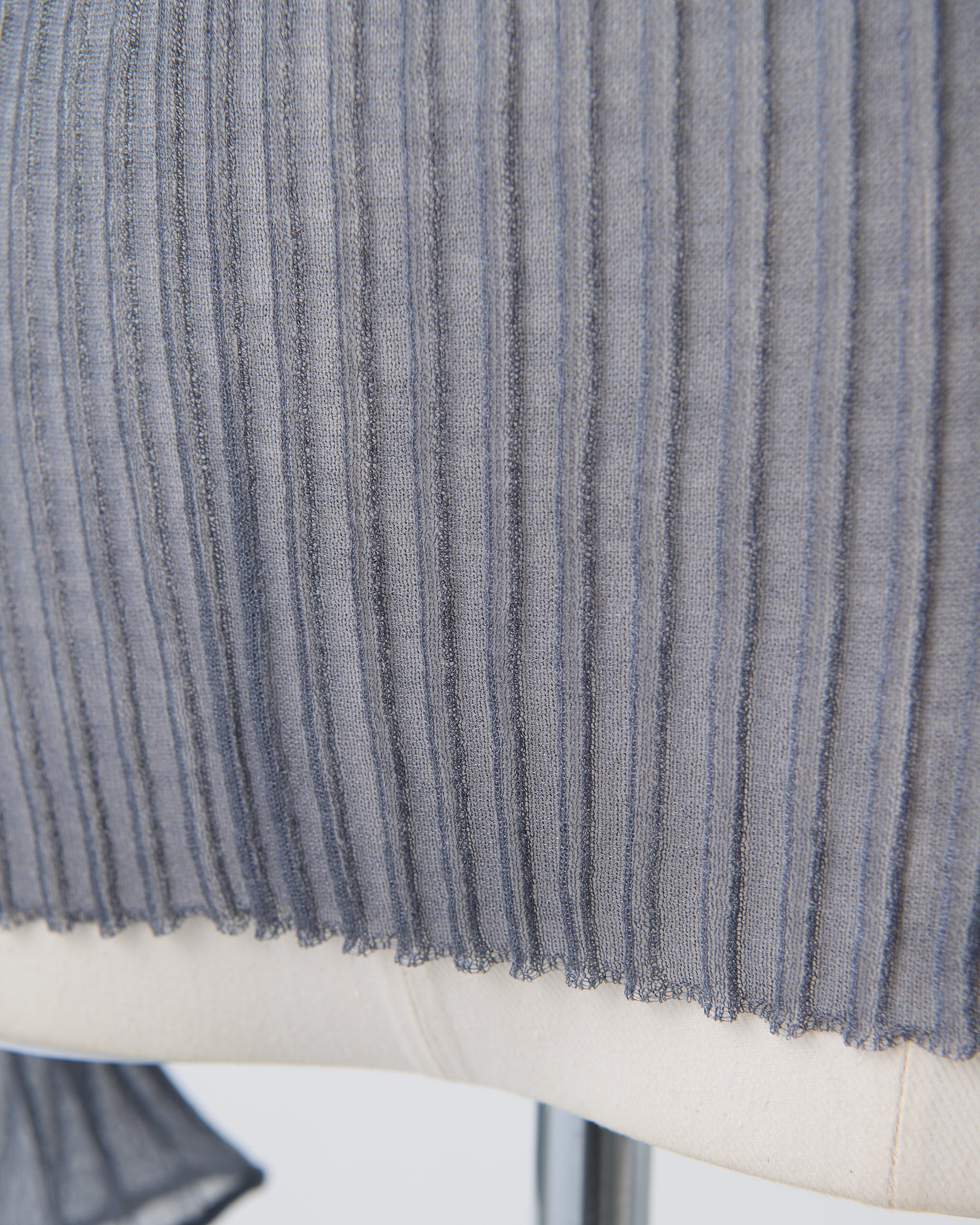 繊細なリブの表情と軽やかな透け感が、スタイリングに上品なニュアンスを添えます。