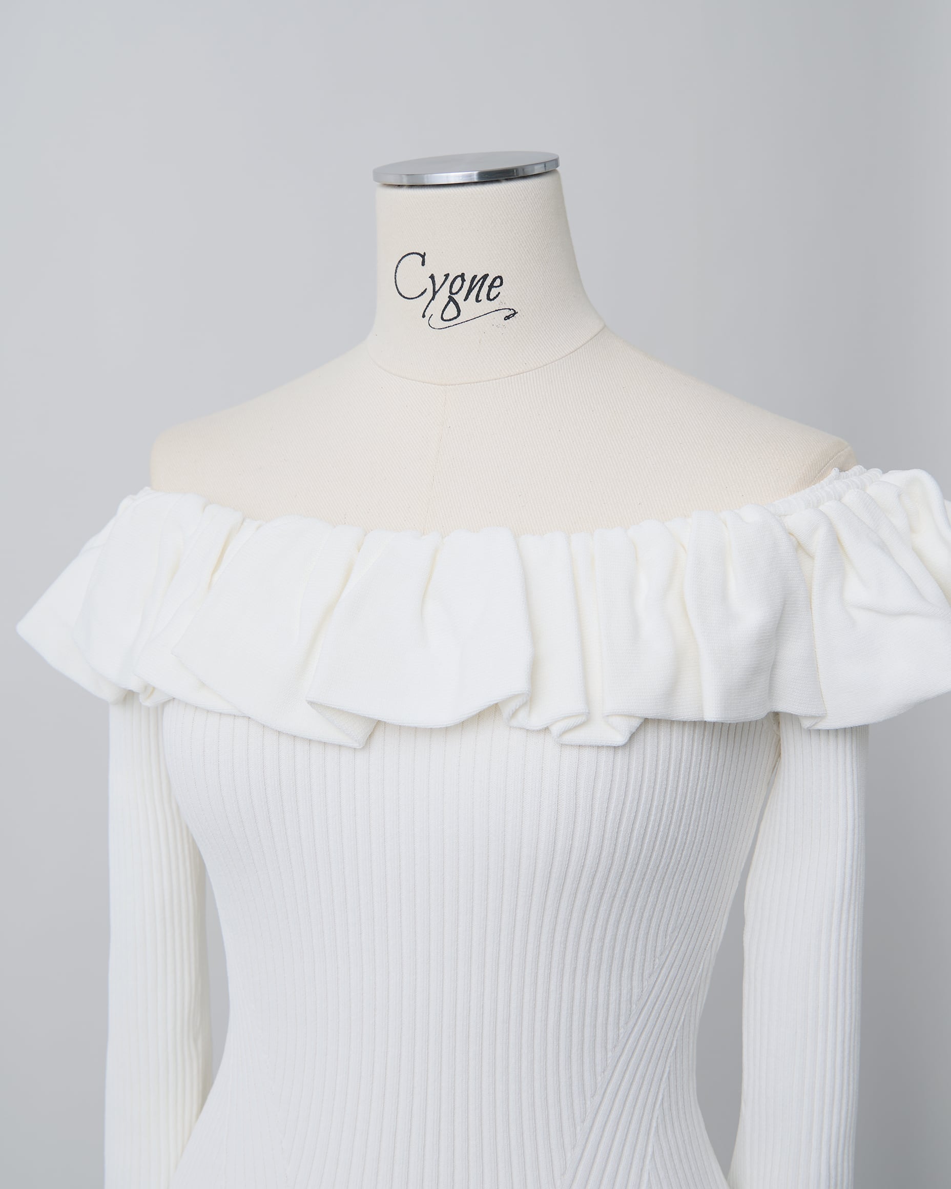 ランダムフリルオフショルニット Vera ホワイト