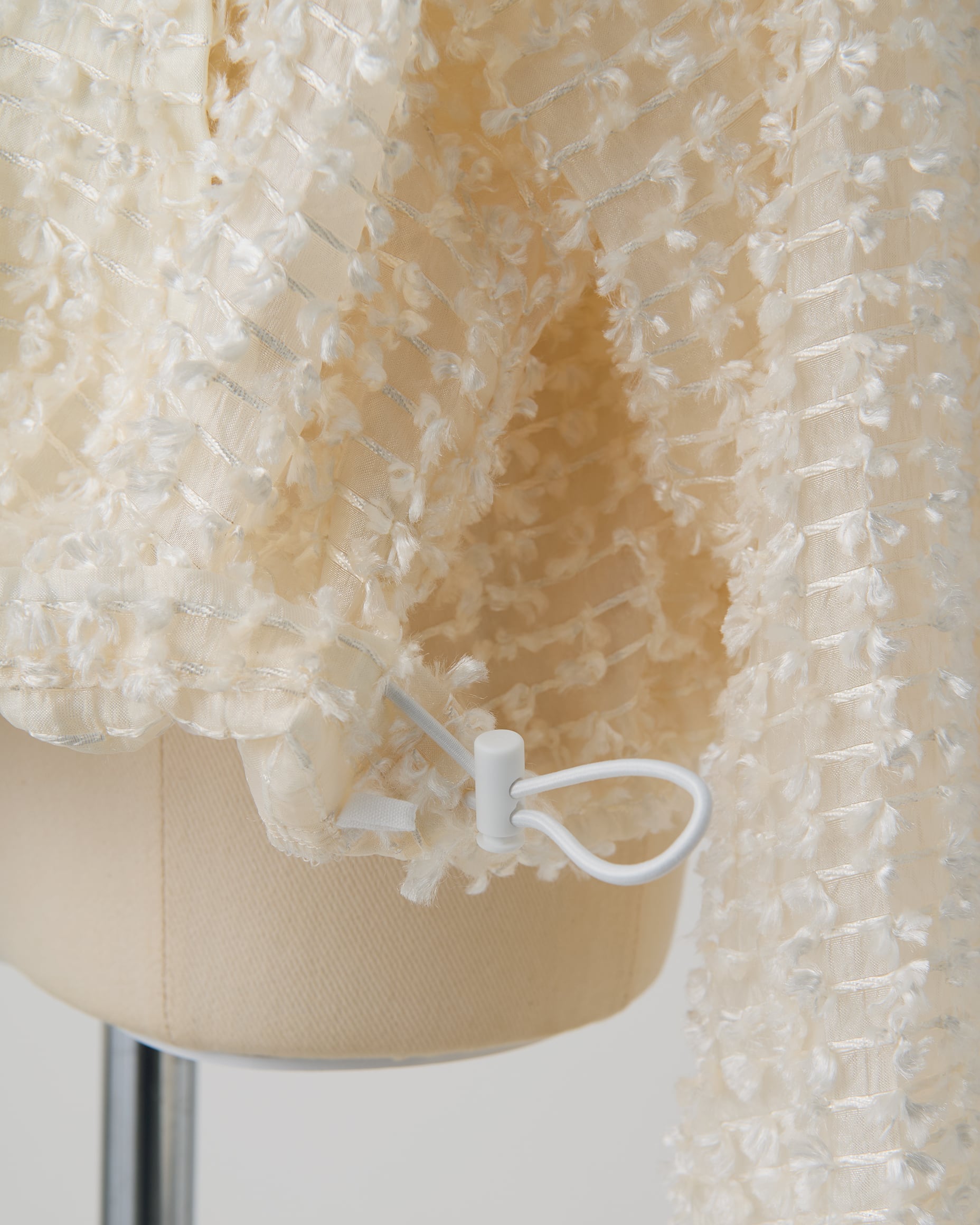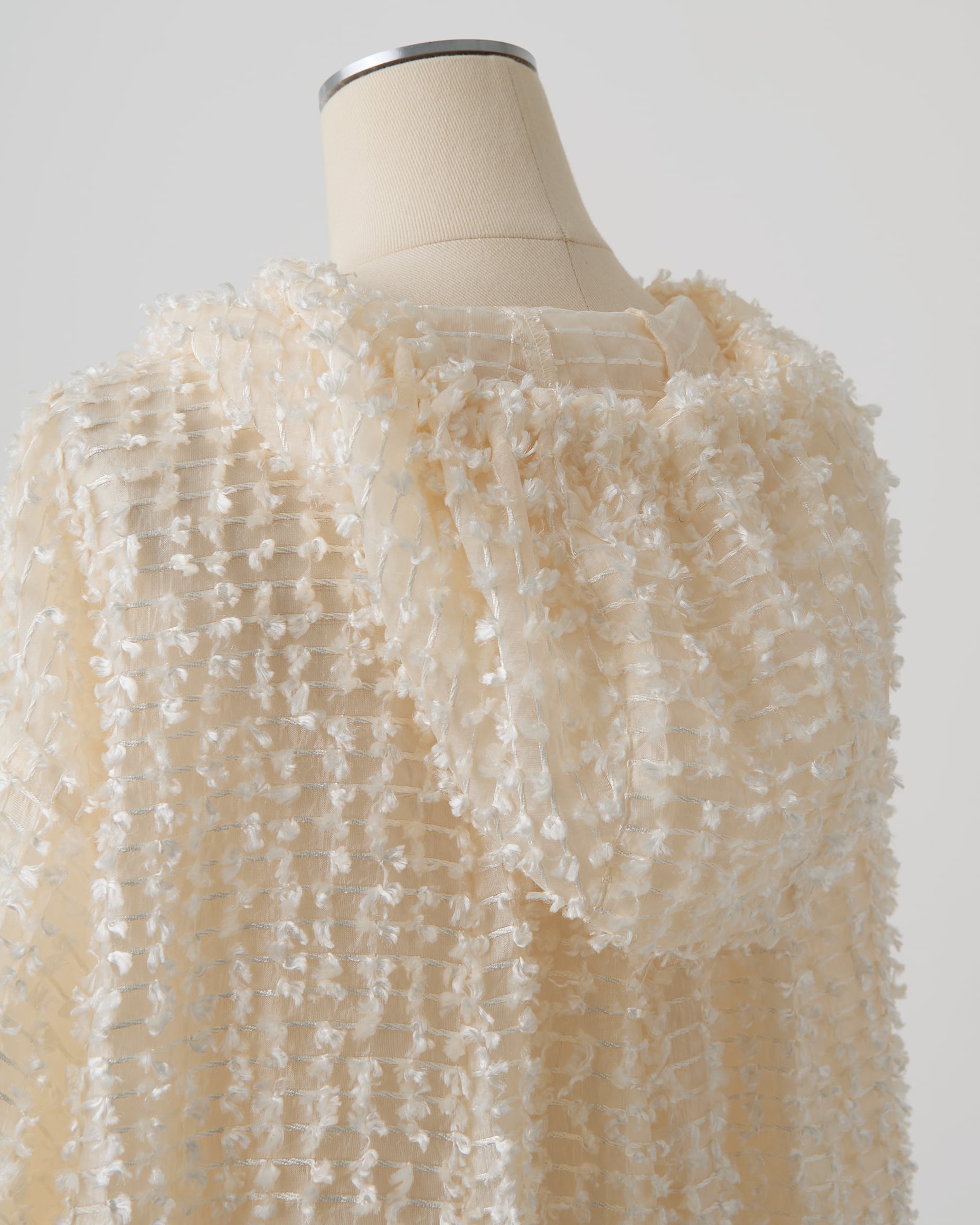 凹凸のあるドット風のジャガードがさりげない存在感を放ち、シンプルなスタイリングにも表情を添えます。