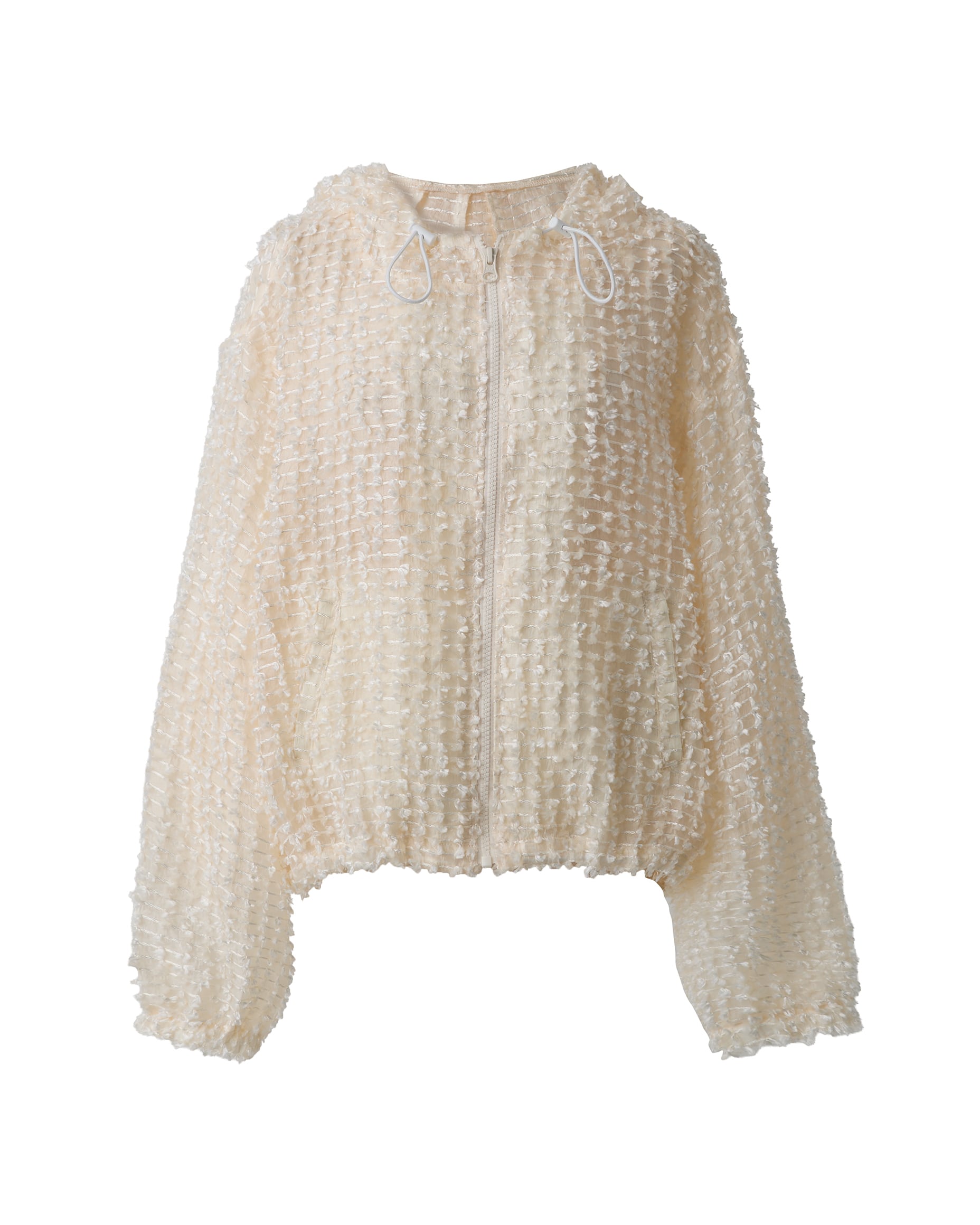 立体感のあるカットジャガード素材が印象的なブルゾン。