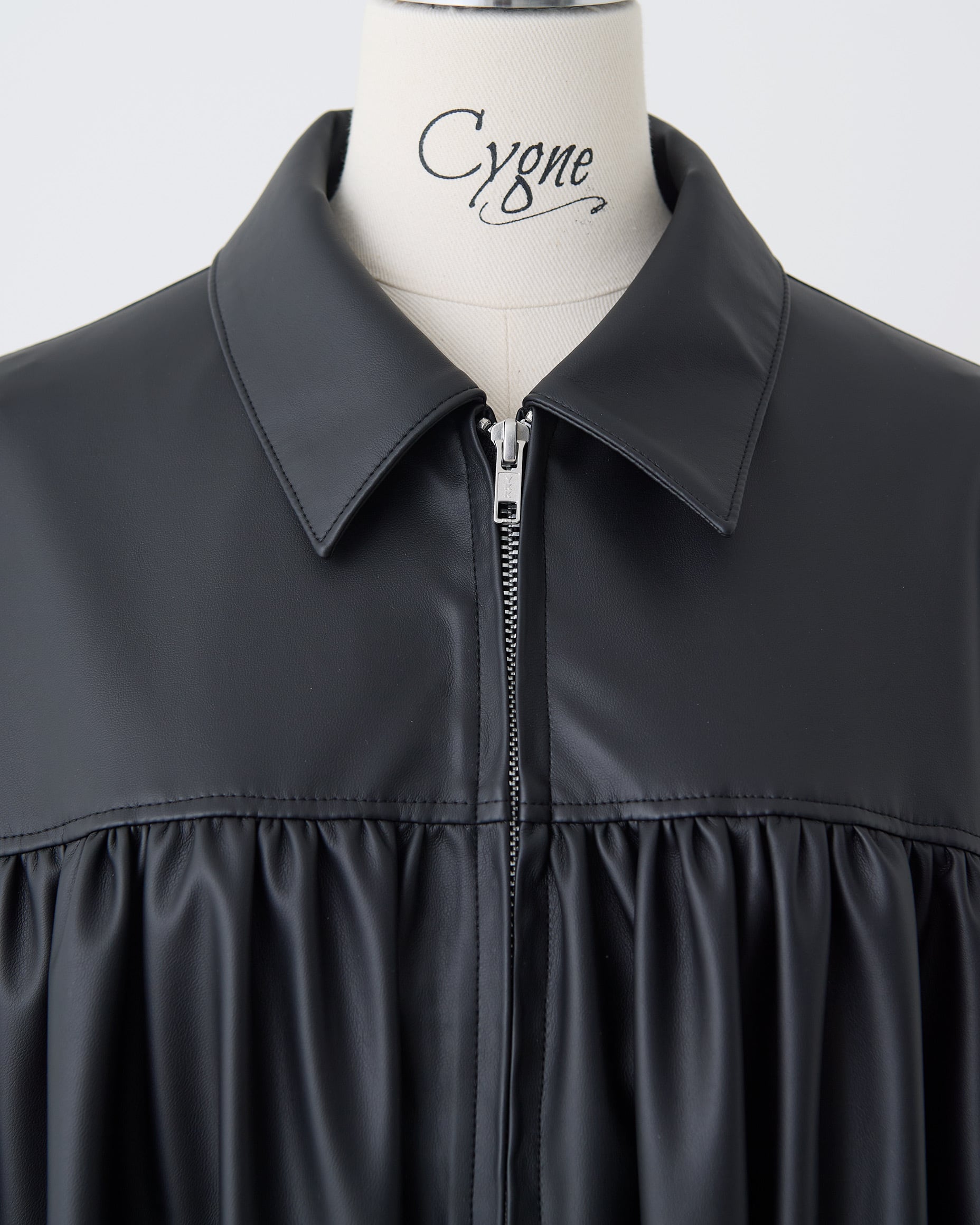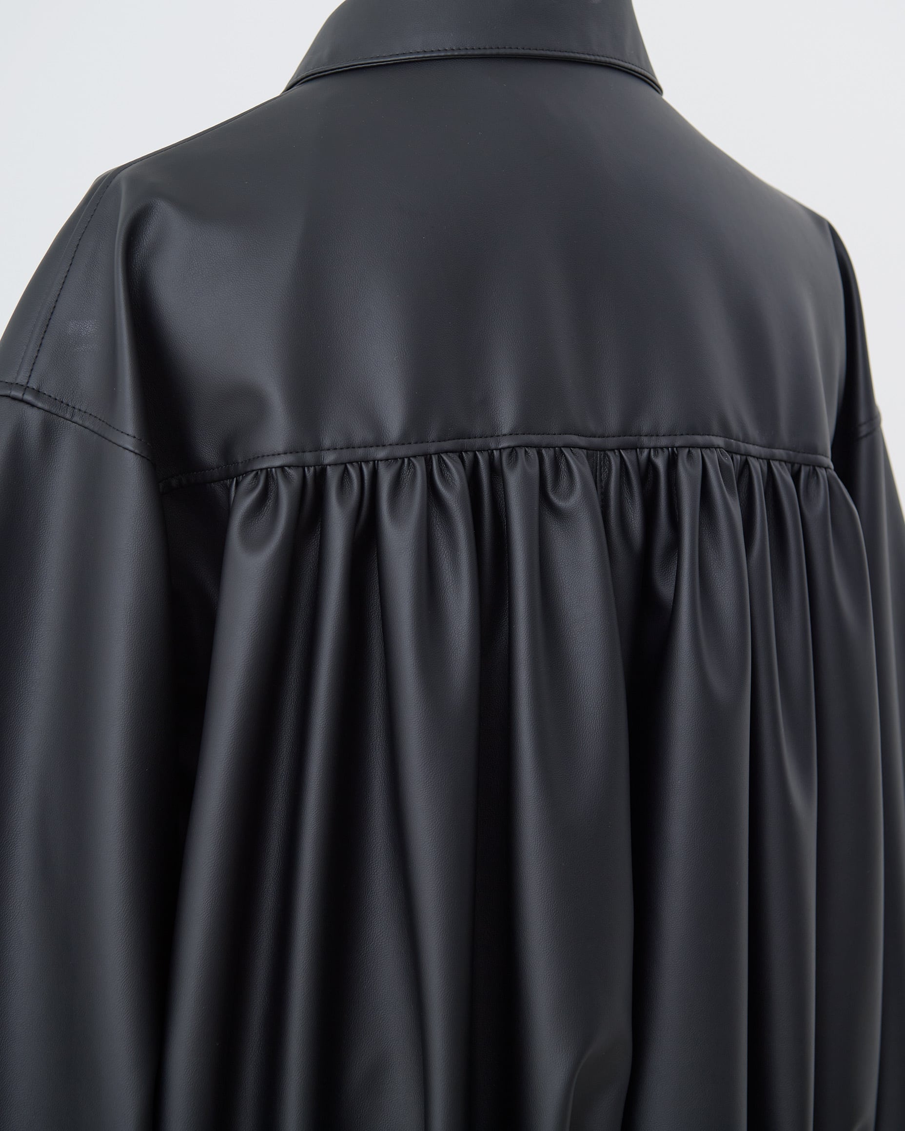 丸みのあるフォルムに、フロントのギャザーデザインがアクセントとなり、シンプルながらも存在感のある一着です。