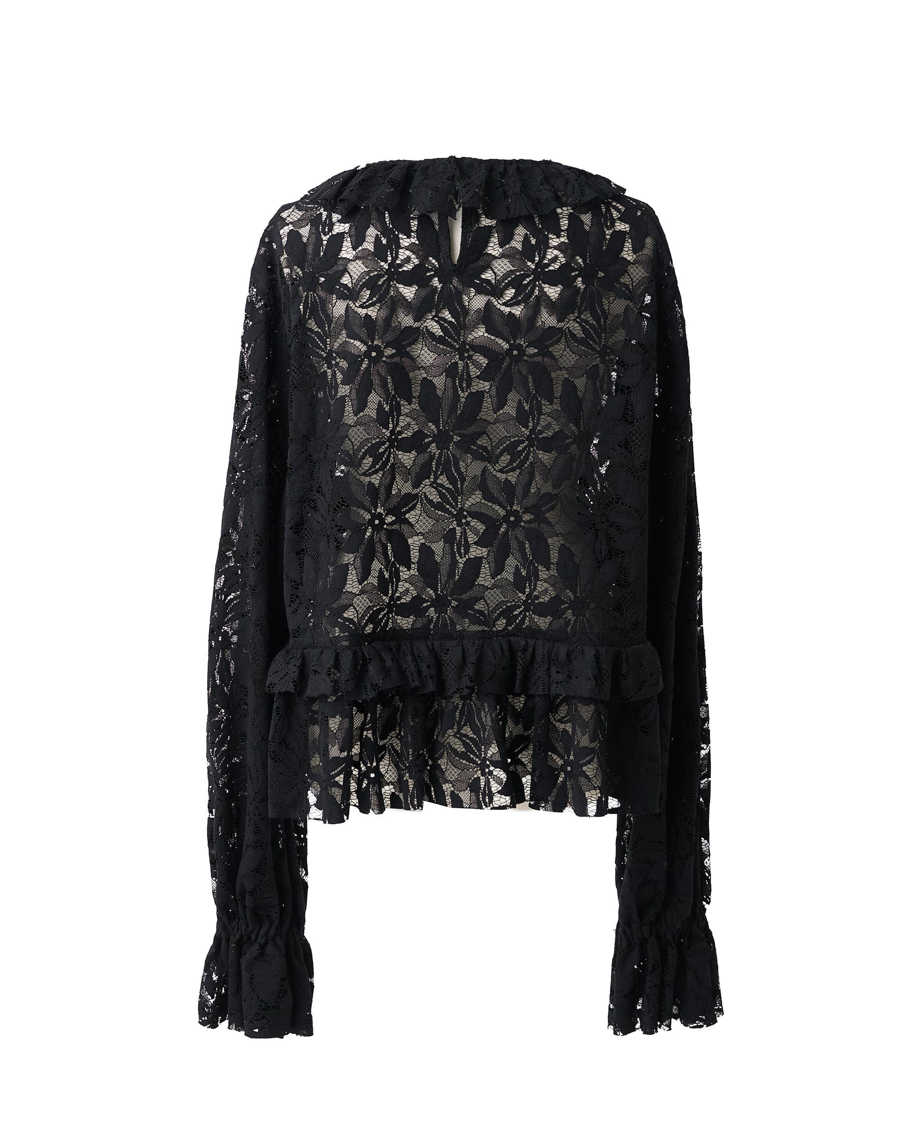 繊細なレースが目を惹く華やかなフリルブラウス。