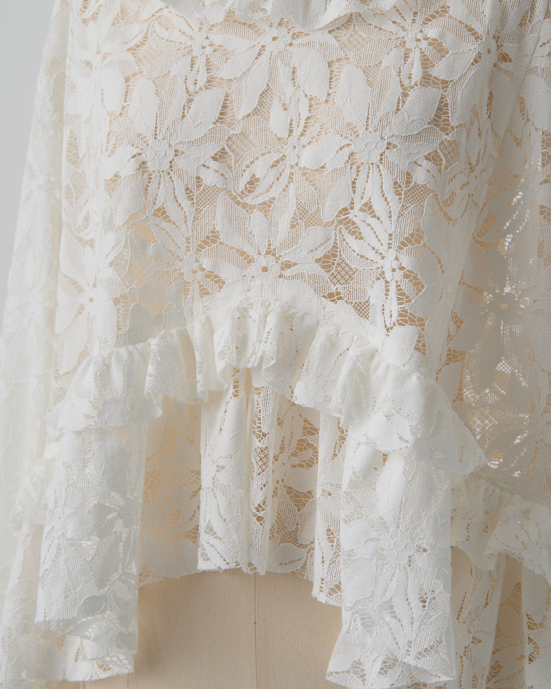 繊細なレースが目を惹く華やかなフリルブラウス。