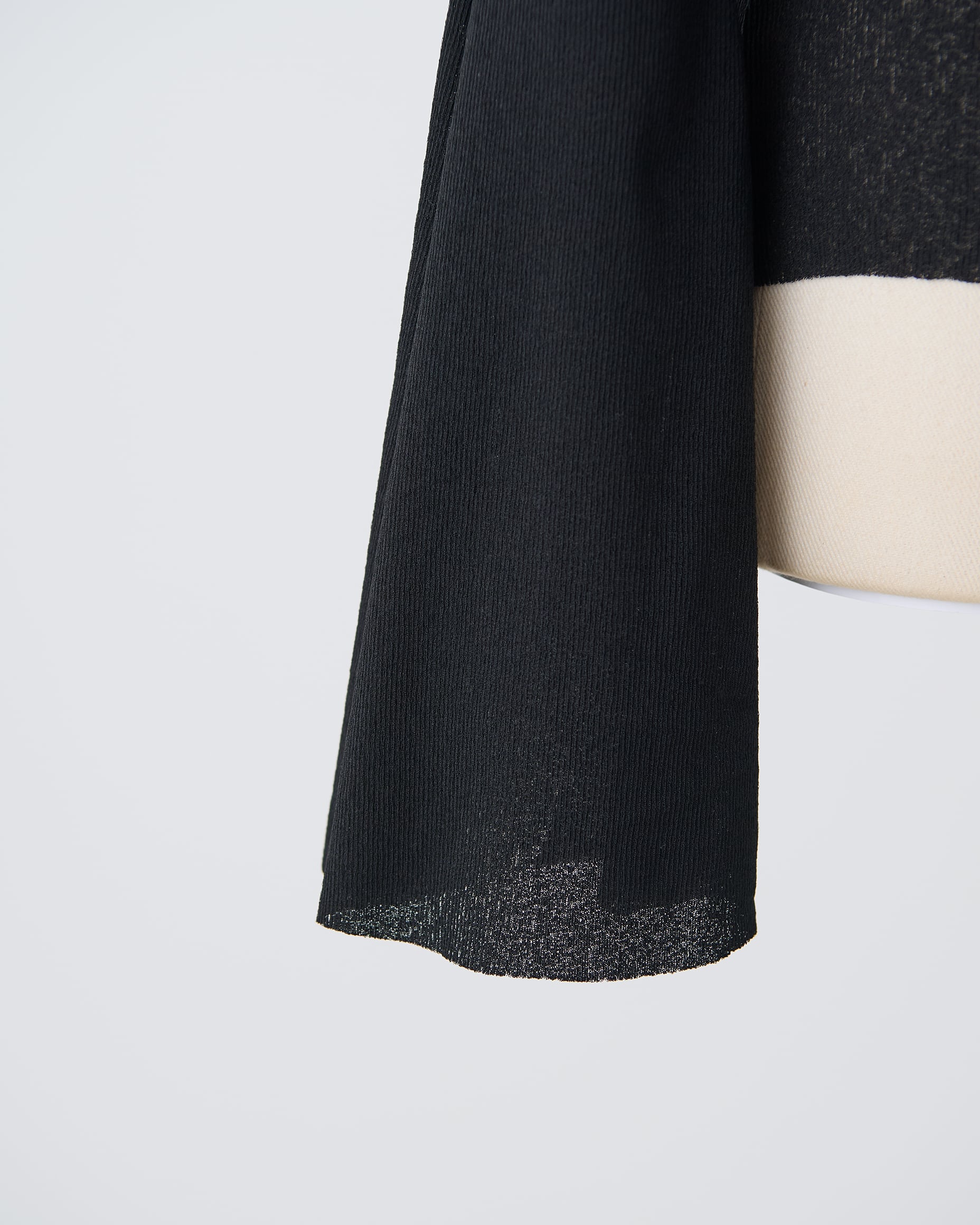 袖口に向かって広がるフレアスリーブが女性らしい動きを演出し、