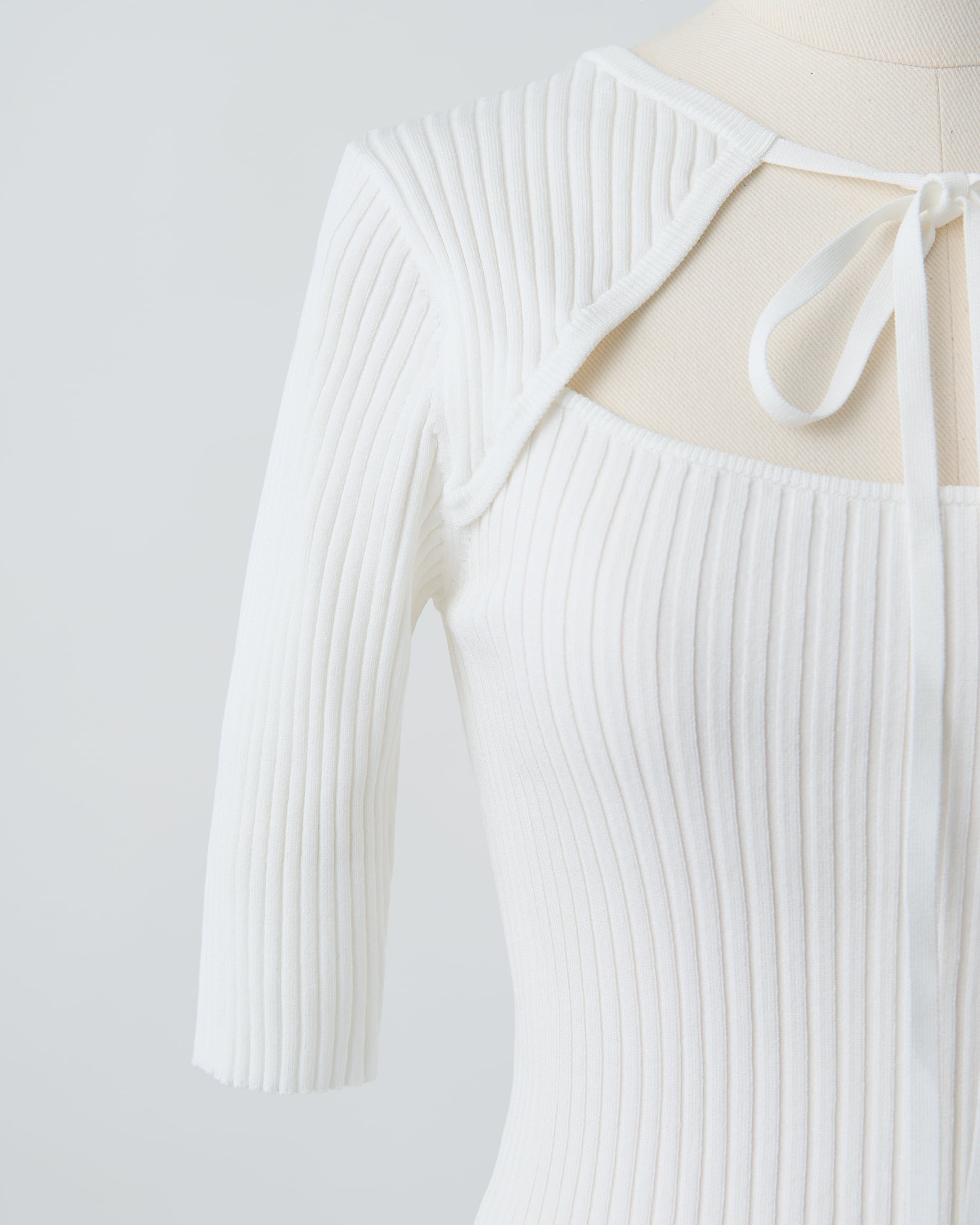 前後どちらでも着用できる2way仕様のストラップニット。