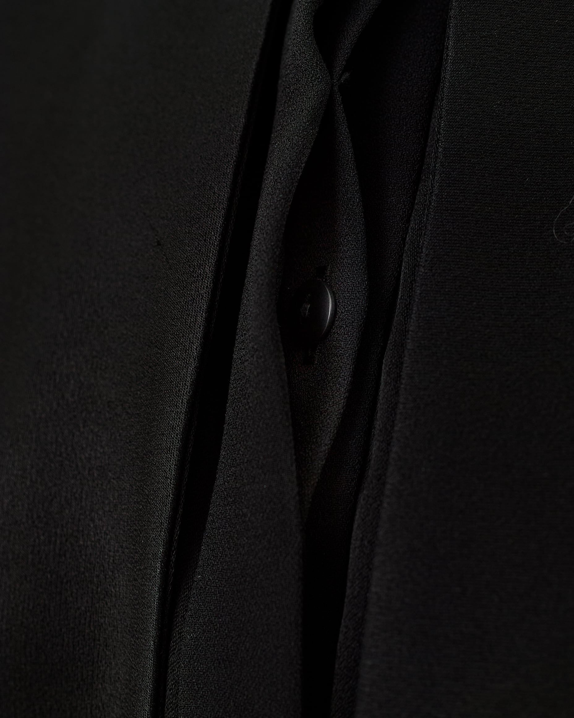トロンとした上質な生地をたっぷり使ったロングカラーブラウス。