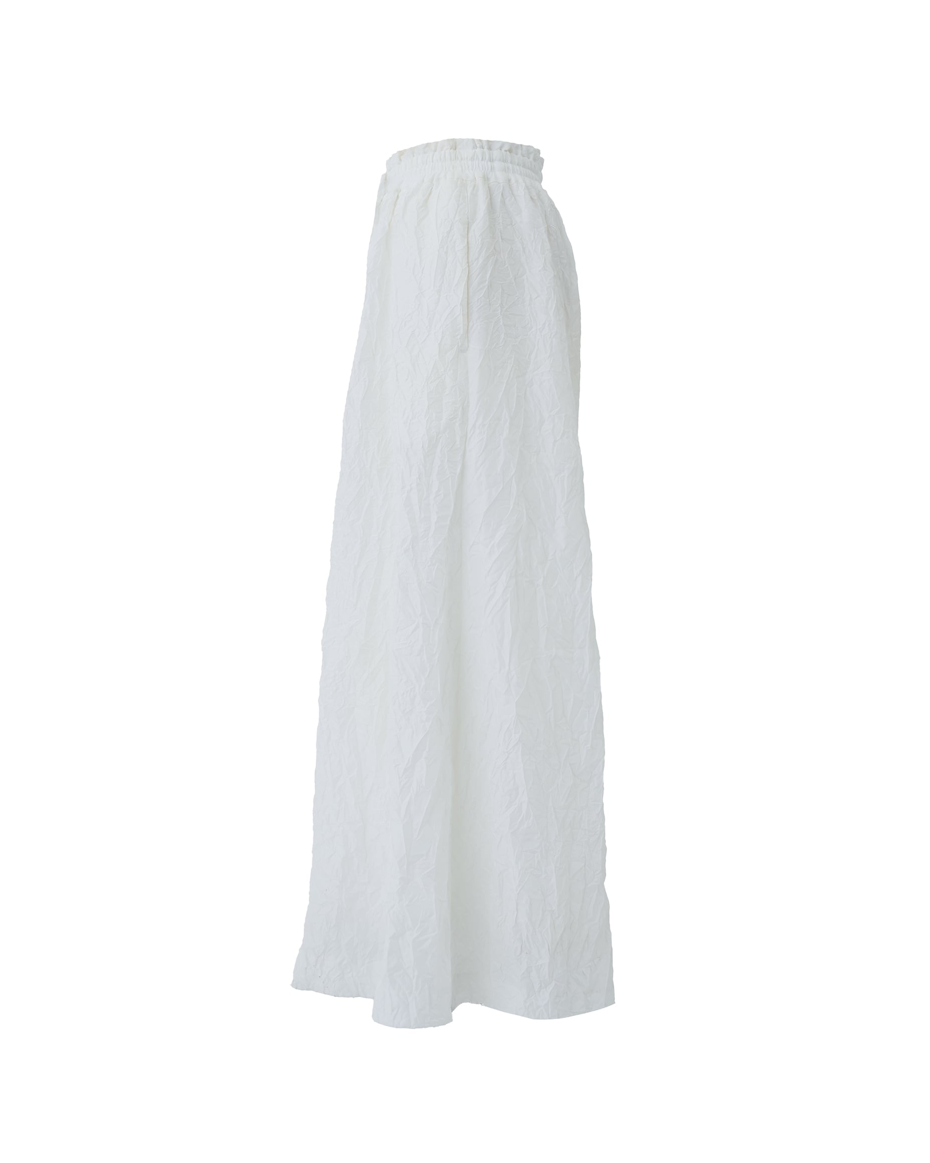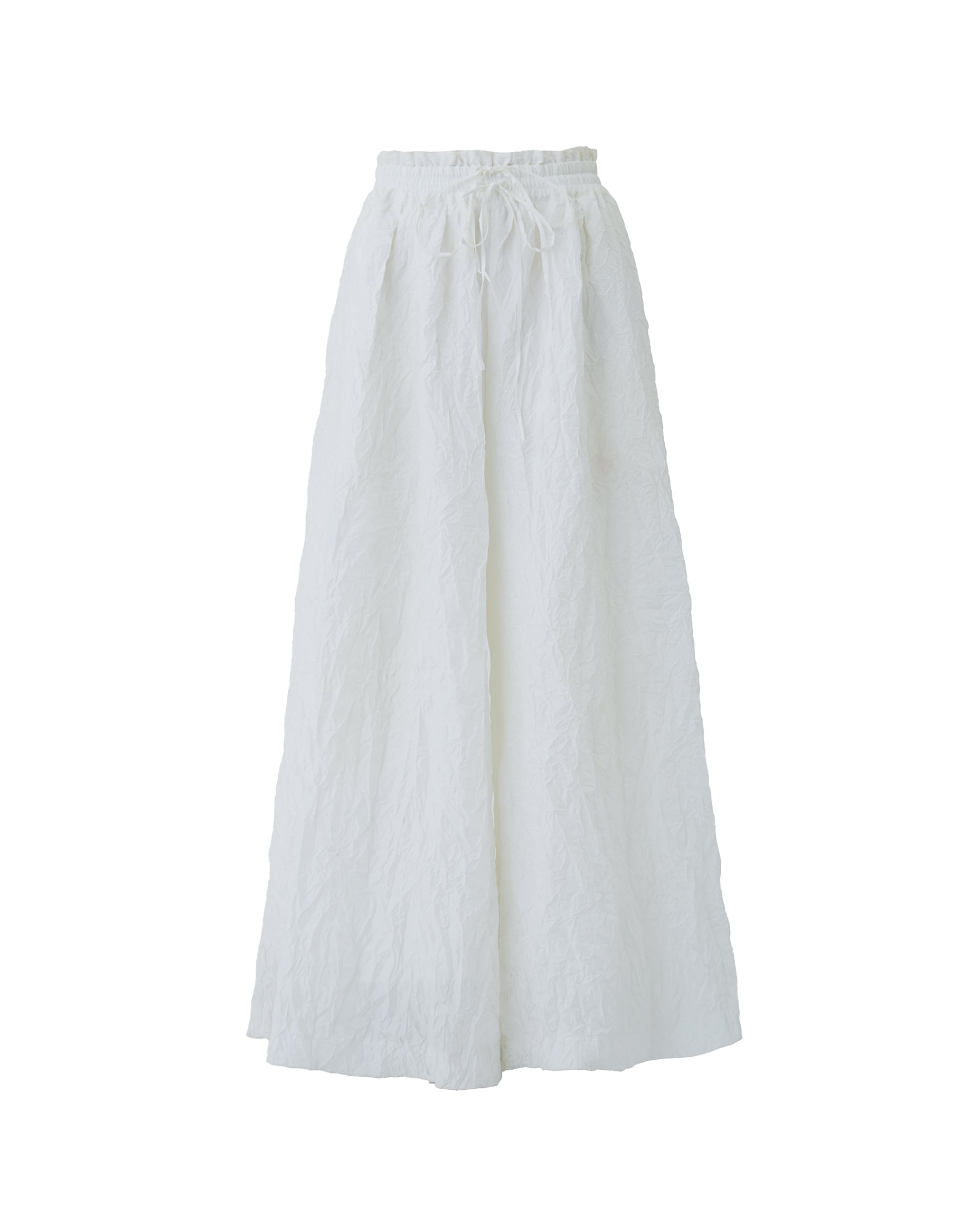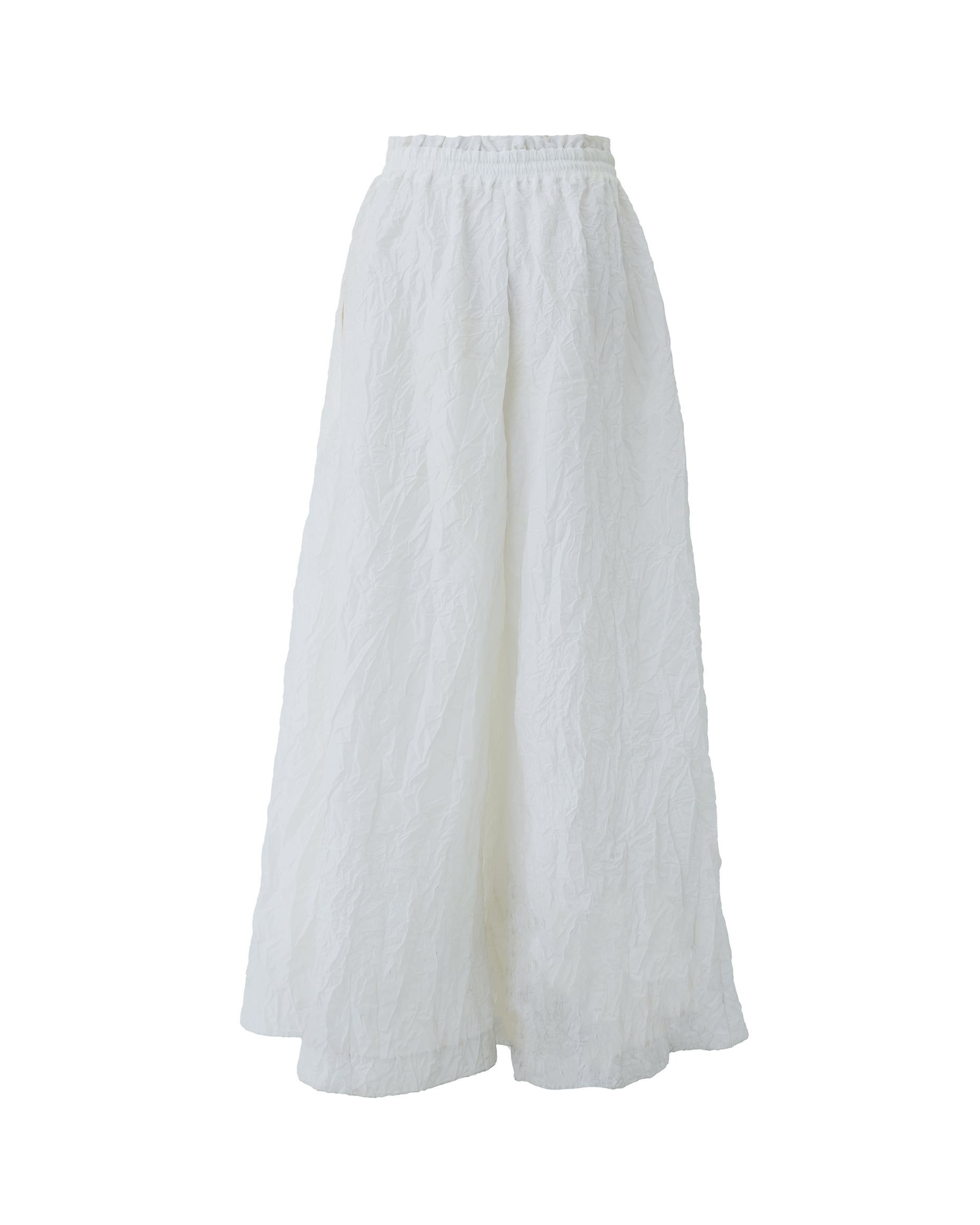 贅沢な分量感と独特なシワ加工が魅力のワイドパンツ。