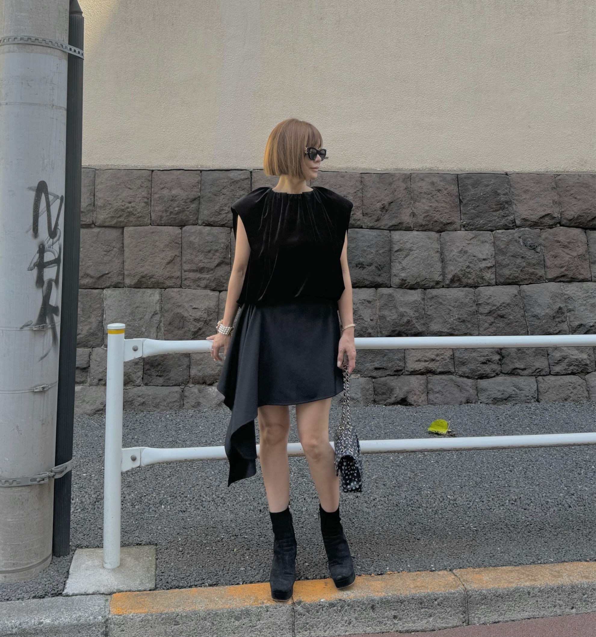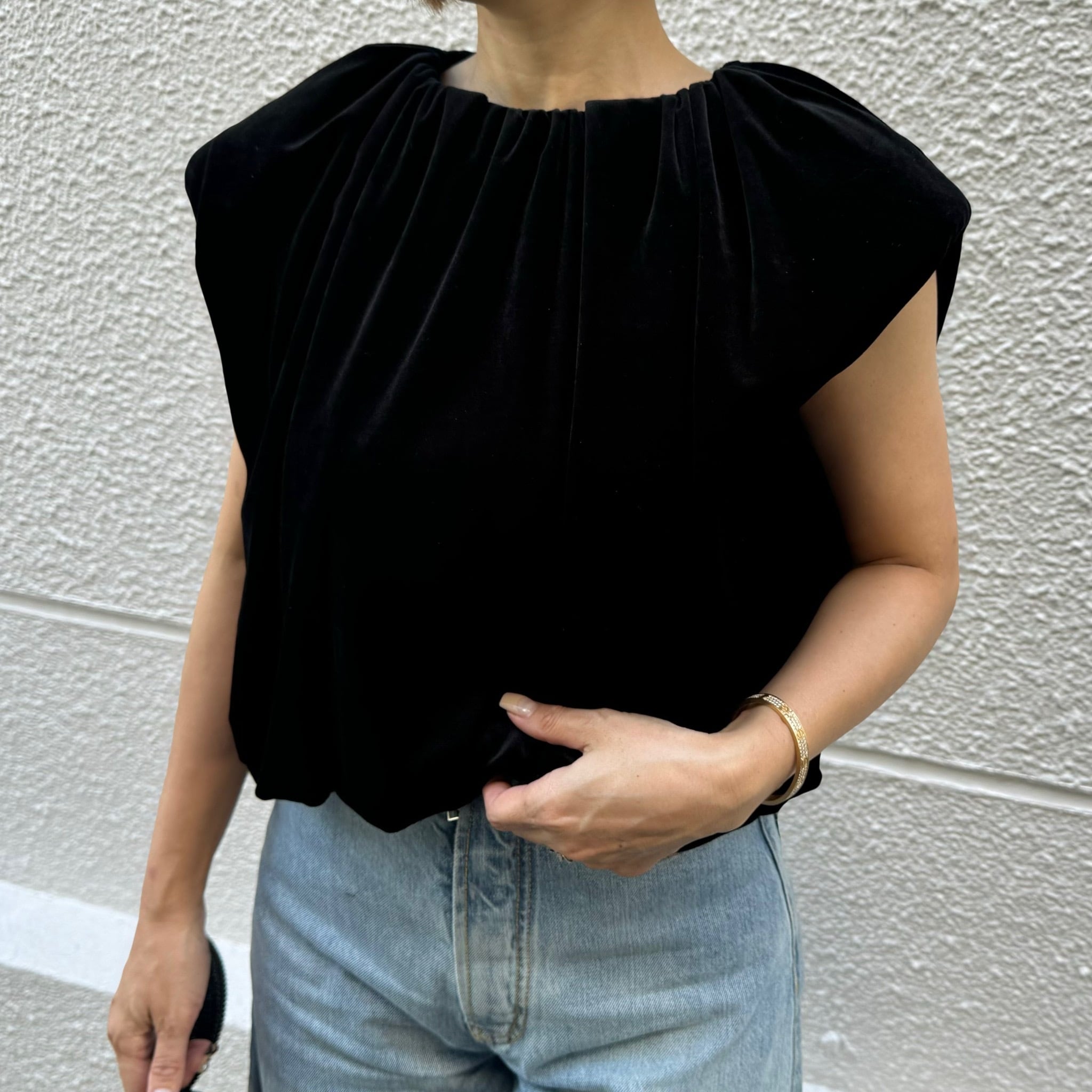ドレープと発色性が良いトリアセテート混の上質なベロアをふんだんに使用したトップス❤︎