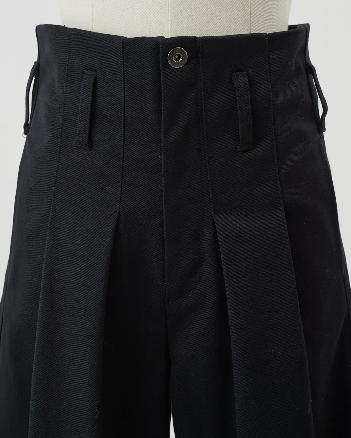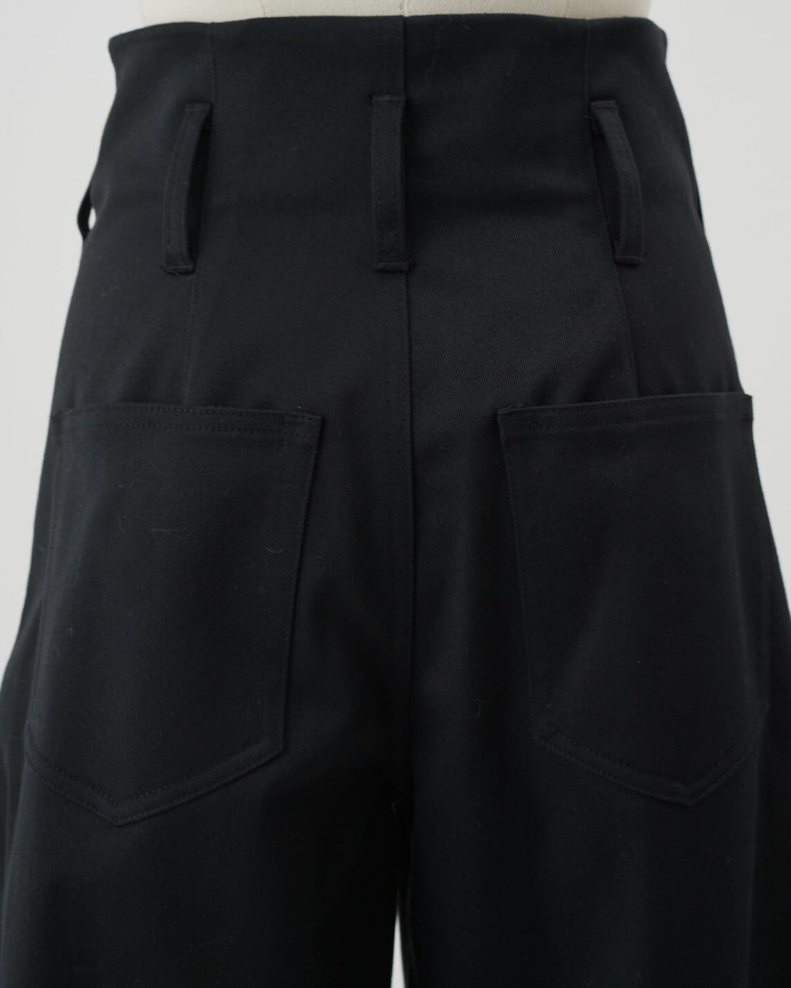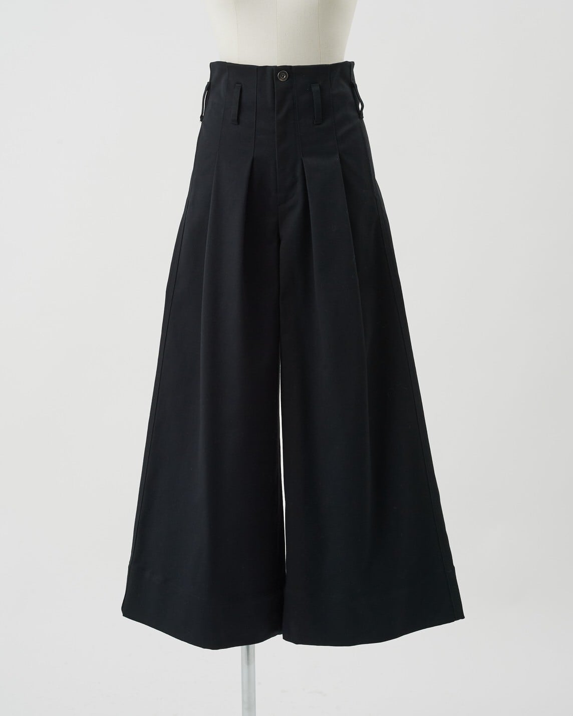 ベルトパーツ無しのウエストフロントから伸びるボックスプリーツが印象的でタックインした時に印象的な一本です。