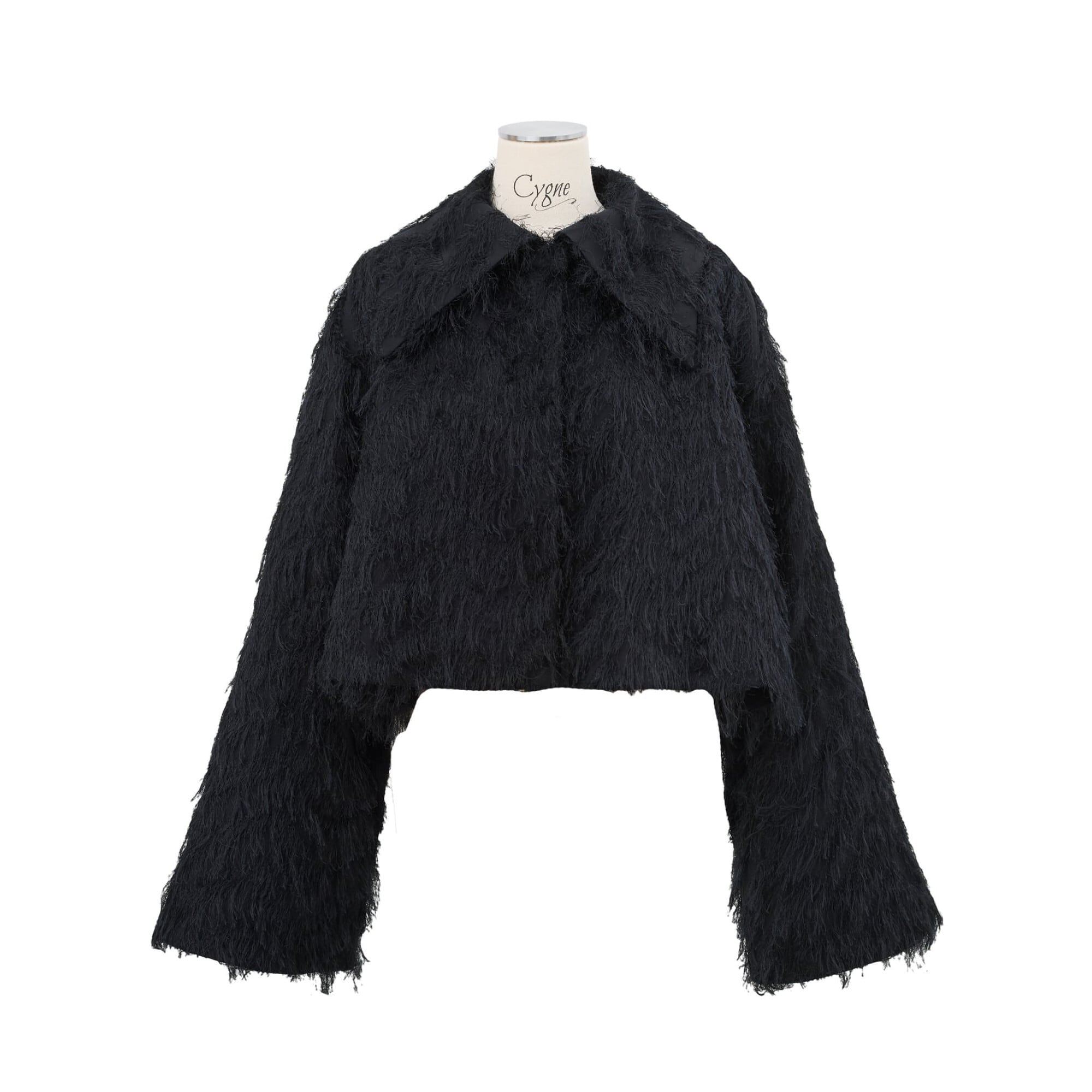 ボリュームのあるジャガード素材ににボンディング加工を施したフリンジジャケットです♡