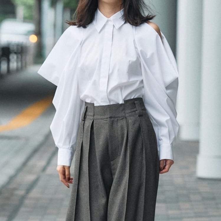 肩開きのデザインがポイントのブラウス♡